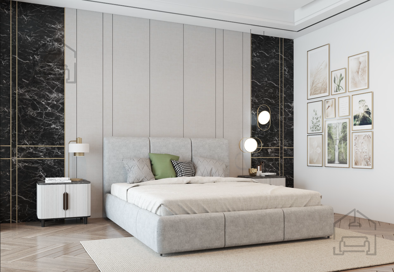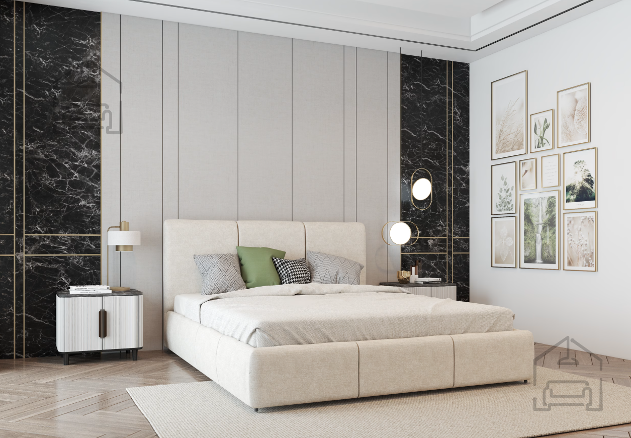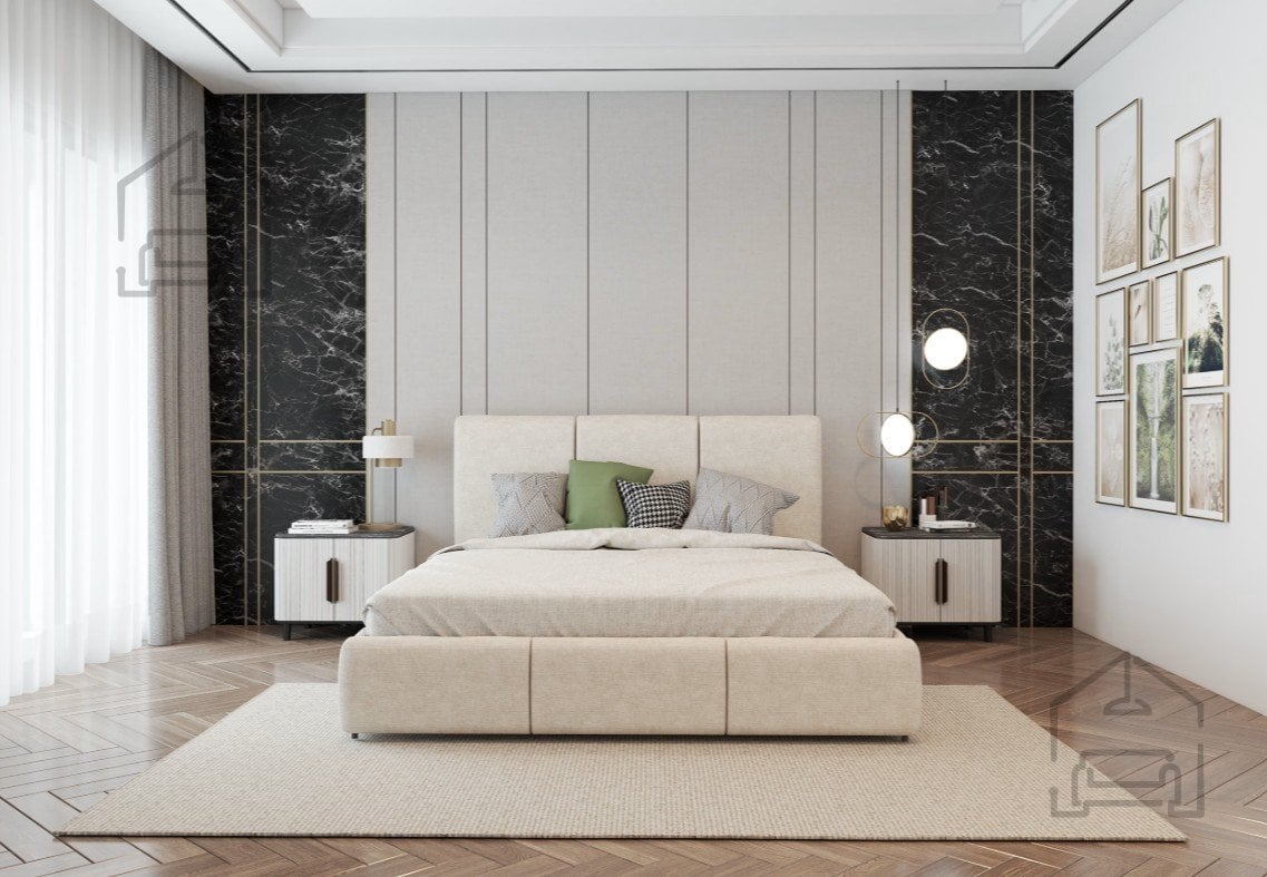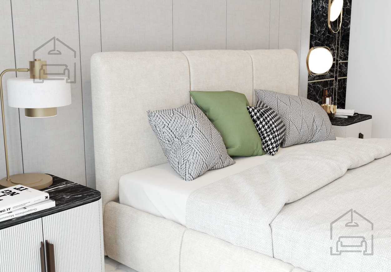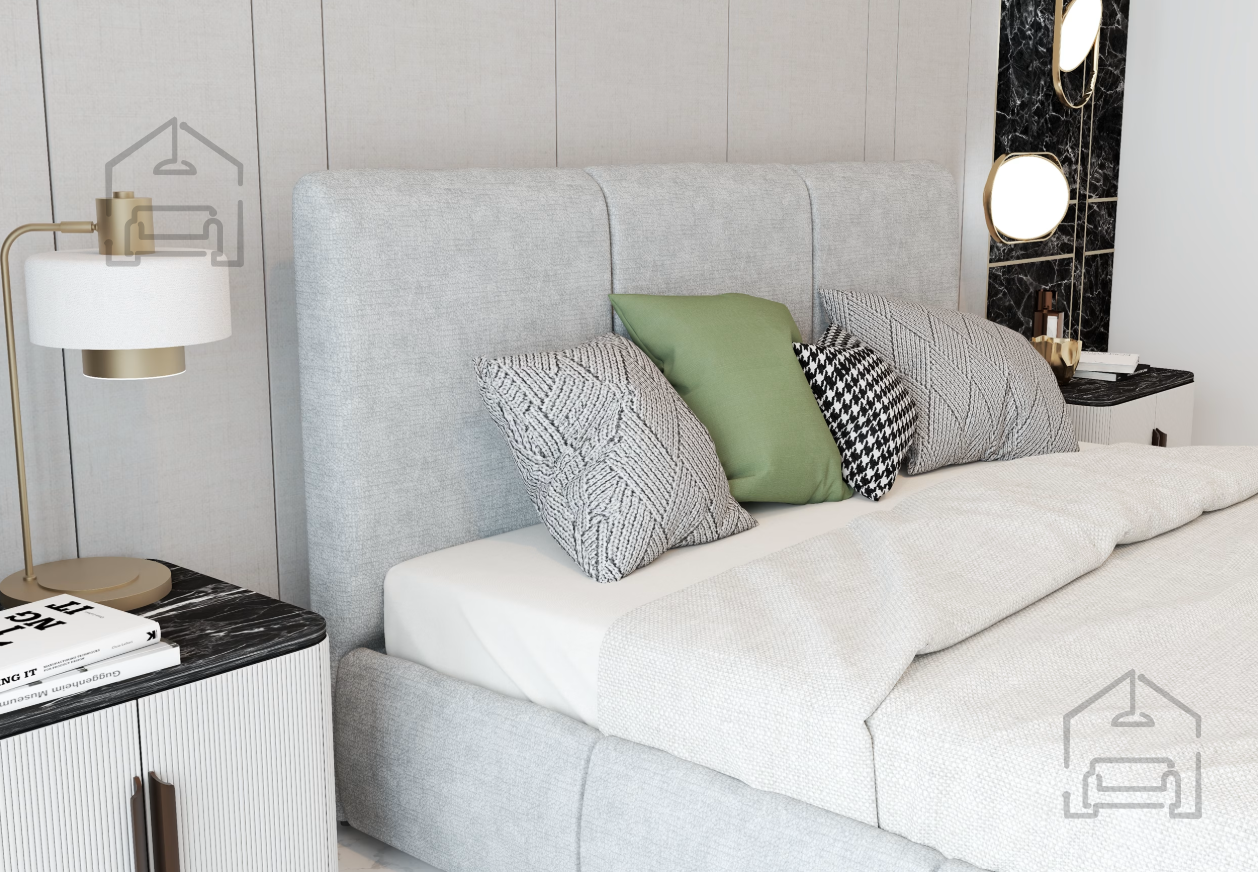 Postelja Alia je izdelana iz kombinacije lesa in kakovostne tkanine. Leseni elementi zagotavljajo trdnost, medtem ko tkanina, uporabljena na fotografiji – Perfect Harmony 02 – doda postelji eleganten in sodoben videz. Tapecirano vzglavje s poudarjenim prešitjem poudari karakter v slogu Glamour in ustvari prijetno točko udobja za branje ali sproščanje. Zaradi univerzalne barvne palete se postelja zlahka prilagodi različnim slogom opreme, od klasičnega do sodobnega.