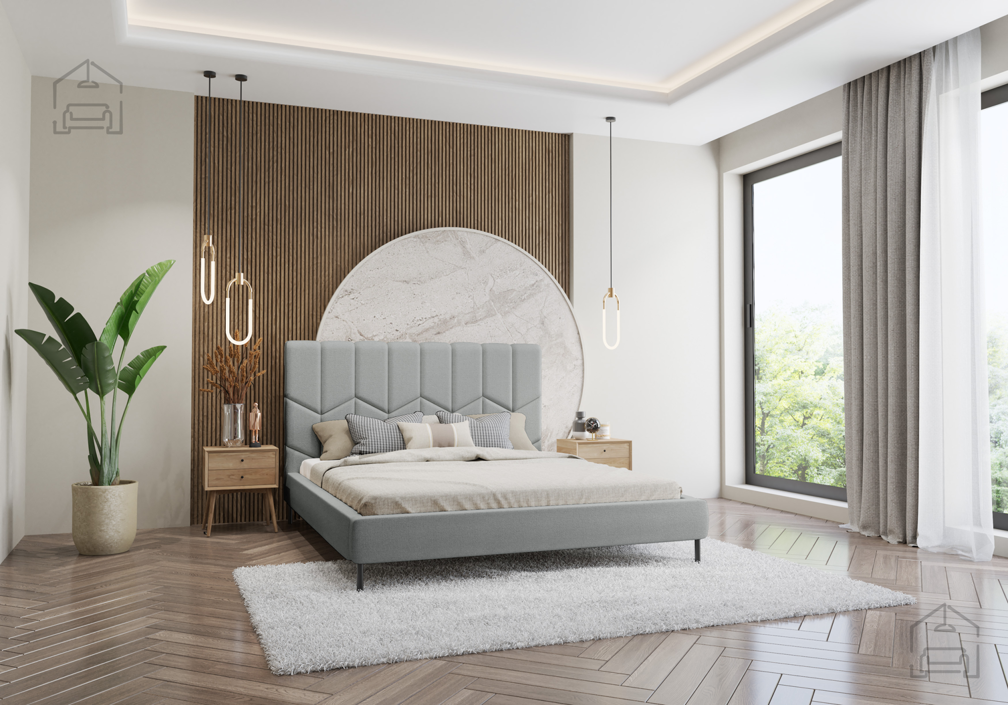 Zaradi možnosti izbire tkanine v več barvnih različicah se lahko postelja prilagodi individualnim željam in prostoru. Svetlejši odtenki ustvarijo občutek zračnosti, temnejši pa dodajo globino in kontrast. Tkanina Aragon 90, prikazana na fotografiji, se ponaša z mehko strukturo in enakomerno barvno površino, kar poudari natančno izdelavo in kakovost šivov.