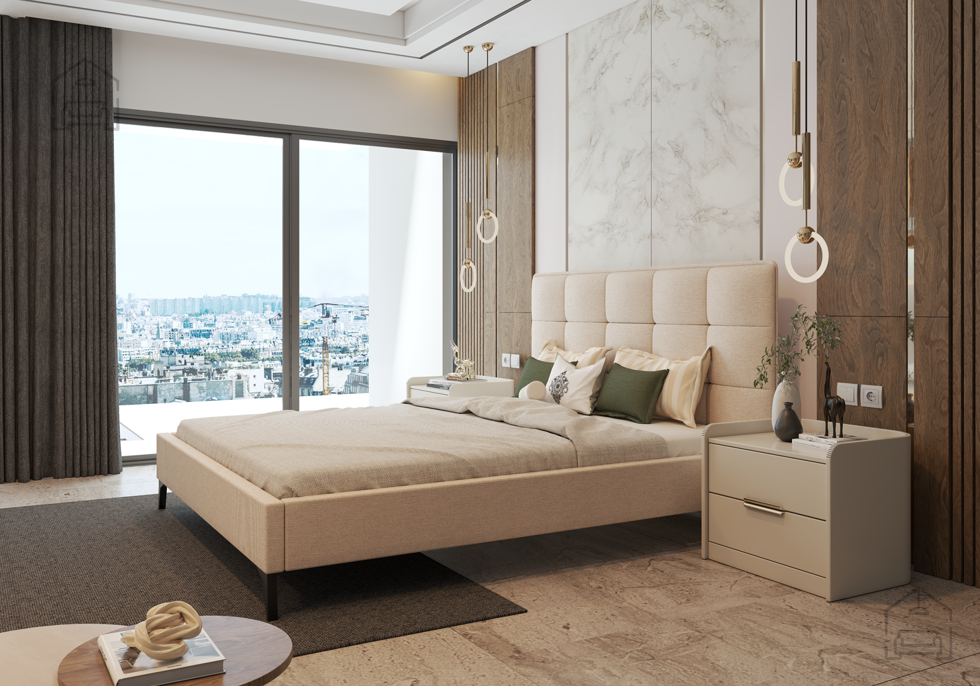 Postelja Sisi je odlična izbira za tiste, ki želijo ustvariti prijetno in elegantno spalnico. Zaradi svoje nevtralne barvne zasnove se lepo ujema tako z naravnimi lesenimi toni kot s svetlimi ali temnimi dekorji. Tapecirano vzglavje v mehki tkanini doda občutek razkošja, a hkrati ohranja minimalistično linijo, značilno za sodobne interierje. Postelja se dobro poda tako v prostorne spalnice kot tudi v manjše sobe, kjer je pomembna vizualna lahkotnost pohištva.