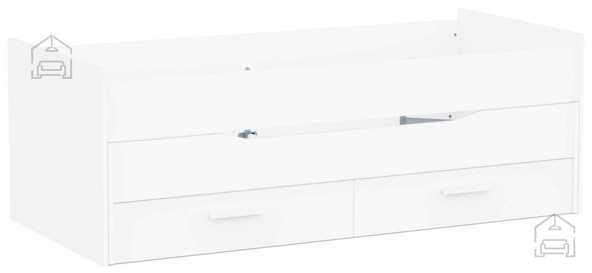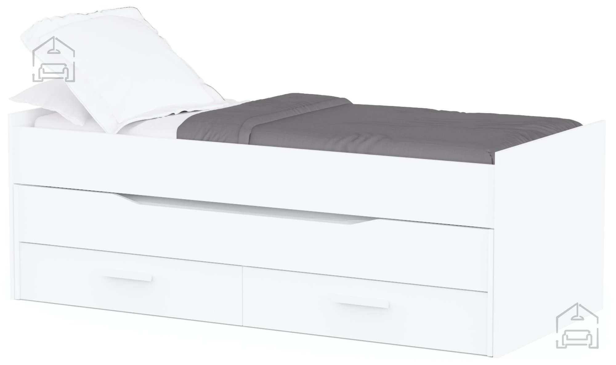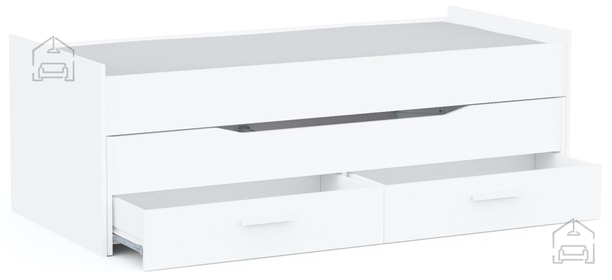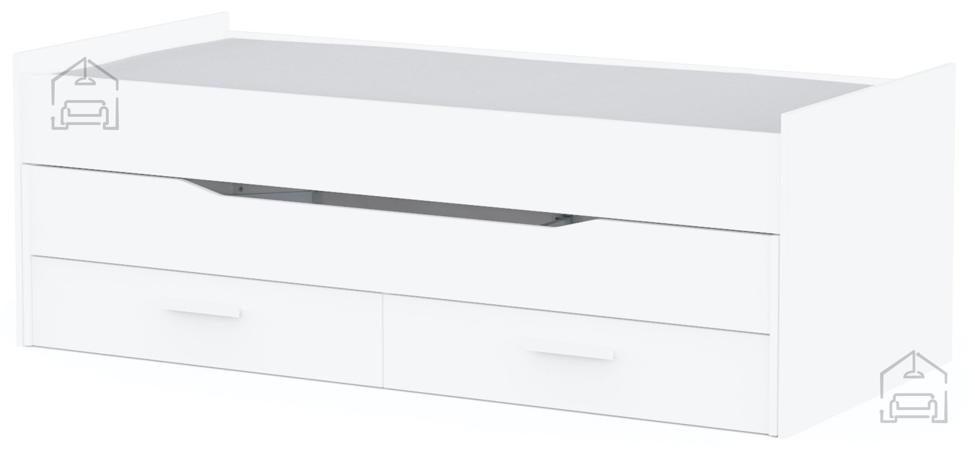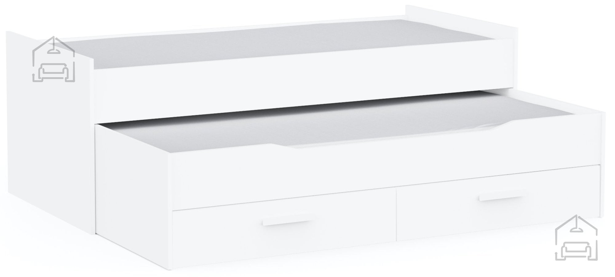 Ena izmed ključnih prednosti postelje Twist je prisoten predal za posteljnino. Dva prostorna predala, nameščena na spodnjem delu postelje, ponujata praktičen prostor za shranjevanje odej, blazin, posteljnine ali drugih osebnih predmetov. Vsak predal meri približno 94 × 44 × 15 cm in se premika na valjčnih ležajih, kar omogoča gladko in tiho odpiranje. Tako lahko vse potrebščine ostanejo skrite, prostor pa ostane organiziran in urejen.
