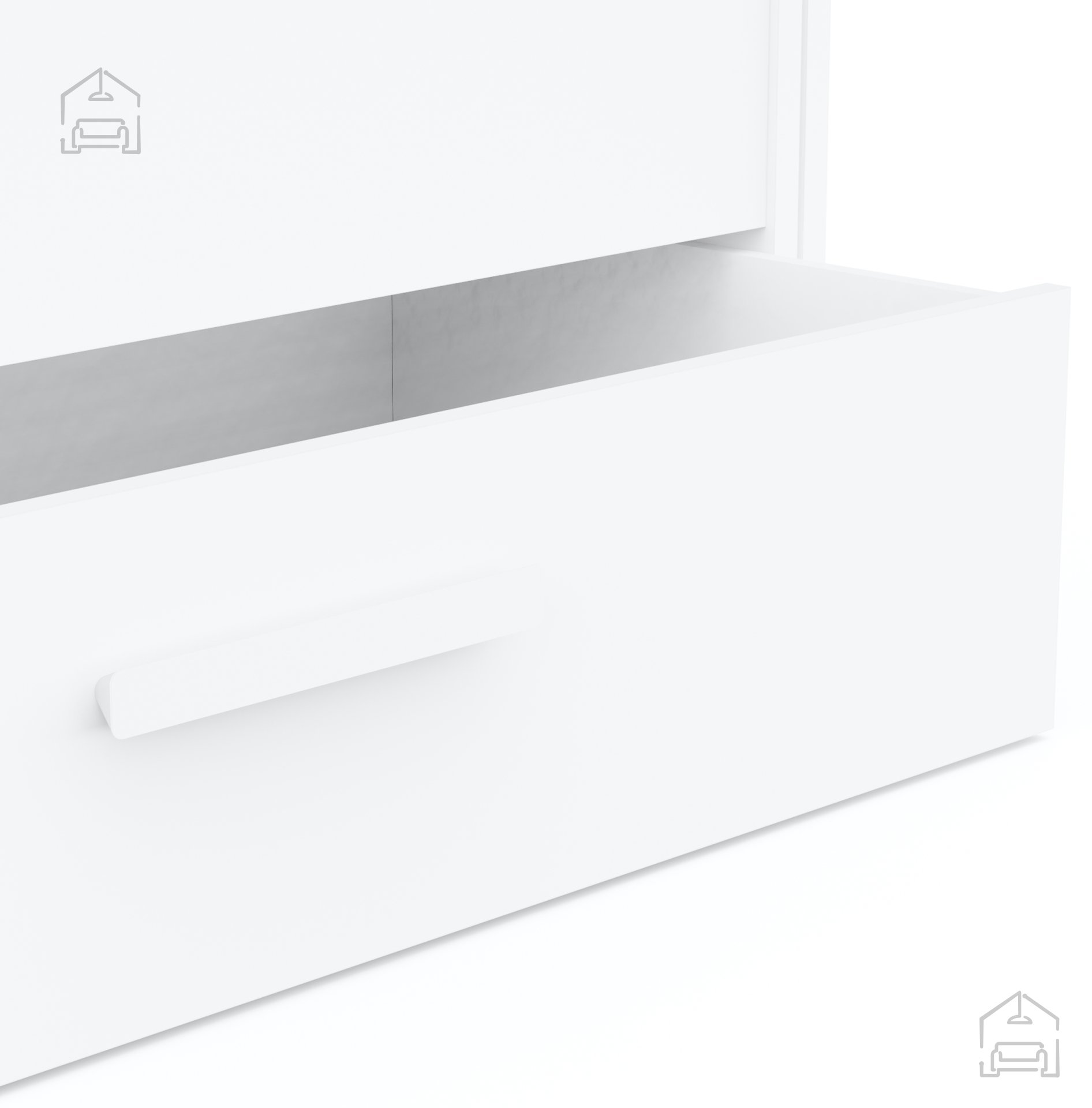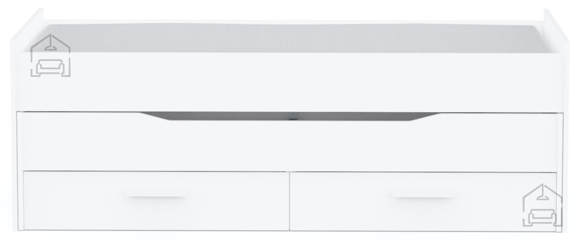 Postelja je izdelana iz kakovostnega iverala, ki združuje trdnost, stabilnost in enostavno vzdrževanje. Bela barva v mat izvedbi deluje čisto, sodobno in zlahka dopolni različne stile notranje opreme – od minimalističnih do klasičnih. Nevtralni ton omogoča, da se postelja harmonično zlije z drugimi kosi pohištva v prostoru, ne glede na njihovo barvno paleto ali teksturo.