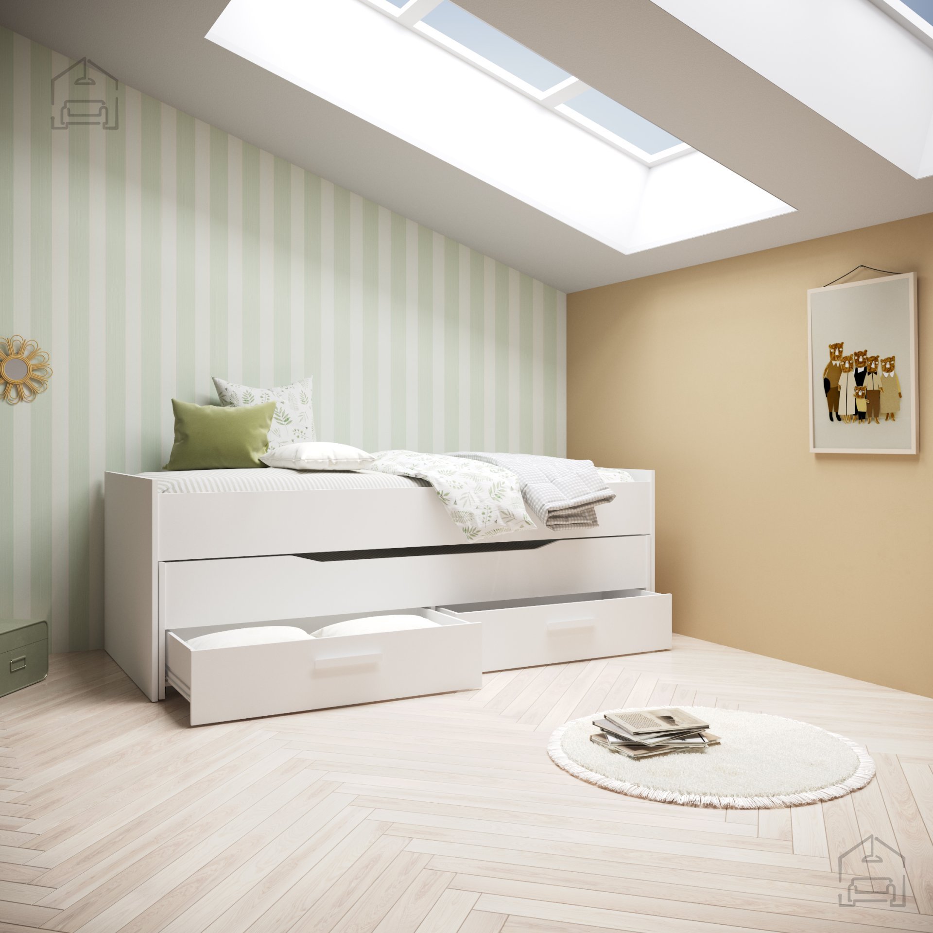 Zložljiva postelja Twist znamke Fola predstavlja premišljeno rešitev za sodoben dom, kjer je udobje enako pomembno kot učinkovita izraba prostora. Z zanesljivo konstrukcijo, priročnimi predali in univerzalno belo barvo se brez težav vključi v katerikoli bivalni ambient. Ne glede na to, ali jo uporabljate kot glavno ležišče, dodatno posteljo za goste ali del večnamenskega pohištva, postelja Twist združuje vse, kar potrebujete za prijeten, urejen in sodoben prostor.