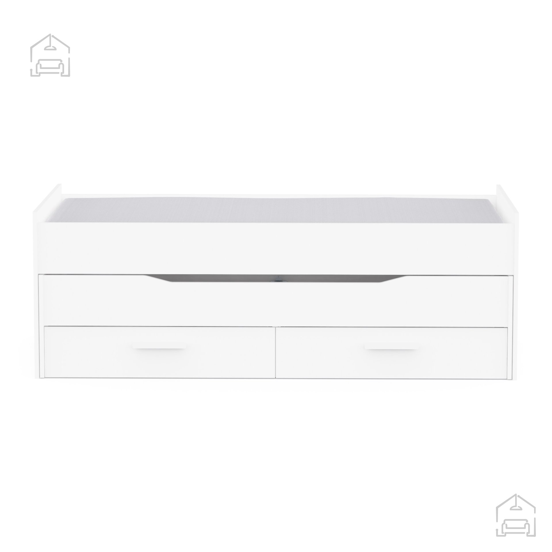 Obe ležišči sta prilagojeni standardnim vzmetnicam velikosti 90 × 200 cm. Največja priporočena višina vzmetnice, ki se popolnoma prilega okvirju, je 10 cm. Tako lahko brez težav uporabite obstoječe vzmetnice ali izberete nove glede na svoje potrebe.
