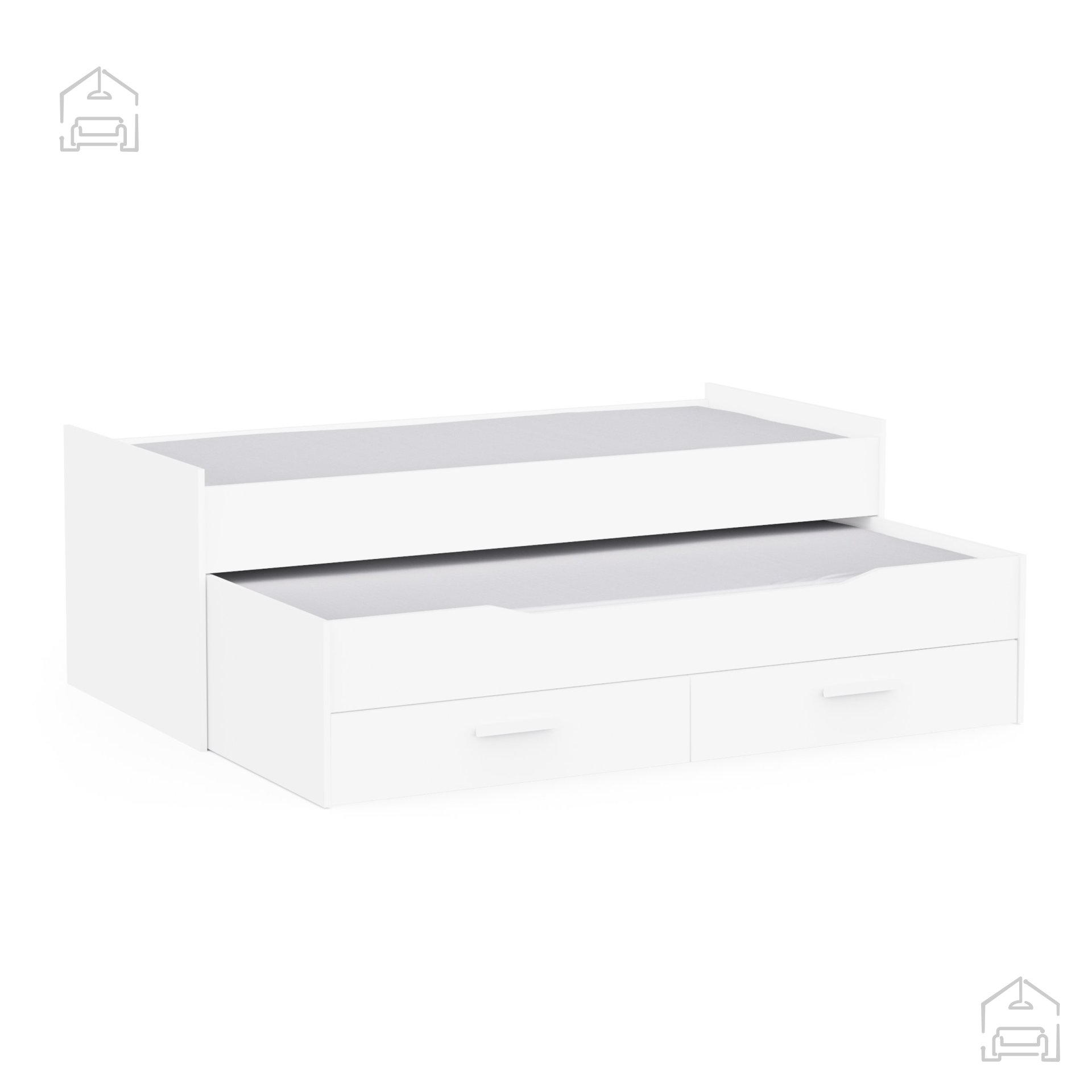Glavno ležišče nudi stabilno in udobno spalno površino, primerno za vsakodnevno uporabo. Drugo ležišče je zasnovano kot izvlečni del, ki ga lahko po potrebi enostavno potegnete izpod glavnega okvirja. Ko ni v uporabi, se diskretno pospravi nazaj, kar prihrani dragocen prostor v sobi. Takšna rešitev je idealna za manjše stanovanjske prostore, otroške ali mladinske sobe ter za vse, ki cenijo praktičnost brez kompromisov pri udobju.