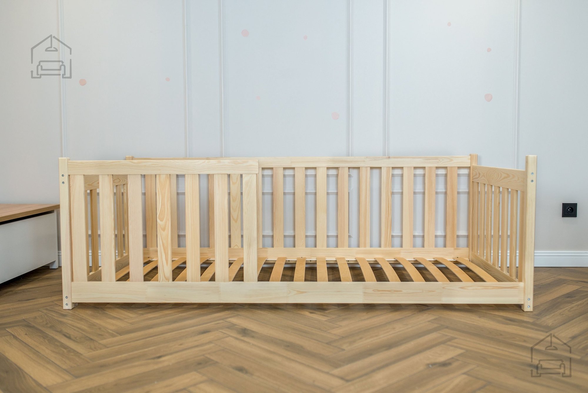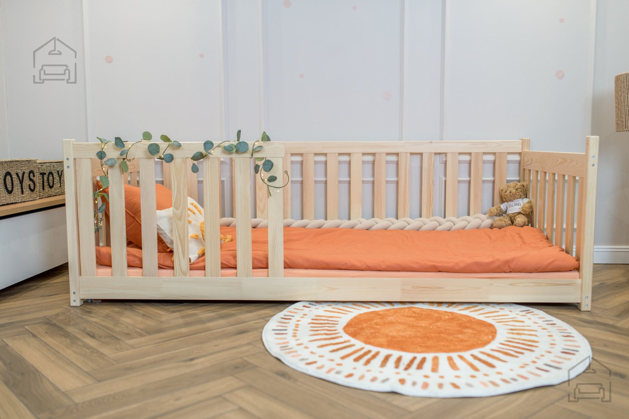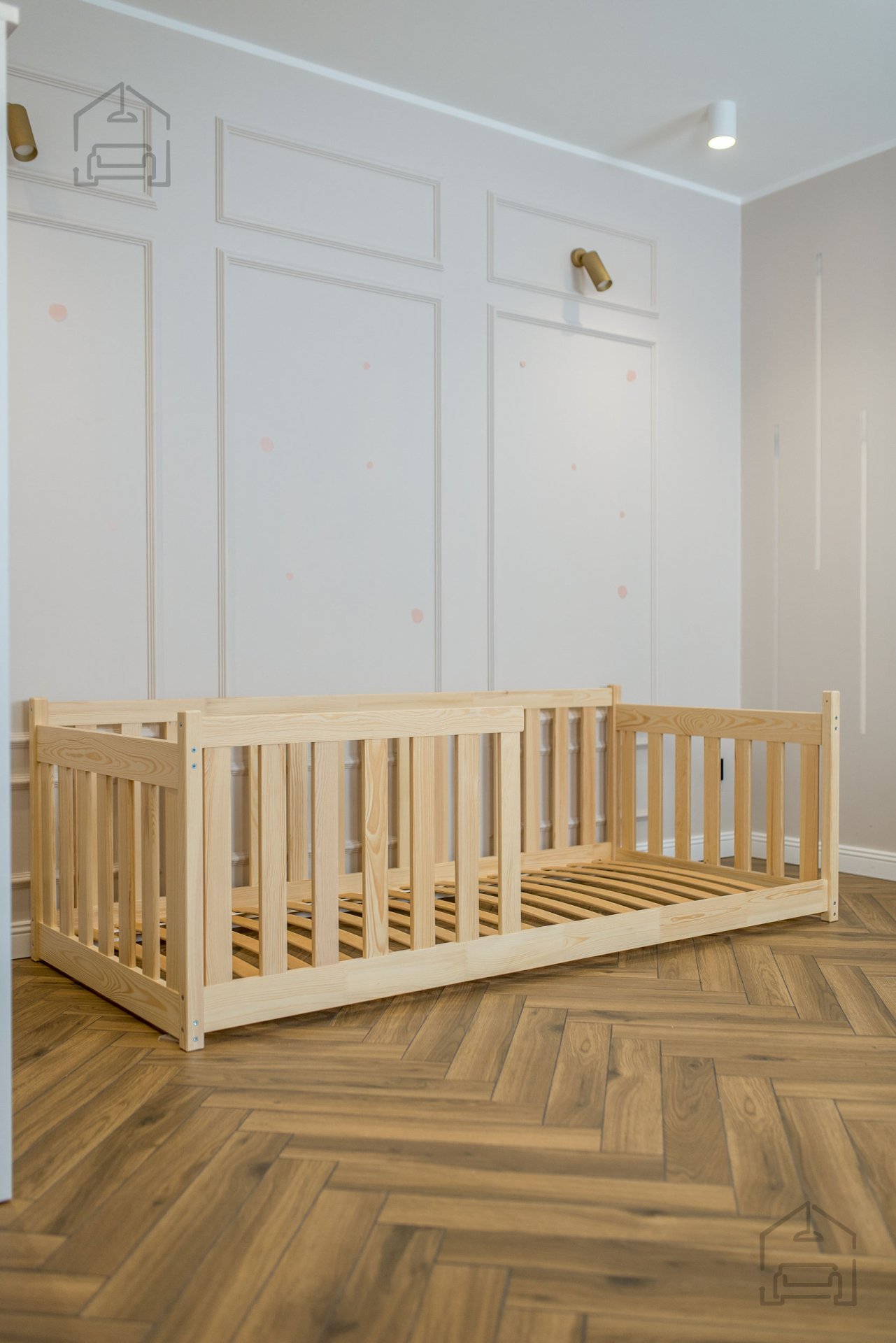 Otroška postelja Concept je zasnovana z mislijo na varnost in udobje najmlajših. Zaobljeni robovi zmanjšujejo tveganje za poškodbe med igro ali vstajanjem iz postelje, hkrati pa mehčajo njen videz. Ob straneh se nahajajo lesene pregrade, ki otroku nudijo občutek zaščite in preprečujejo morebitne padce med spanjem. Dodatna navpična pregrada je vključena v paket in jo je možno namestiti po izbiri – na levo ali desno stran postelje. Ta prilagodljivost olajša postavitev v prostoru, ne glede na razporeditev pohištva.