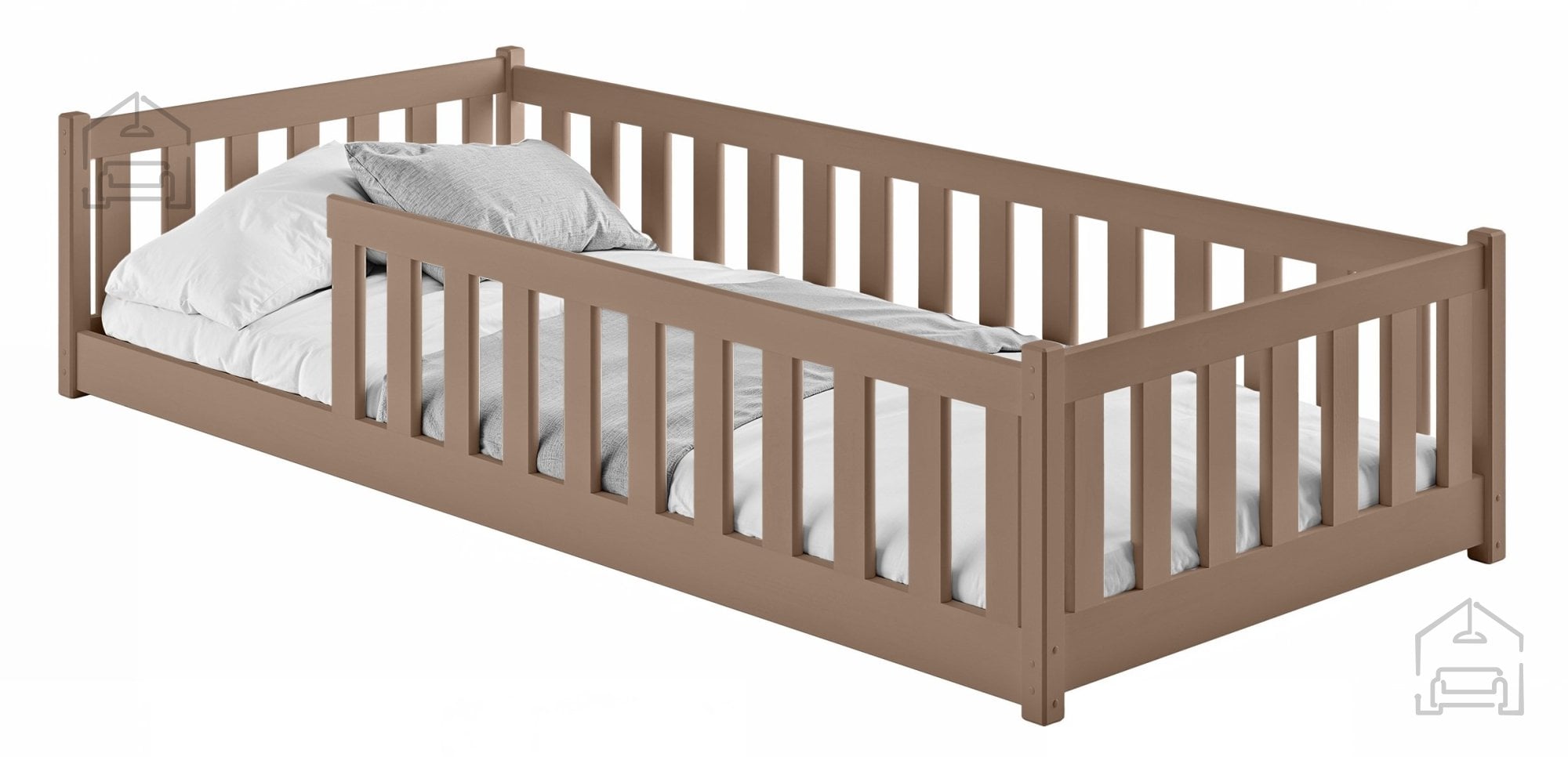 Barva v odtenku mlečne čokolade je elegantna in prijetna na pogled, saj združuje toplino lesa z nežno modernejšim tonom. Ta barva se lepo kombinira z naravnimi in pastelno obarvanimi stenami ali tekstilom, zato je postelja primerna tako za dekliške kot fantovske sobe. Diskreten dizajn brez ostrih robov poudarja varnost in udobje, hkrati pa ohranja klasičen videz lesenega pohištva.