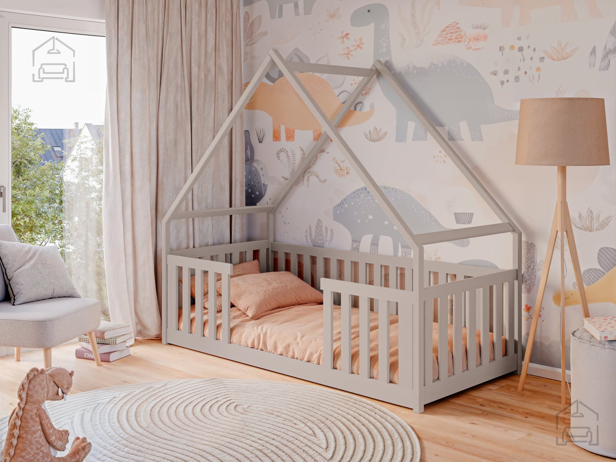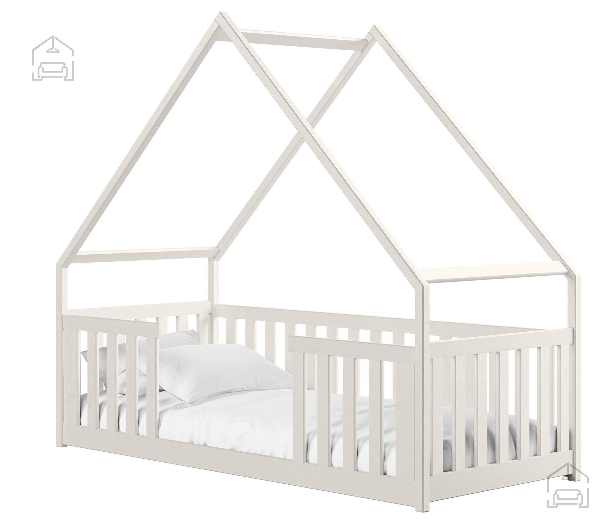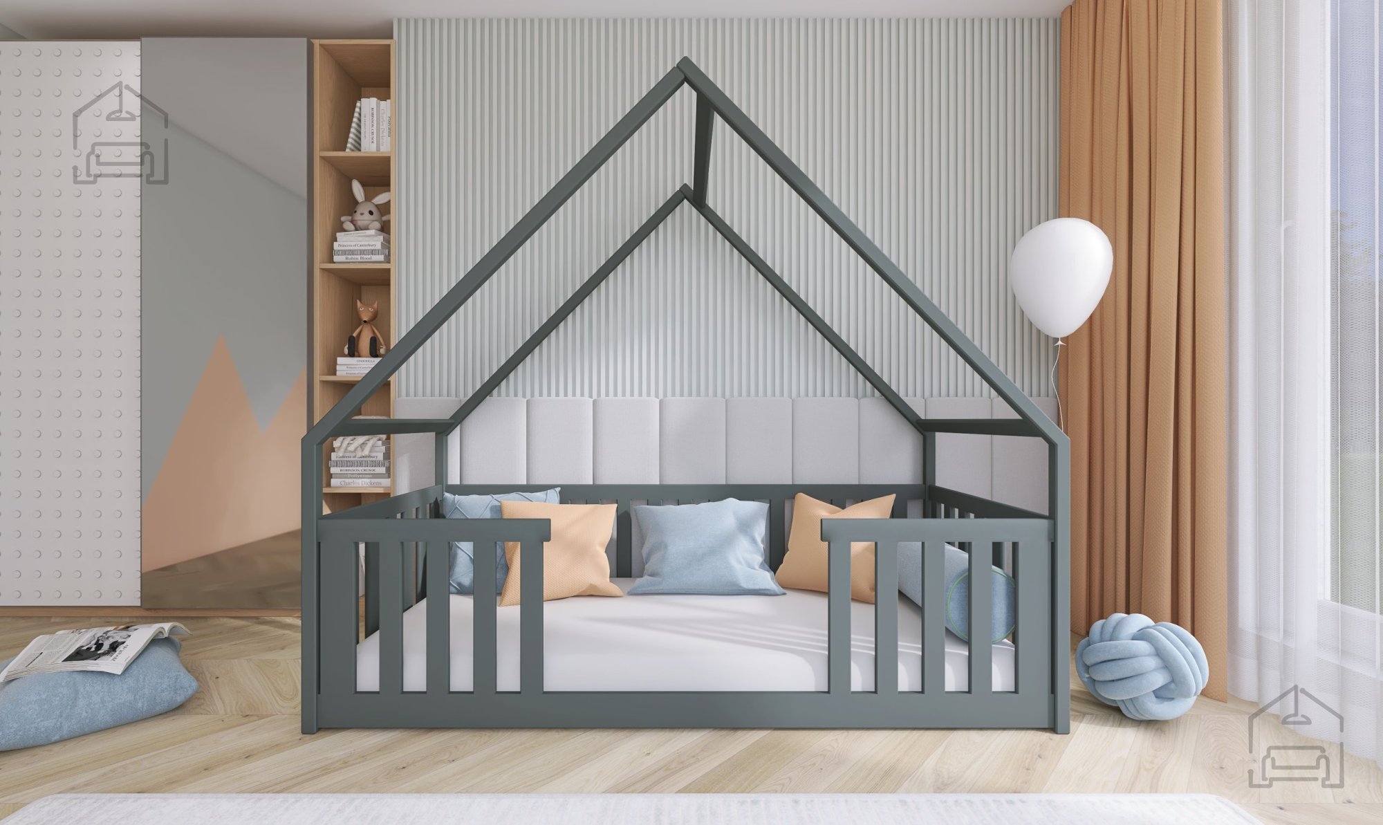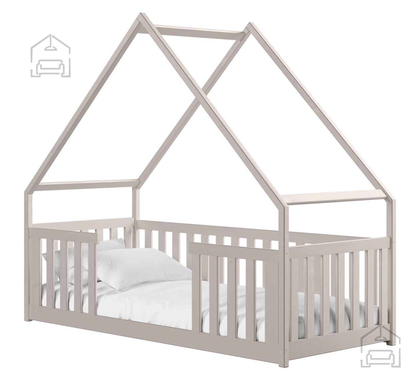 Postelja hiška Bee je na voljo v več barvnih kombinacijah, kar omogoča enostavno prilagajanje dekorju sobe. Izbirate lahko med odtenki bela, bor, grafit, siva, kašmir, olive in krem. Vsaka barva ima svoj značaj – bela prinaša svežino in zračnost, bor poudari naravni videz lesa, siva in grafit dodata sodoben pridih, medtem ko barve kašmir, olive in krem v prostor vnesejo toplino ter občutek nežnosti. Površina je obdelana s kakovostnimi premazi, varnimi za otroke in odporna proti praskam ter obrabi.
