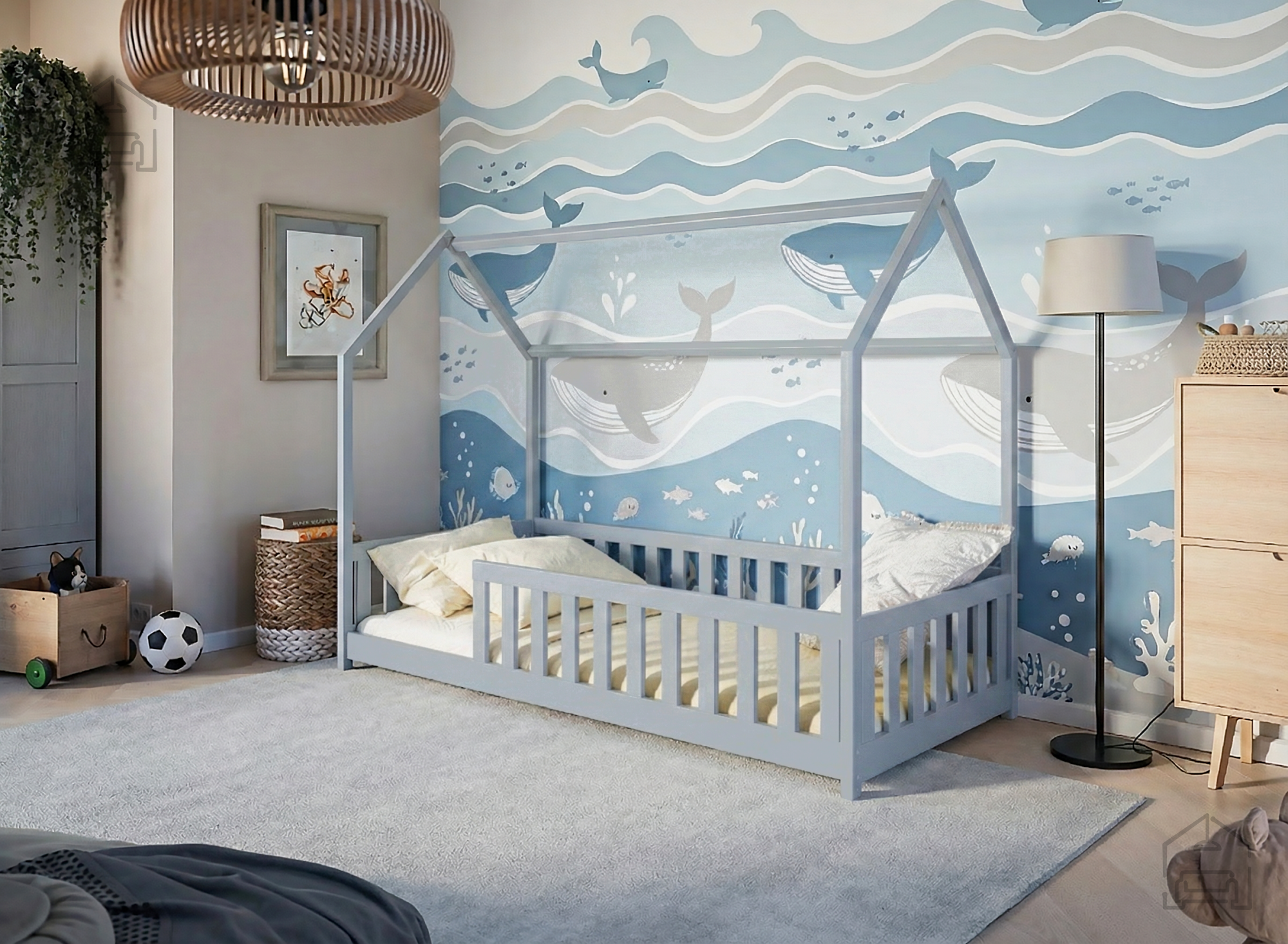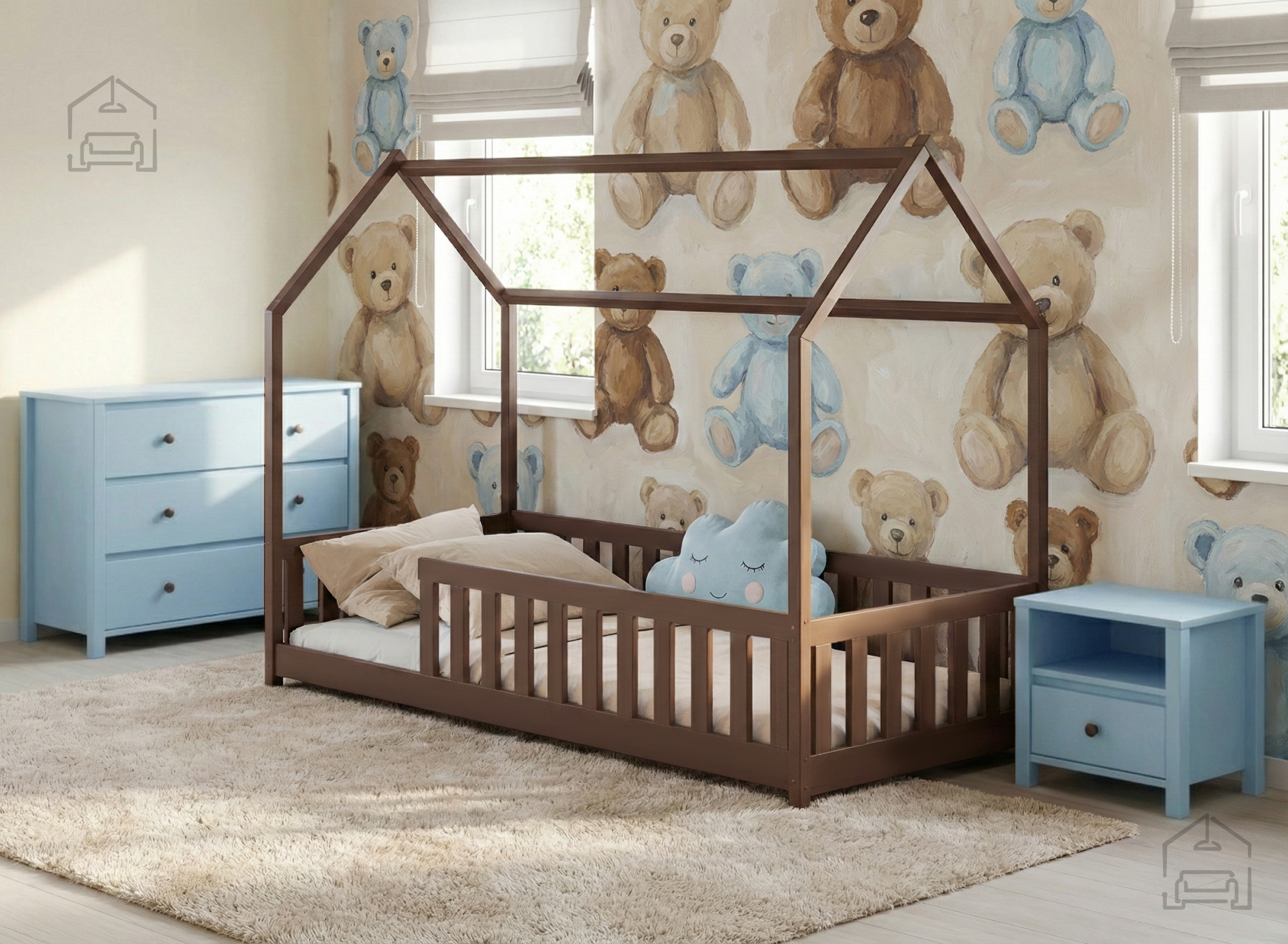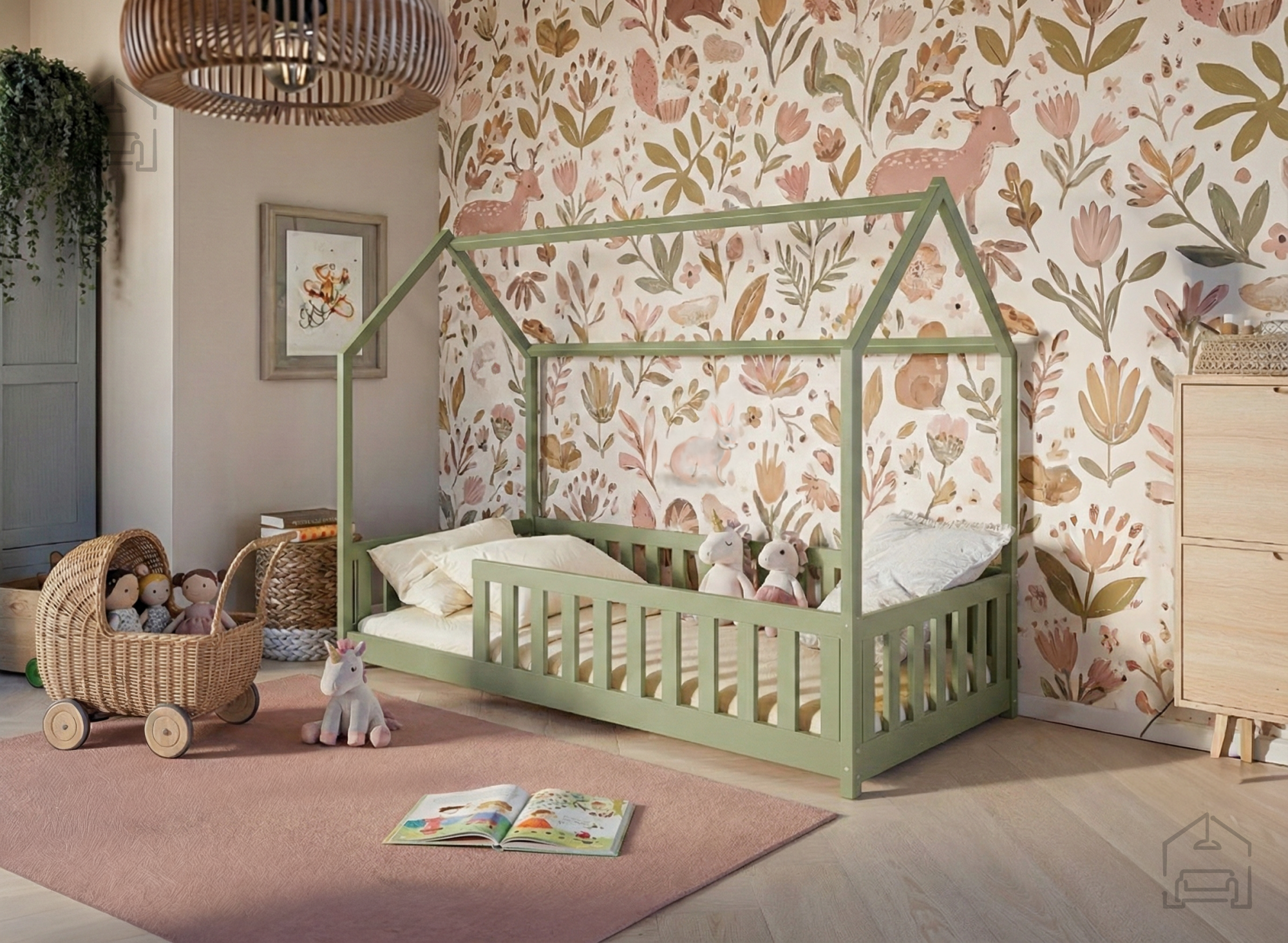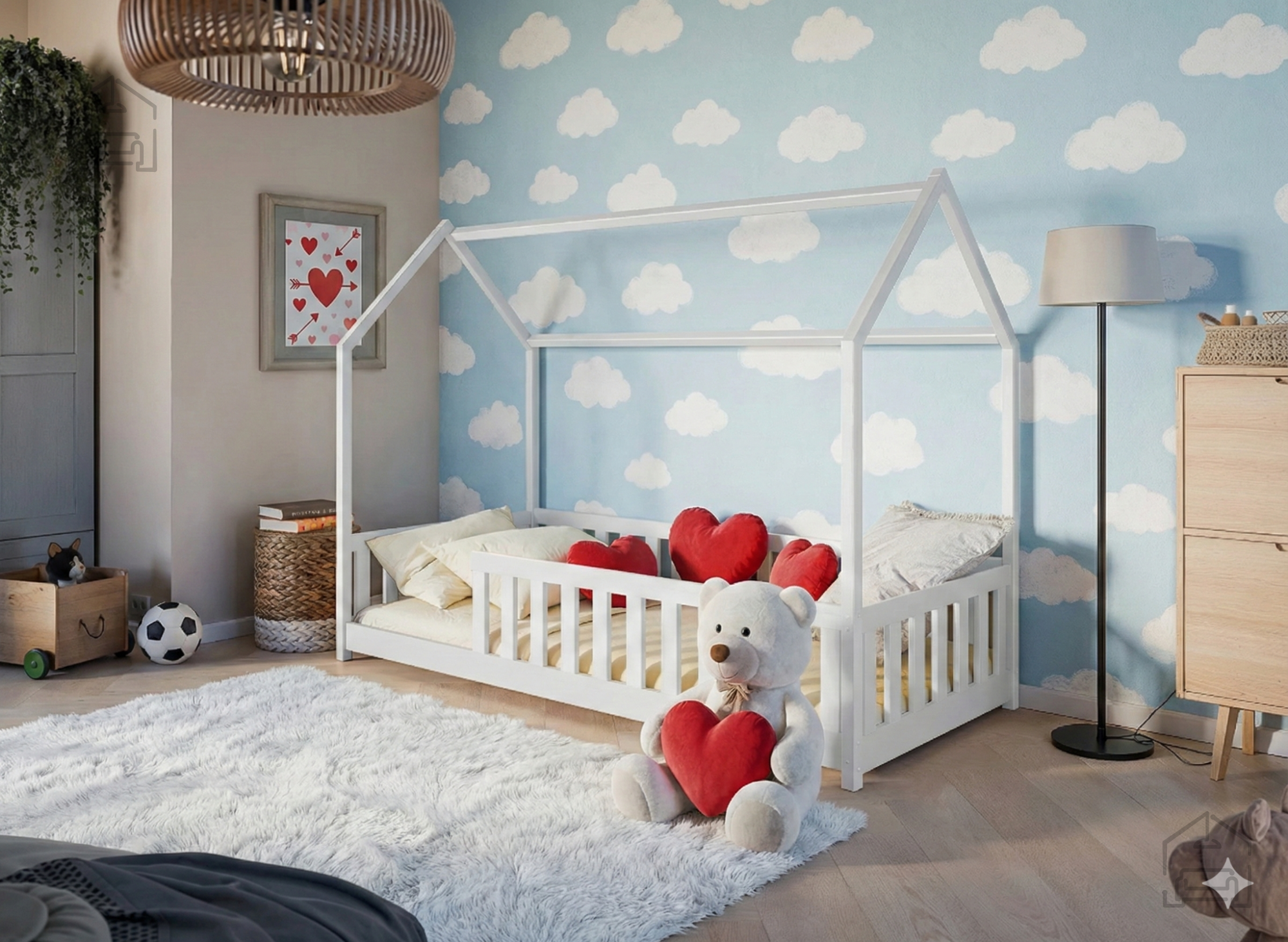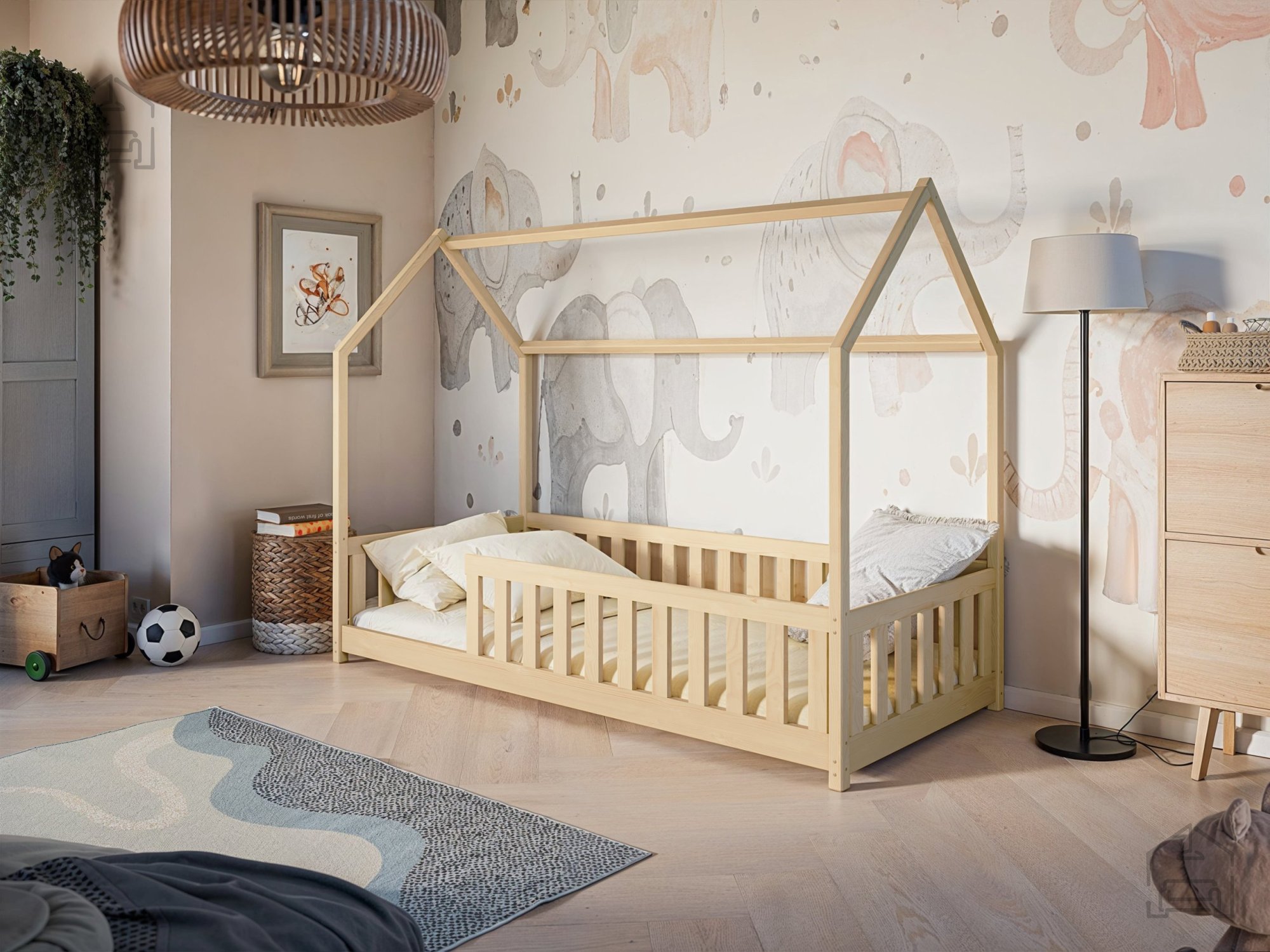 Otroška postelja hiška Noan – Lano je prikupna in hkrati funkcionalna izbira za vsako otroško sobo. Izdelana je iz trpežnega borovega lesa, ki zagotavlja naravno toplino, stabilnost in dolgo življenjsko dobo. Zasnova v obliki hiške ustvarja prijeten in domiseln prostor, v katerem lahko otrok spi, bere ali se igra, hkrati pa spodbuja domišljijo in občutek varnosti. Postelja je na voljo v številnih barvnih odtenkih – od klasične bele, bora in sive do tople mlečne ali temne čokolade, cimetove, kašmir, olive in krem barve. Tako se popolnoma prilagodi različnim slogom otroških sob, ne glede na to, ali želite svetel skandinavski videz ali prijetno rustikalno vzdušje.