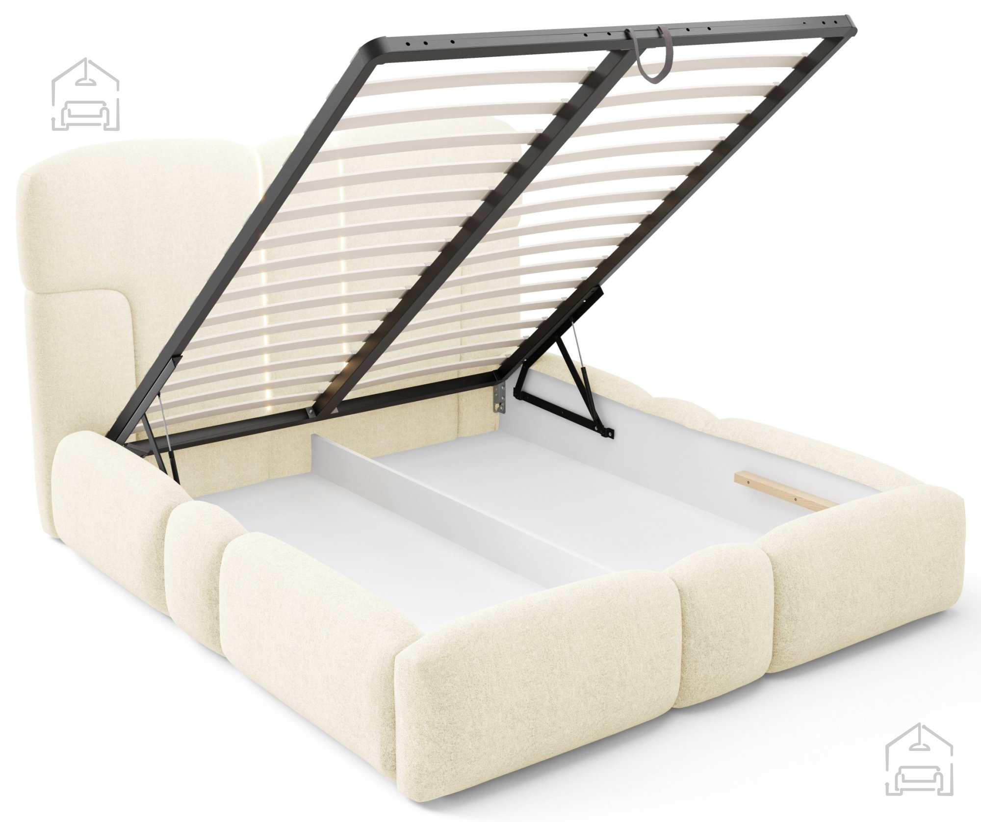 Vgrajeni dvižni mehanizem s plinskimi vzmetmi 1000N omogoča preprosto dvigovanje ležišča brez napora. Sistem je tih, varen in prilagojen vsakodnevni uporabi. Pod letvenim dnom se skriva prostoren predal, namenjen shranjevanju posteljnine, sezonskih oblačil ali drugih tekstilnih dodatkov. Takšna rešitev prihrani dragocen prostor v omari in ohranja spalnico urejeno. Elastične letvice zagotavljajo optimalno podporo vzmetnici ter omogočajo učinkovito prezračevanje, kar pripomore k daljši življenjski dobi ležišča.