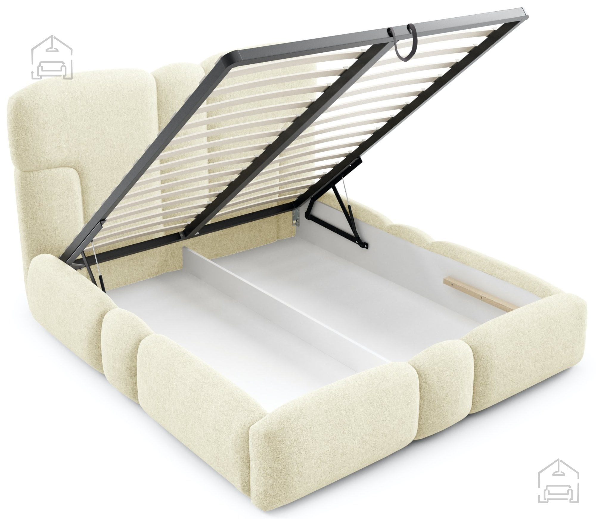Vsi elementi postelje Monti so zasnovani z mislijo na trajnost in vsakodnevno udobje. Kovinski okvir zagotavlja stabilnost, plinski dvižni sistem omogoča praktično shranjevanje, oblazinjenje pa poskrbi za prijeten občutek topline in domačnosti. Gre za izdelek, ki združuje funkcionalnost, sodoben dizajn in kakovostno izdelavo v eni elegantni celoti.