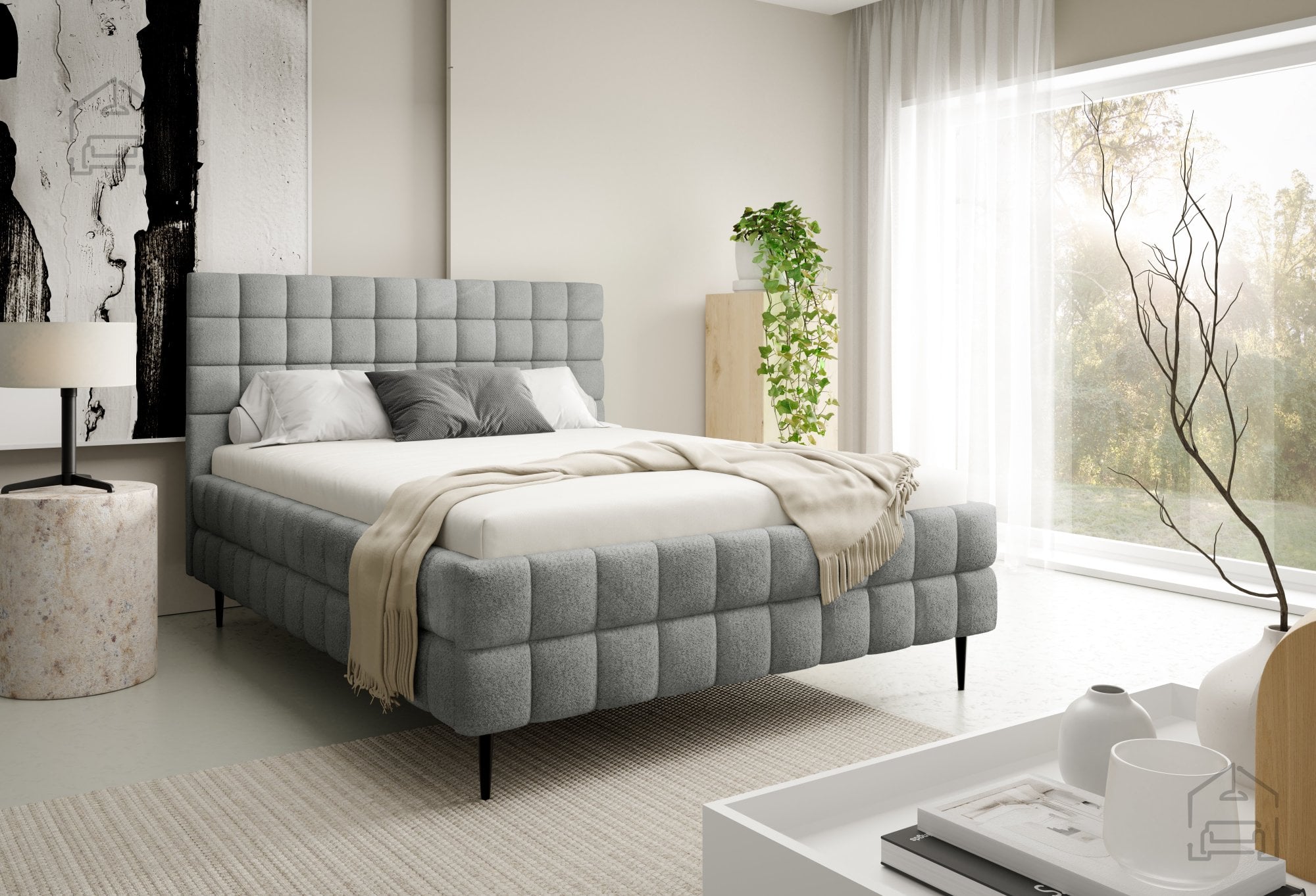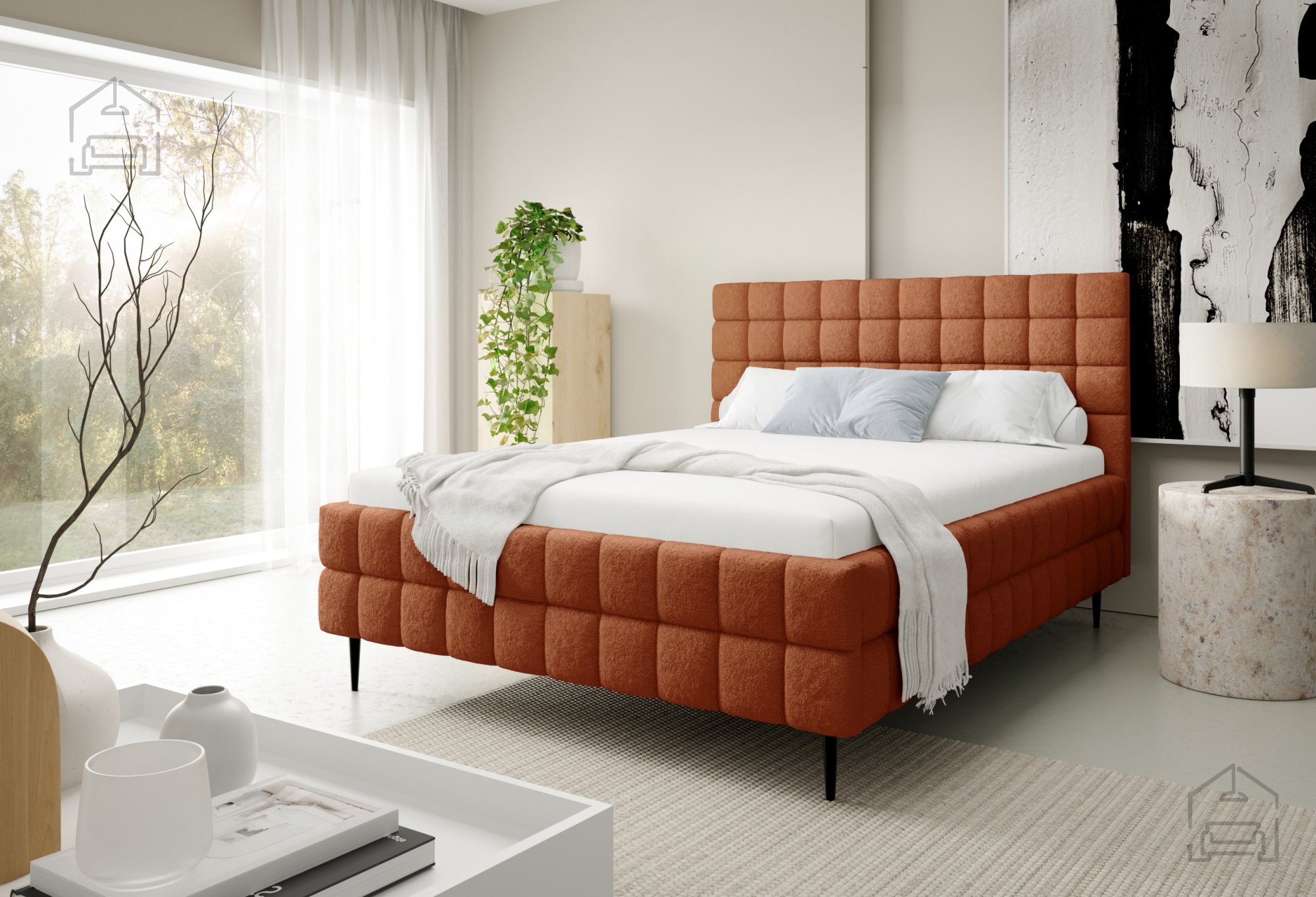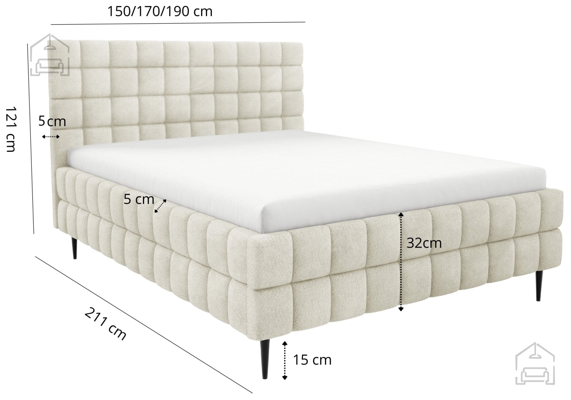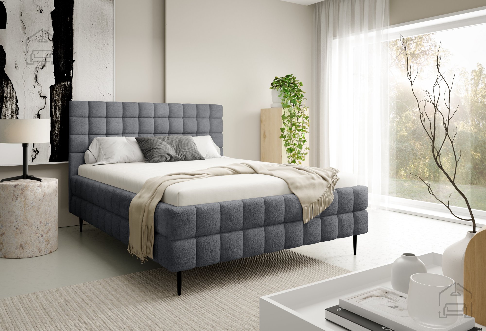 Postelja Ardea z nogicami – Meble Gruška je sodobna, funkcionalna in estetsko dovršena postelja, ki združuje udobje, praktičnost in eleganco. Njen lesen tapeciran okvir nudi stabilnost in trpežnost, hkrati pa mehak videz, ki se lepo prilagodi različnim slogom spalnic. S svojo standardno velikostjo 150x211x106 cm omogoča udobno ležišče za dve osebi, medtem ko premišljene podrobnosti, kot so okrasni šivi in črne kovinske noge, ustvarjajo prefinjen sodoben videz.