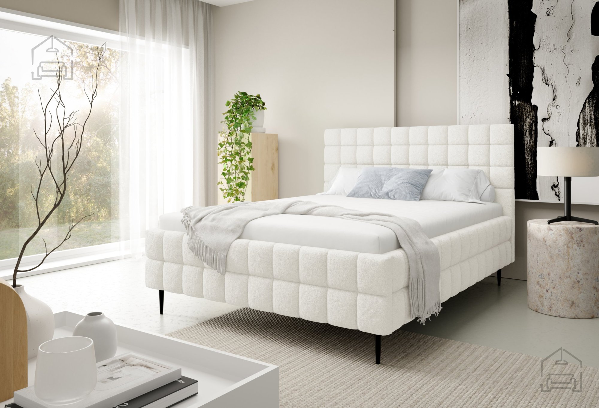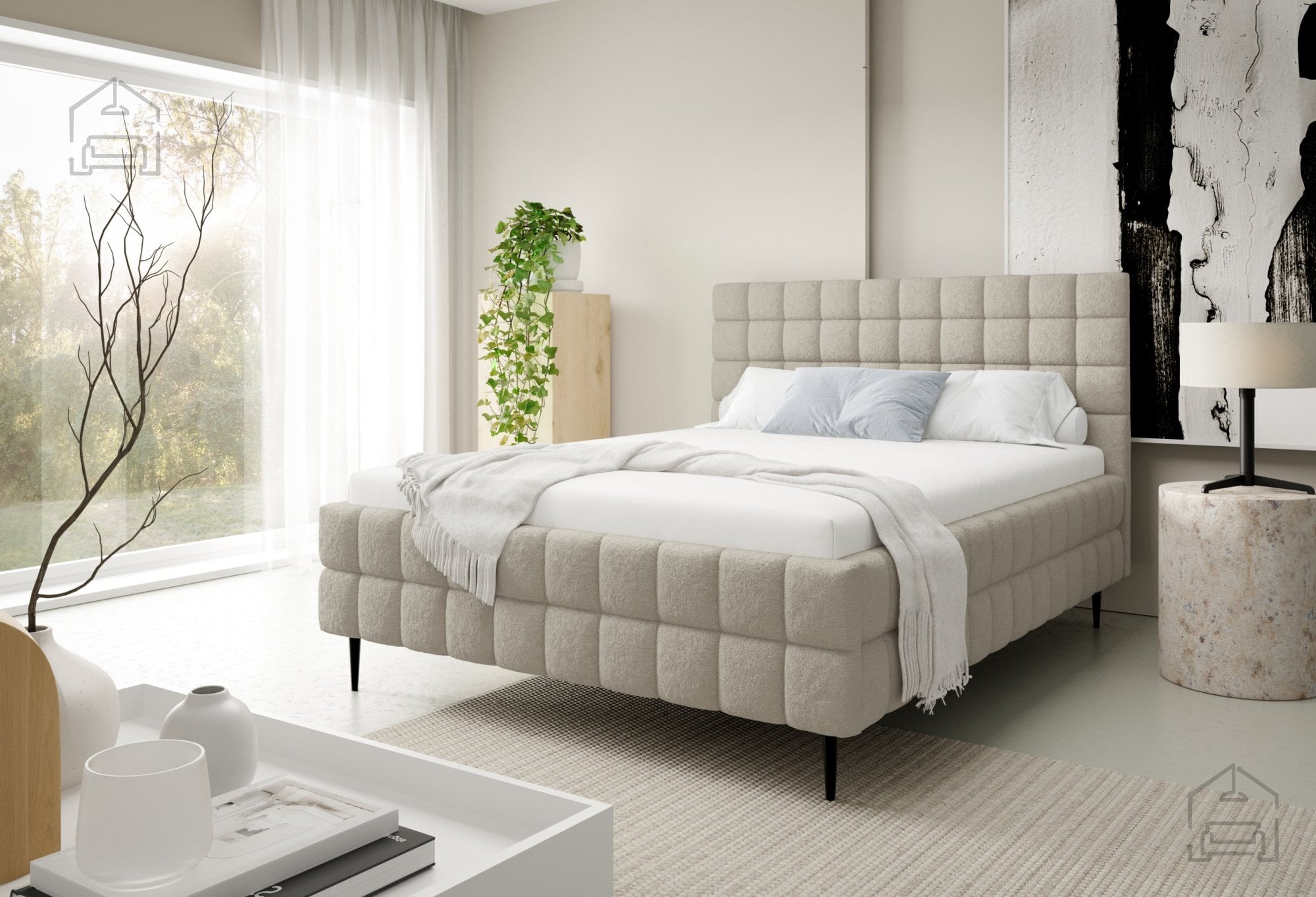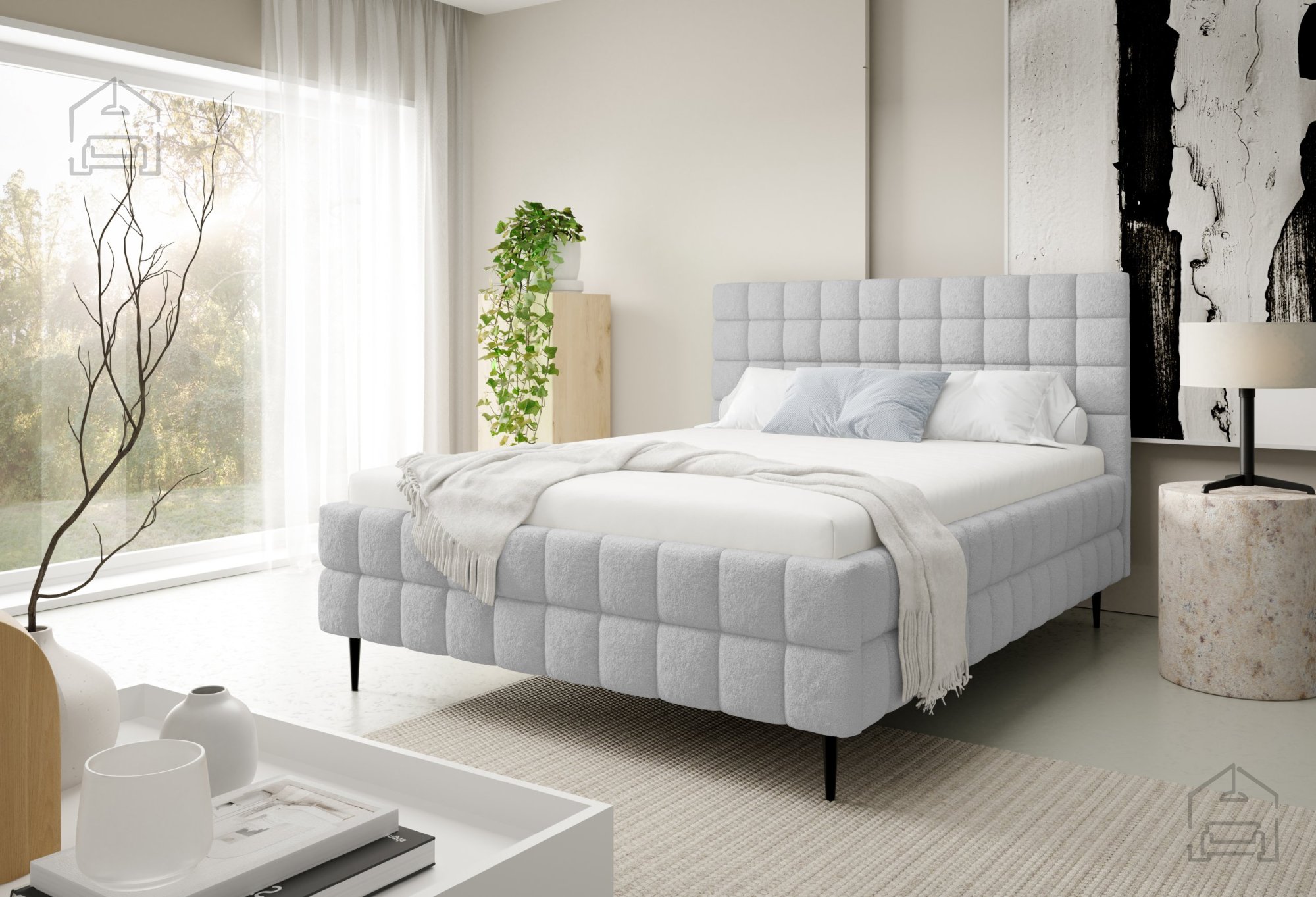 Postelja Ardea z nogicami je izdelana iz kakovostnih materialov, ki zagotavljajo dolgo življenjsko dobo in enostavno vzdrževanje. Tapeciran okvir je oblečen v mehko tkanino, na sliki prikazano v odtenku Lambi 1, vendar je postelja na voljo v več barvah, kar omogoča popolno prilagoditev vašemu interierju. Okrasni šivi poudarijo prefinjeno obliko in dodajo subtilen vizualni poudarek, ki dopolni minimalističen dizajn.