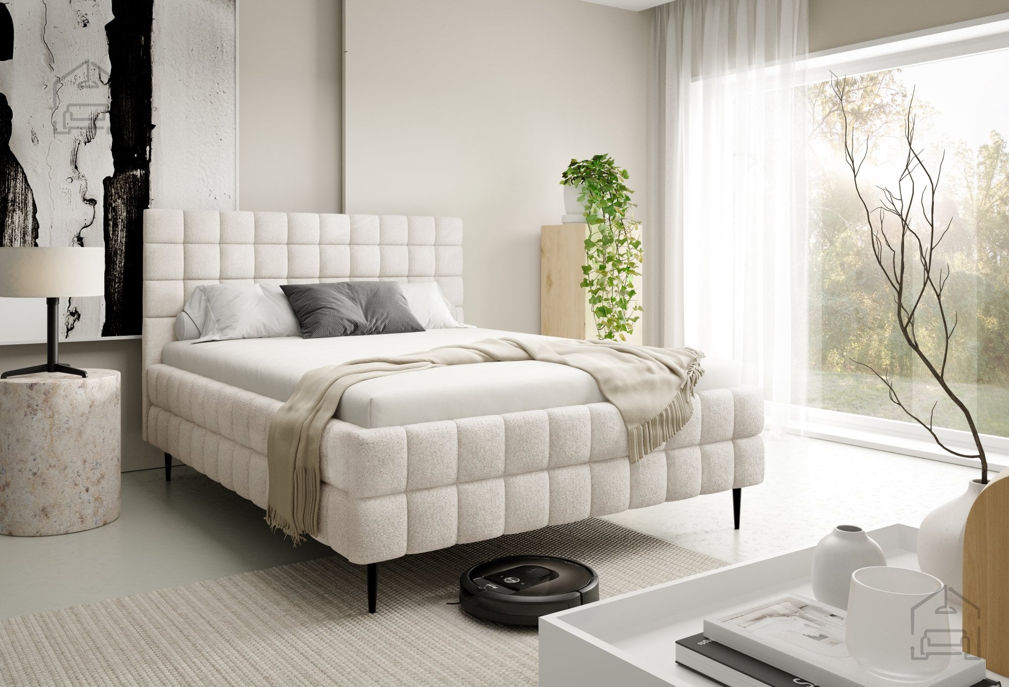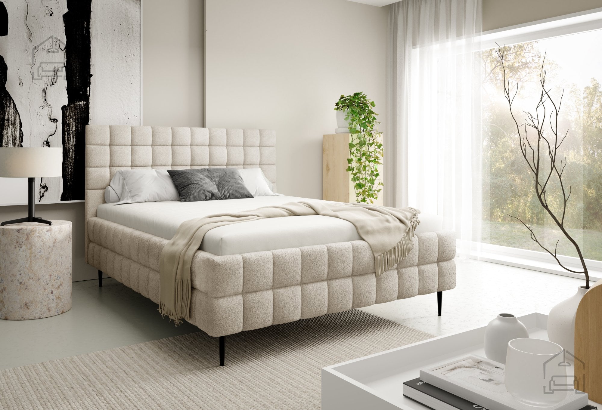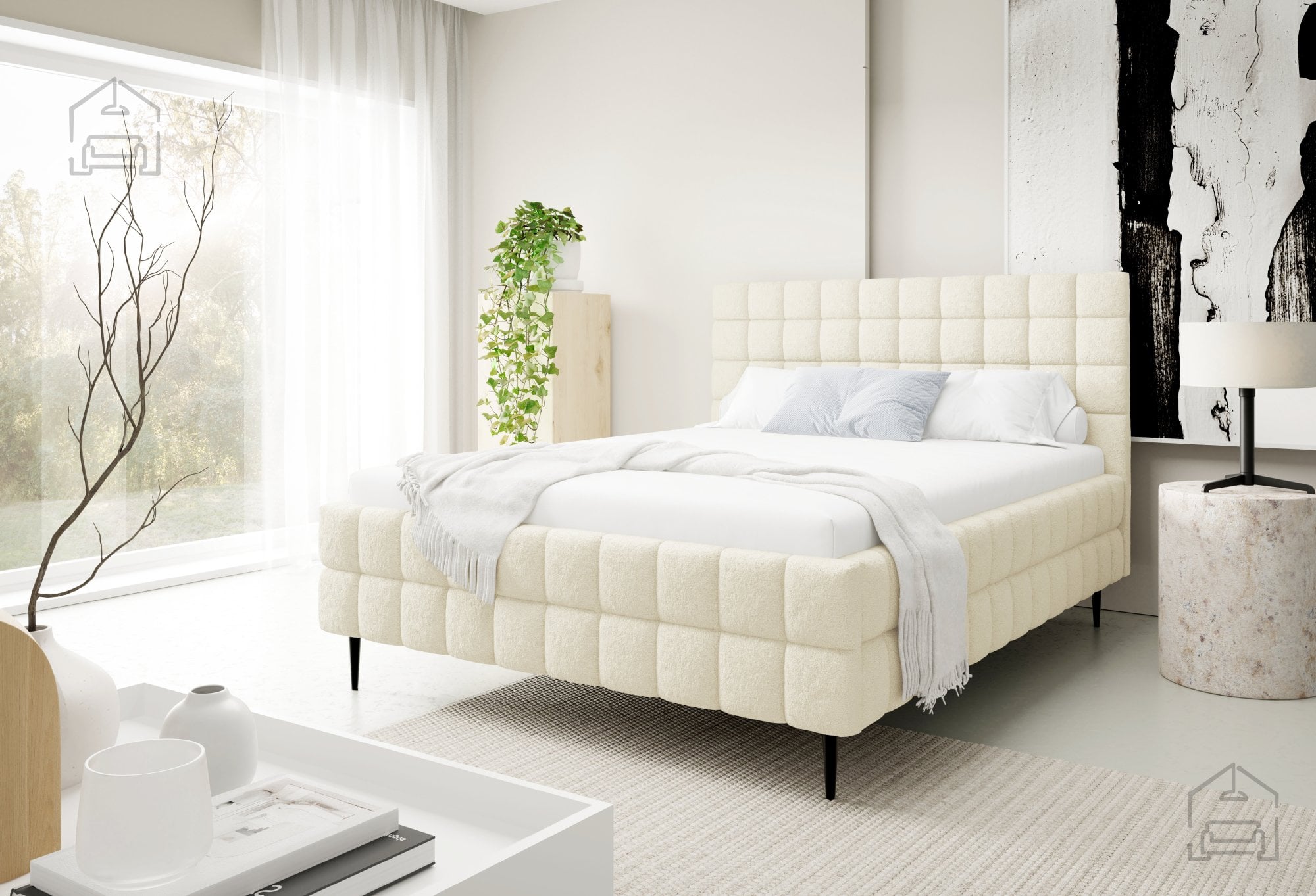Postelja Ardea z nogicami je izdelana iz kakovostnih materialov, ki zagotavljajo dolgo življenjsko dobo in enostavno vzdrževanje. Tapeciran okvir je oblečen v mehko tkanino, na sliki prikazano v odtenku Lambi 1, vendar je postelja na voljo v več barvah, kar omogoča popolno prilagoditev vašemu interierju. Okrasni šivi poudarijo prefinjeno obliko in dodajo subtilen vizualni poudarek, ki dopolni minimalističen dizajn.
