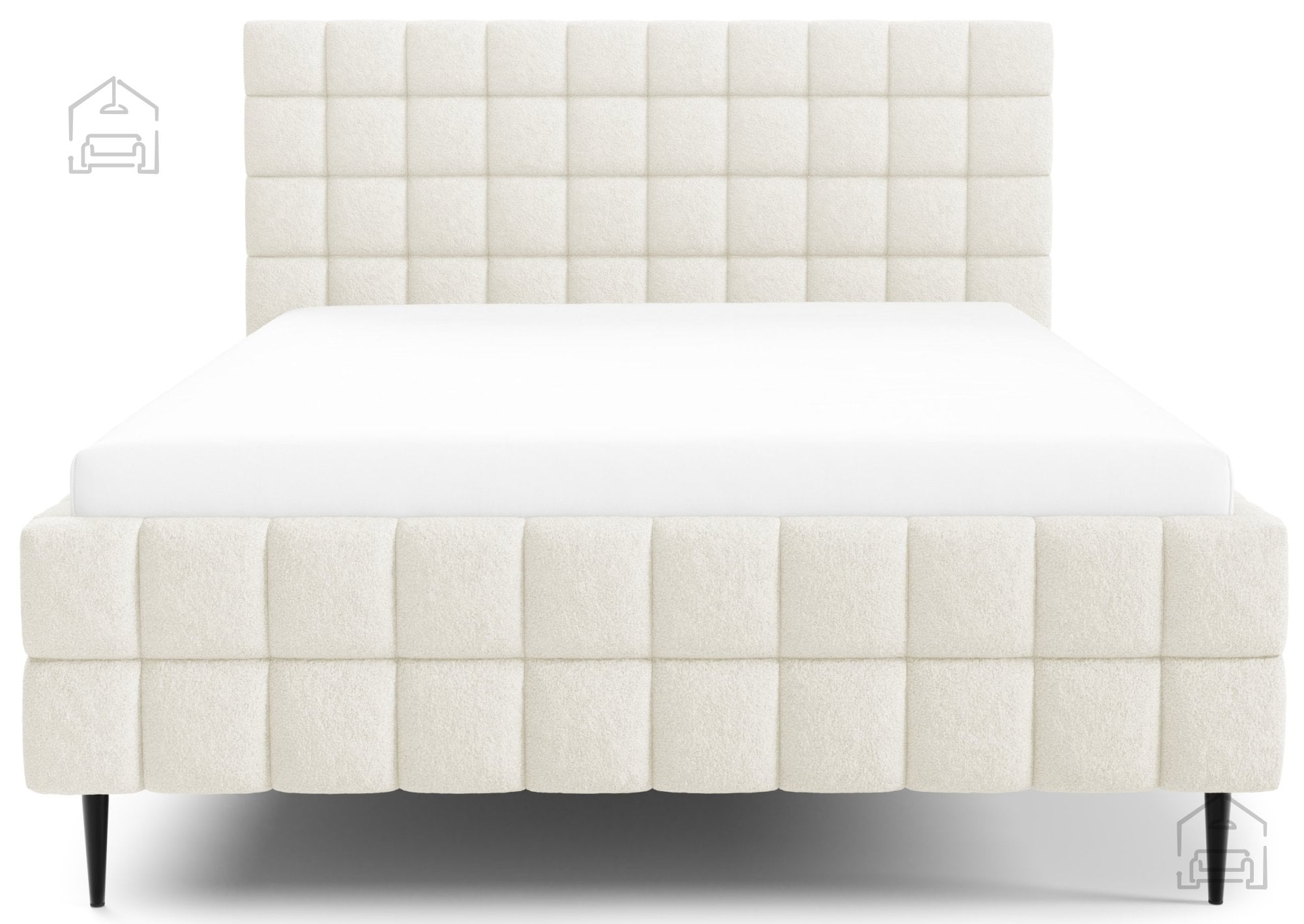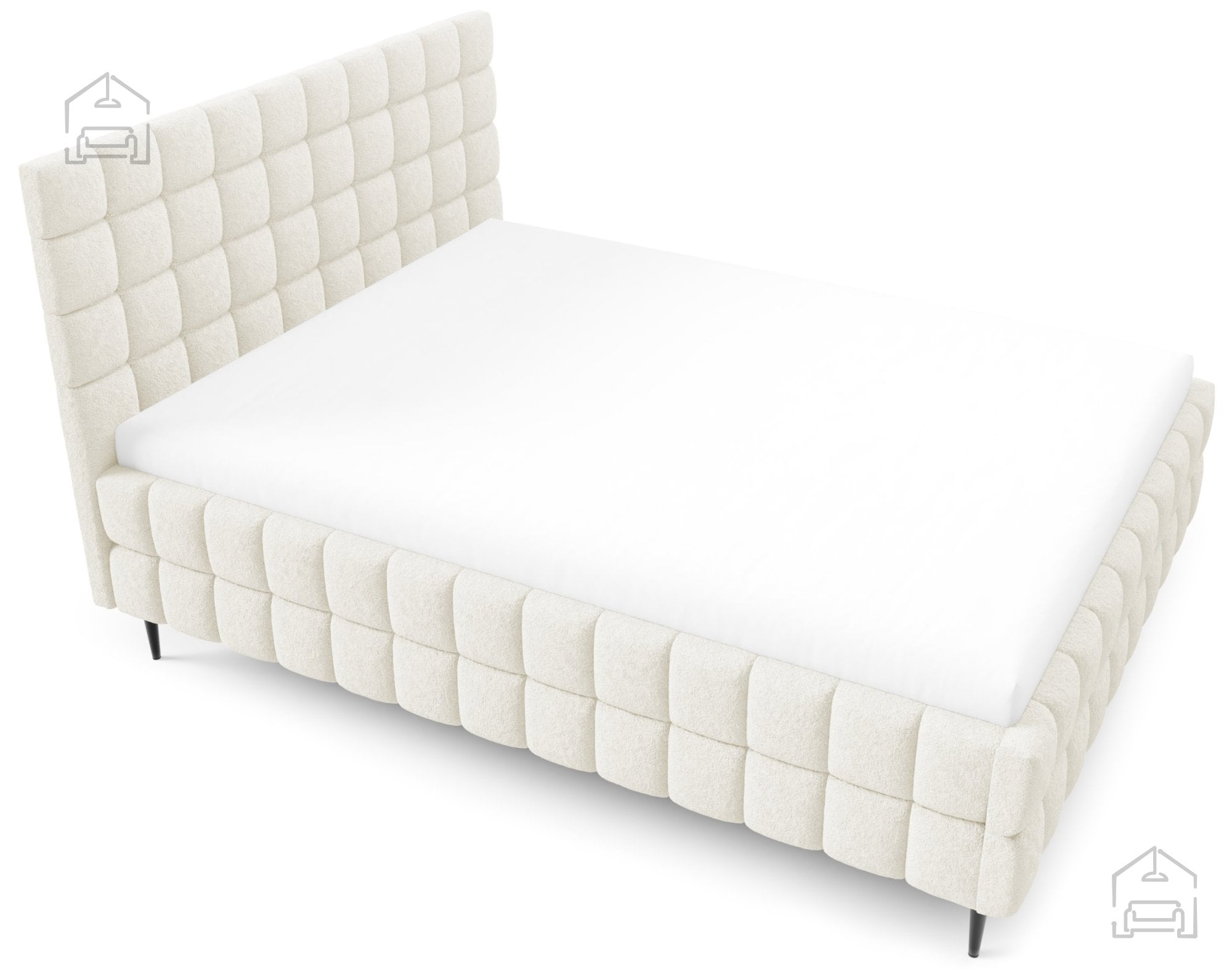Trdnost in stabilnost zagotavljajo črne kovinske noge, ki hkrati poskrbijo za sodoben kontrast in vizualno lahkotnost konstrukcije. Zaradi višine nog je prostor pod posteljo zračen, kar pripomore k higieni in enostavnejšemu čiščenju. Kovinske noge so izdelane po standardu, ki zagotavlja enakomerno porazdelitev teže in dolgotrajno stabilnost.