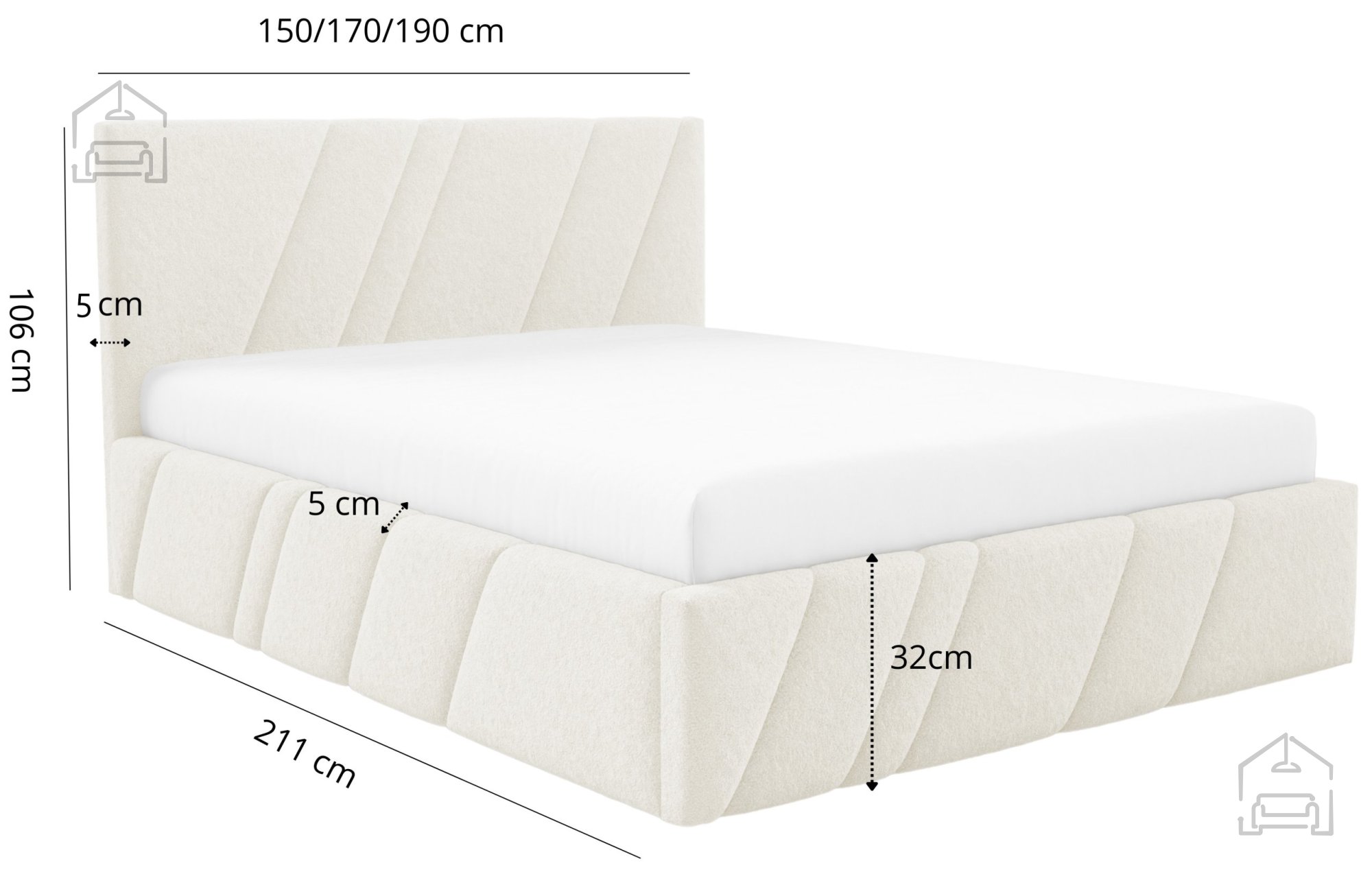 Postelja meri 150x211x106 cm, kar ustreza prostorni dvoposteljni zasnovi, primerni za večino spalnic. Višina vzglavja omogoča udobno naslanjanje med branjem ali gledanjem televizije, medtem ko celotna struktura ostaja uravnotežena in stabilna. Izdelek je na voljo v več barvah, zato ga je mogoče prilagoditi različnim slogom notranje opreme. Ne glede na to, ali želite svetlejši ton za zračen videz ali temnejšo barvo za poudarjeno eleganco, postelja Nest ponuja možnosti, ki zadovoljijo različne estetske preference.