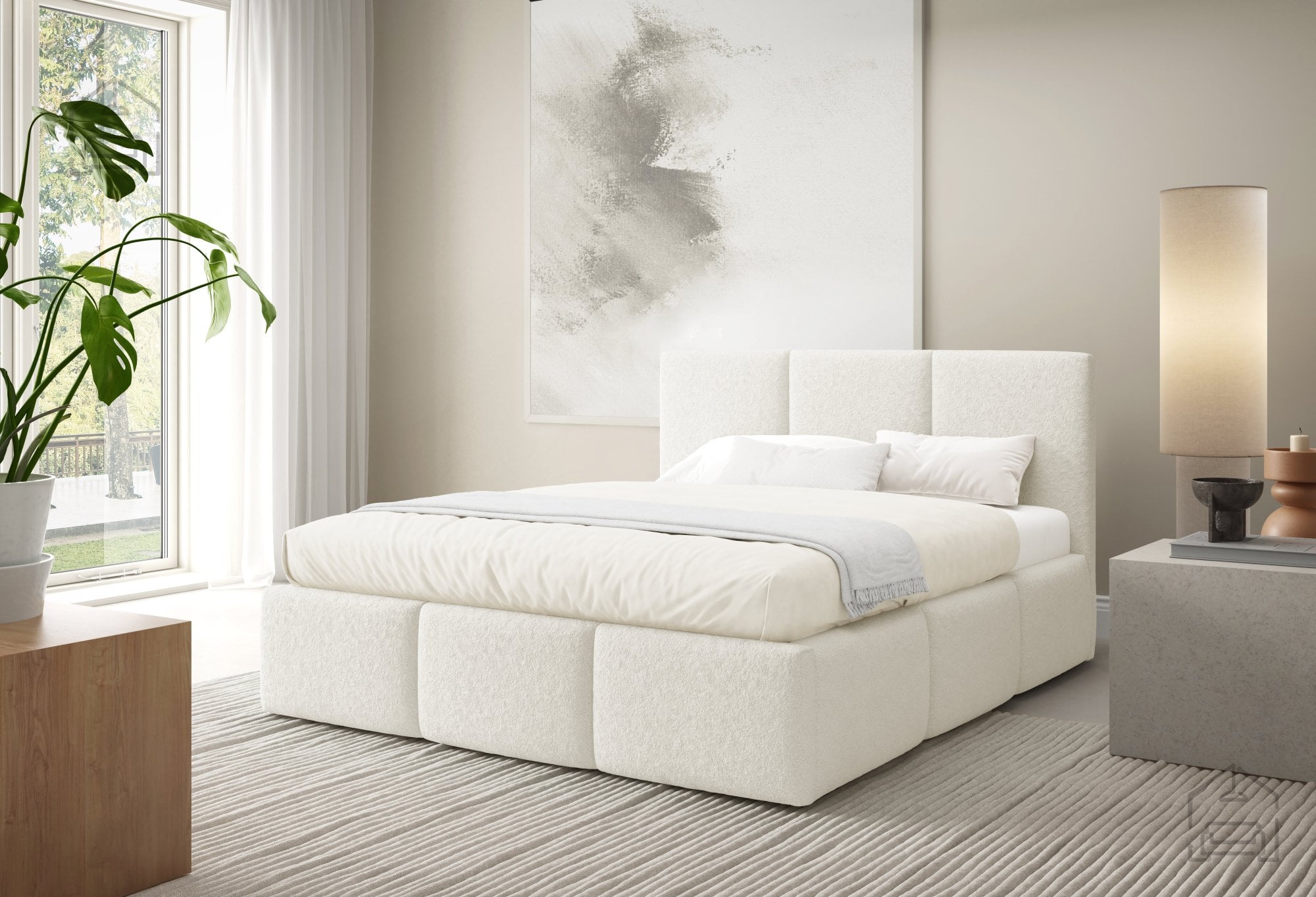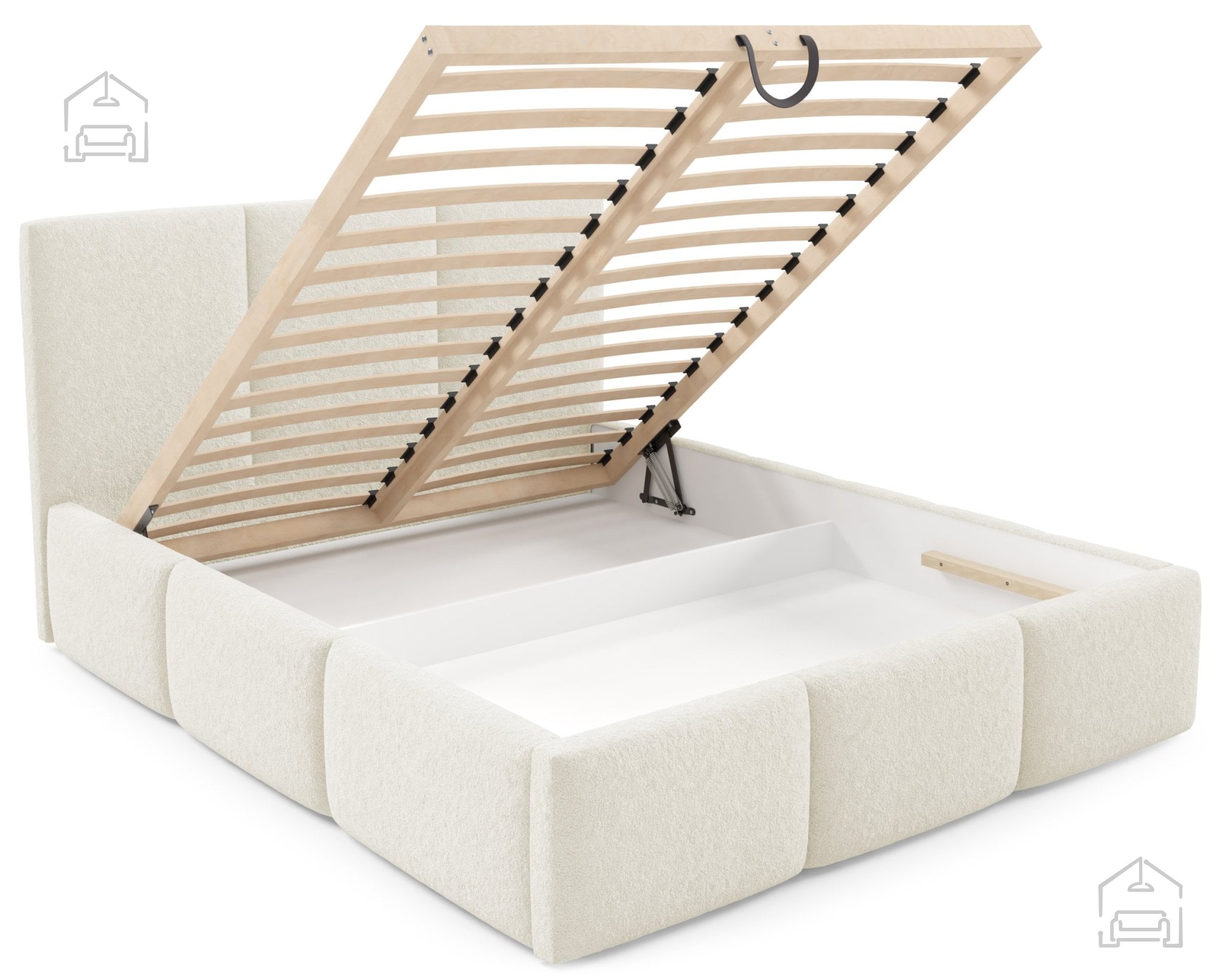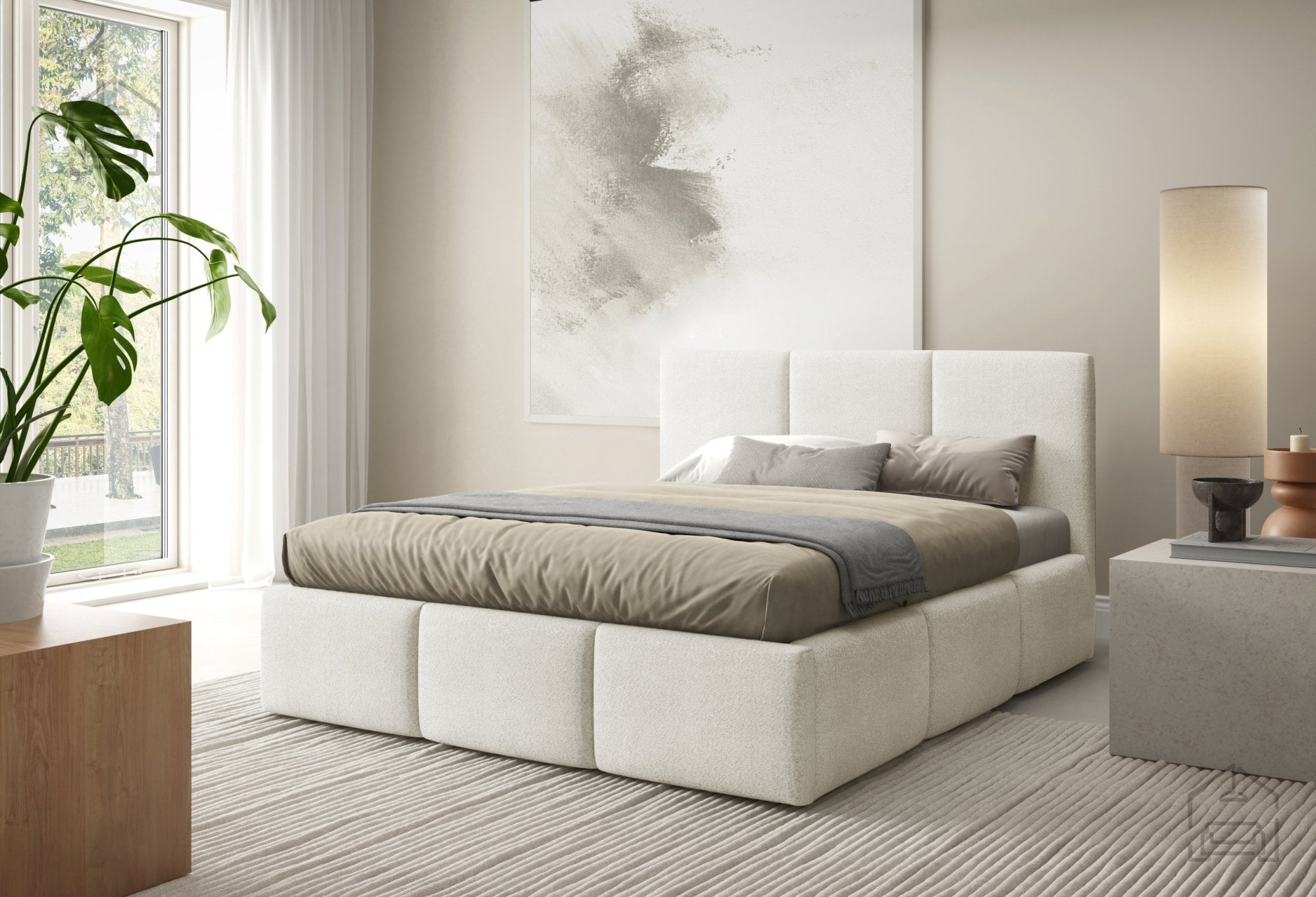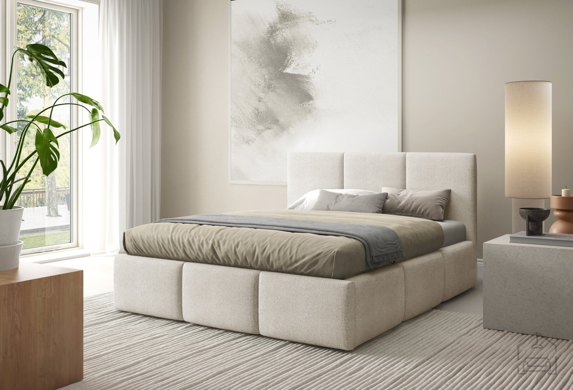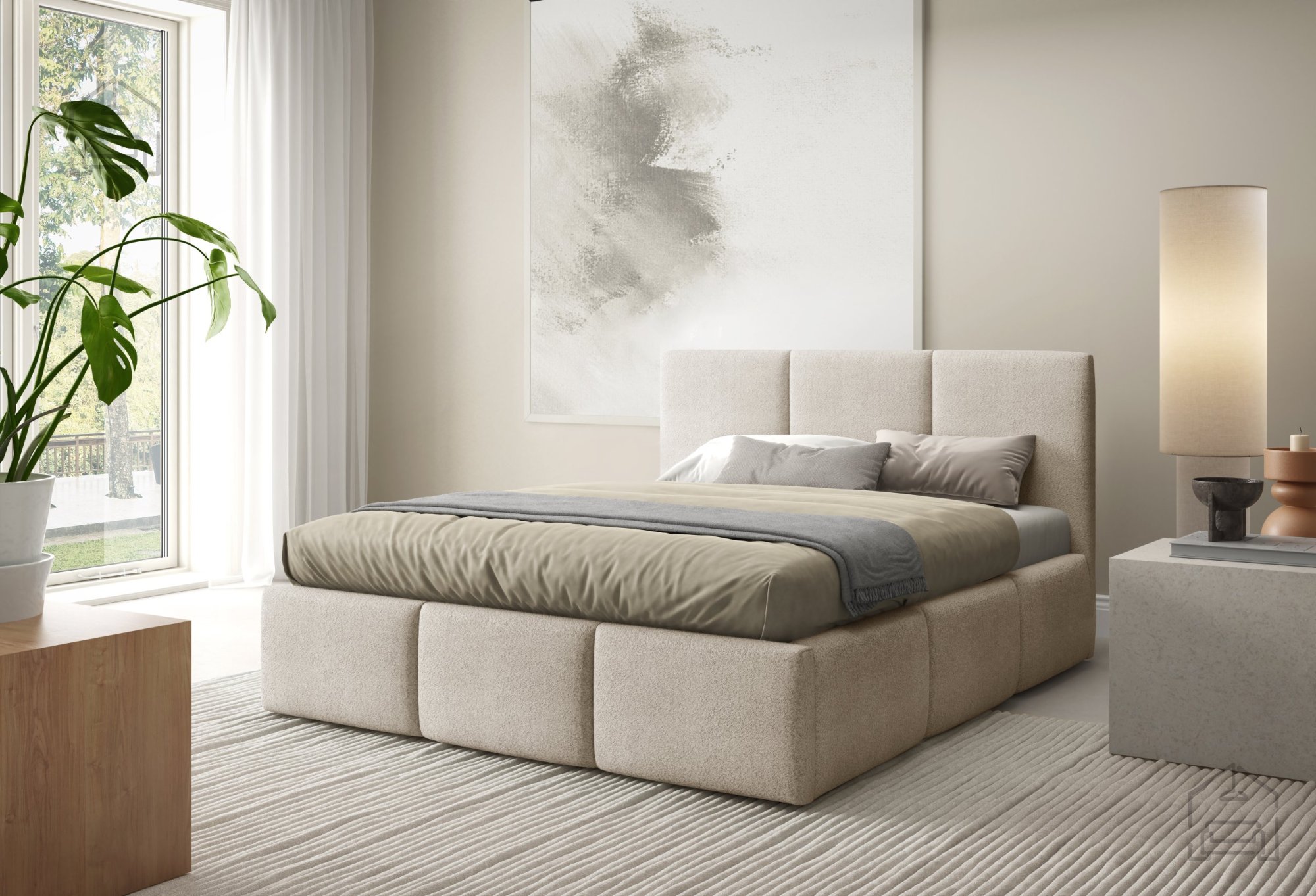 Postelja ni le estetsko dovršena, temveč tudi izjemno funkcionalna. Vgrajen dvižni mehanizem z vzmetnim odpiranjem omogoča enostaven dostop do prostornega predala za posteljnino. Ta predal je idealen za shranjevanje odej, vzglavnikov ali sezonskih oblačil, saj pomaga ohranjati spalnico urejeno in prostorno. Zaradi vzmetnega sistema je dvig posteljnega okvirja lahek in varen, brez napora pri rokovanju.