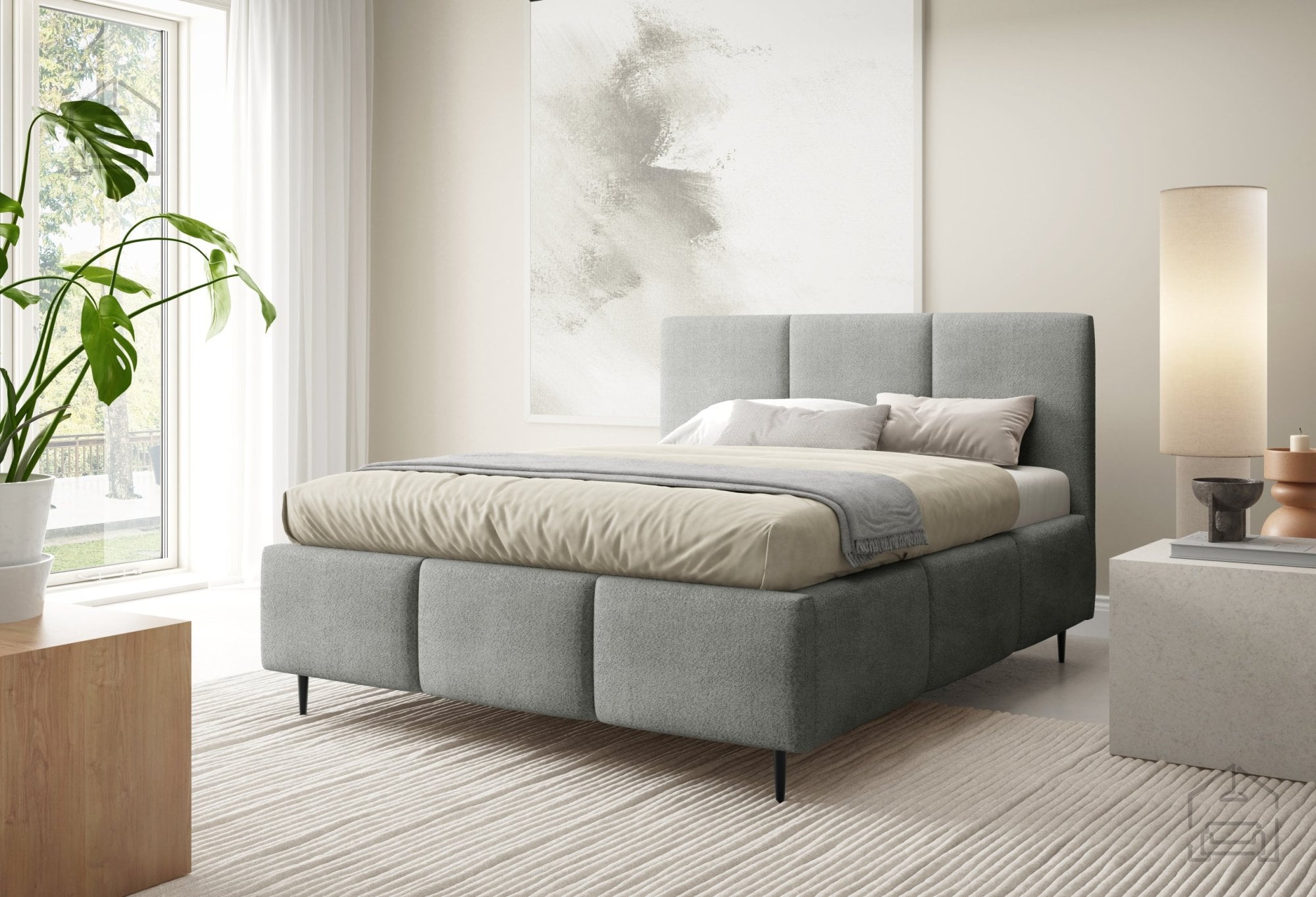 Postelja Velora z nogicami je sodoben kos pohištva, ki združuje funkcionalnost, udobje in estetsko dovršenost. Tapeciran lesen okvir ustvarja občutek topline in domačnosti, črne kovinske noge pa dodajo pridih elegance ter stabilnosti. Zaradi premišljene konstrukcije in kakovostnih materialov je ta postelja primerna za vsakogar, ki išče popolno ravnovesje med videzom in uporabnostjo. Model je bil izdelan v tovarni Meble Gruška na Poljskem, kjer je poudarek na natančni obdelavi in trajnosti vsakega kosa.