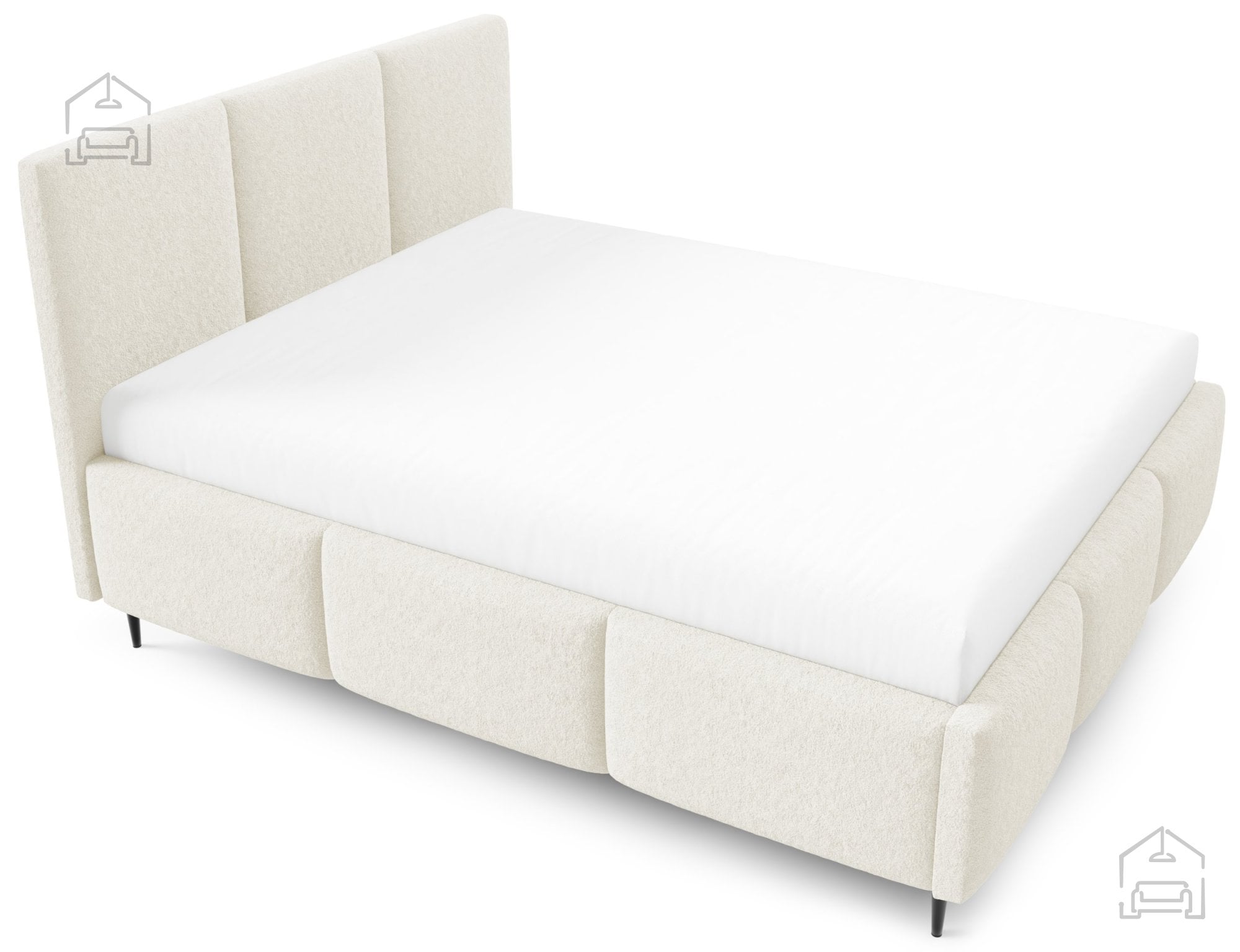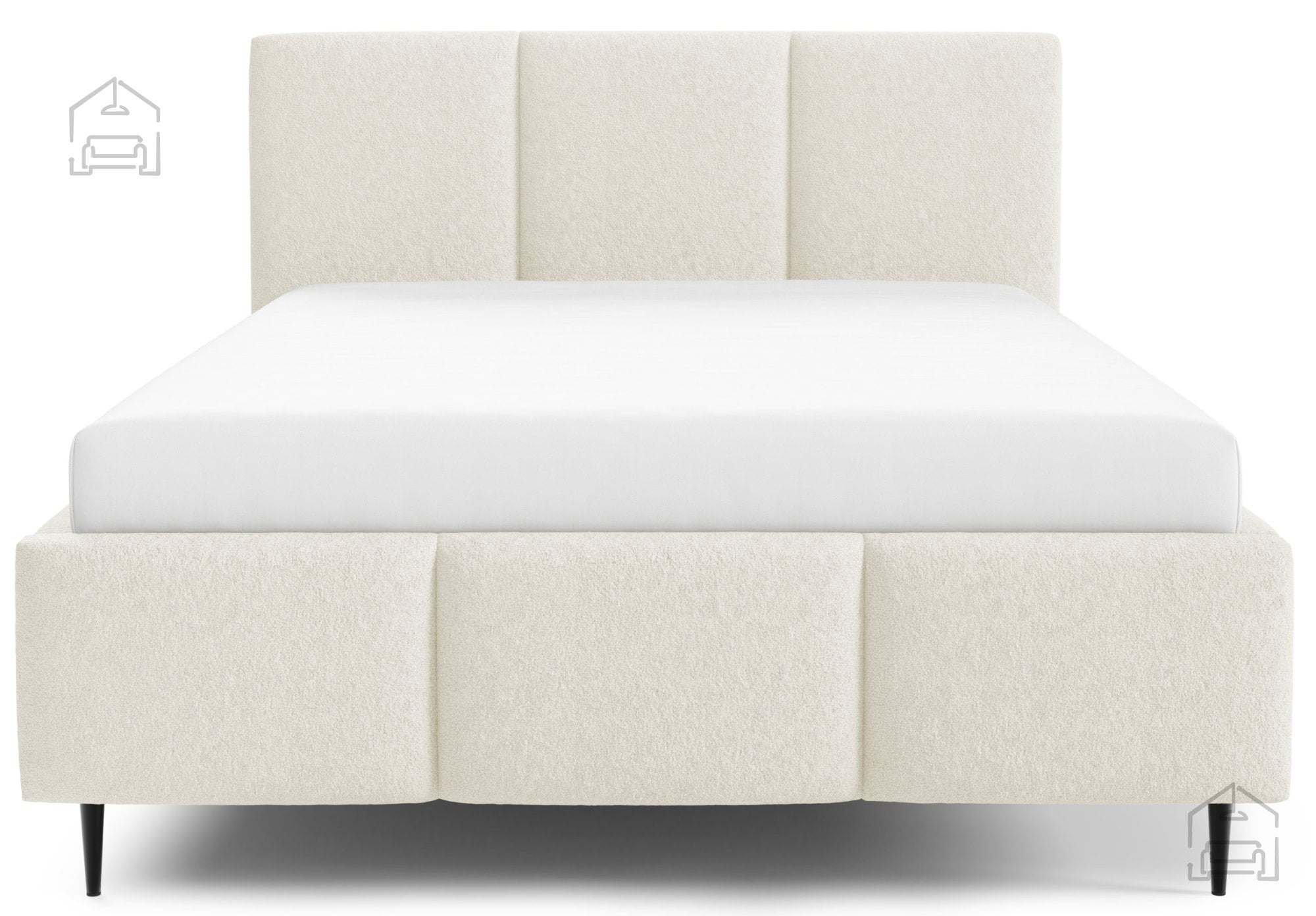 Okvir postelje Velora je izdelan iz lesa in dodatno oblazinjen, kar zagotavlja mehkejši videz in prijeten občutek pri dotiku. Tapecirana površina je na voljo v različnih barvah, kar omogoča, da izdelek prilagodite svojemu notranjemu slogu. Okrasni šivi na oblazinjenju dopolnjujejo celoten videz in poudarjajo ročno izdelavo. V kompletu ležišče ni vključeno, kar omogoča, da si sami izberete želeno trdoto in tip vzmetnice.