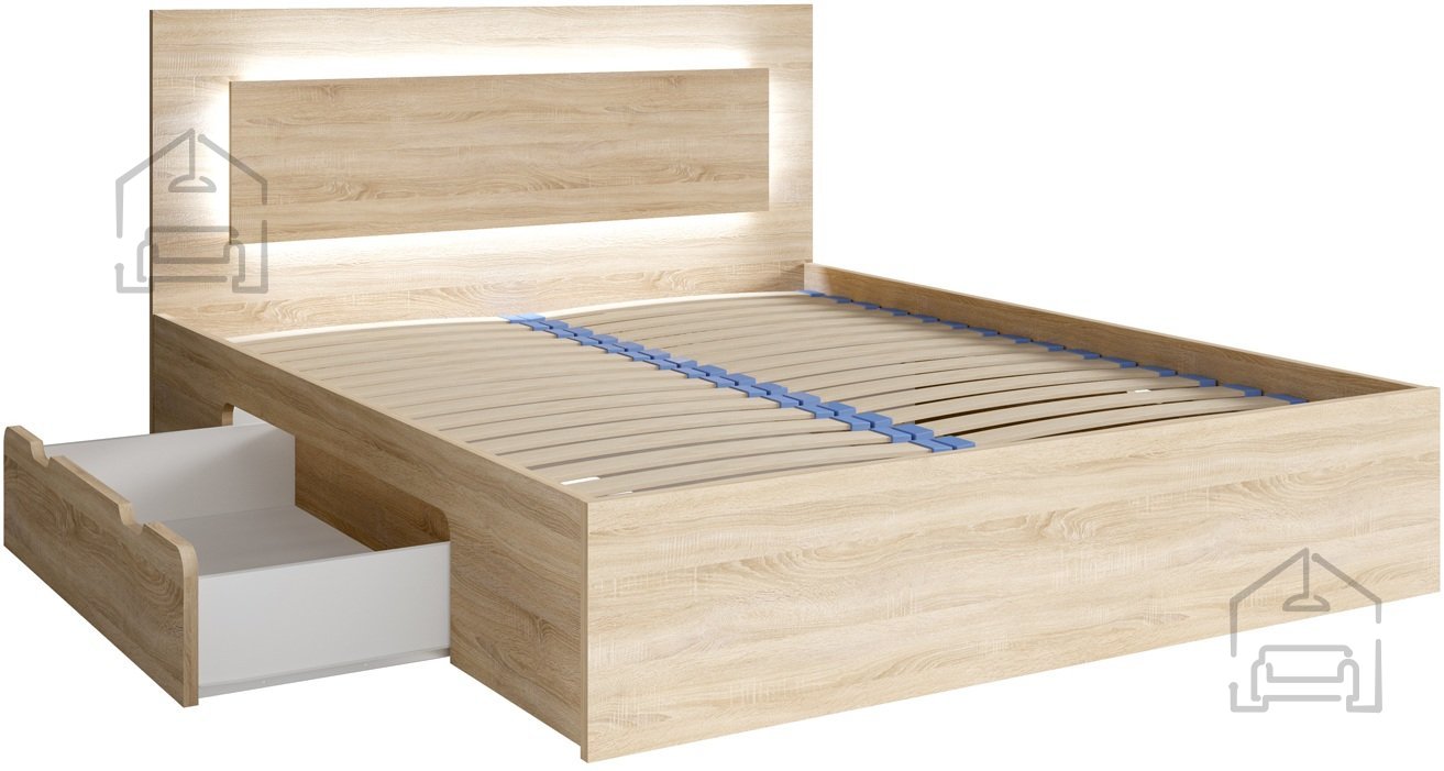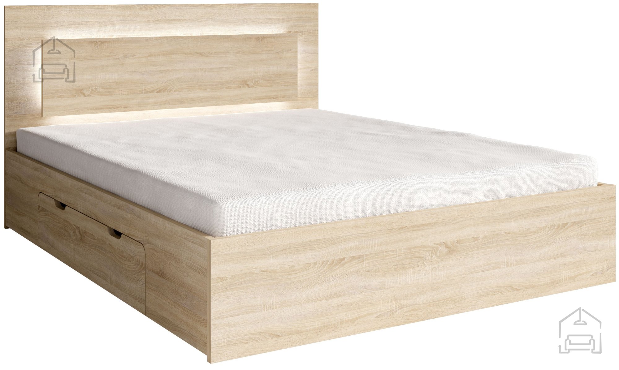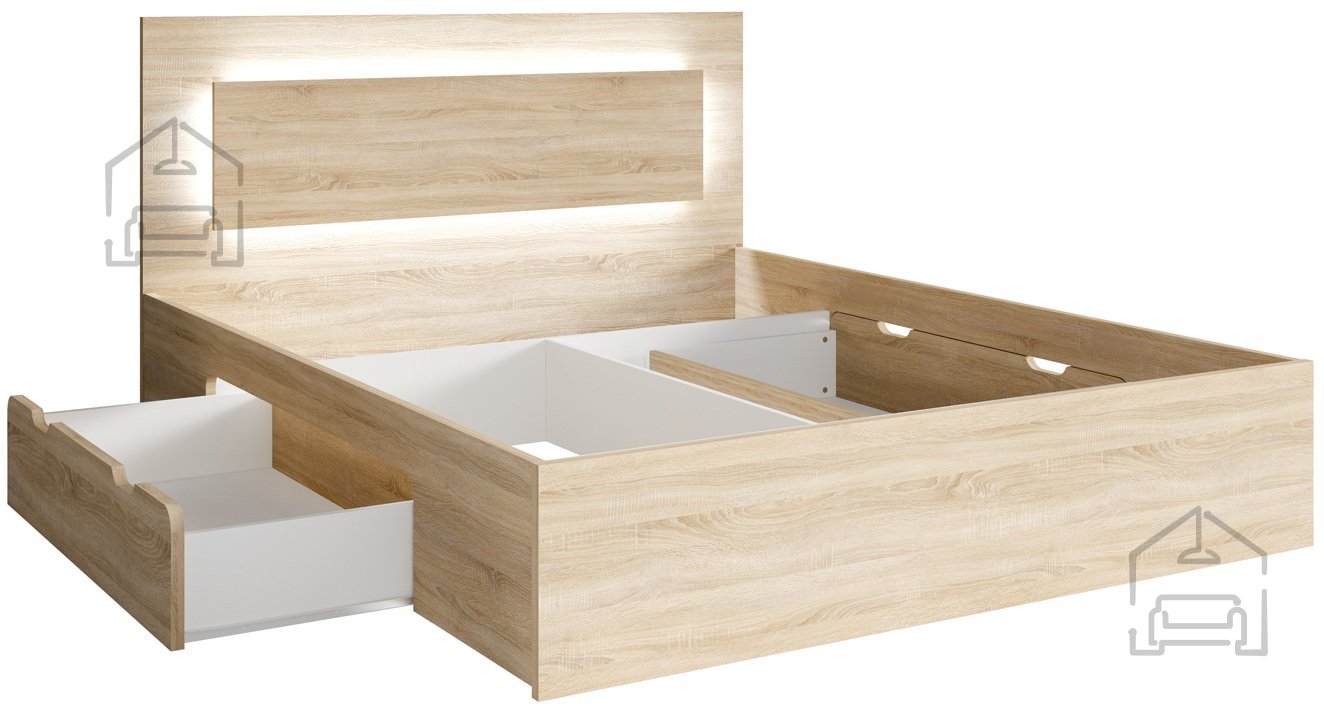 Uporabljena laminirana plošča debeline 16 mm je znana po odpornosti na praske in vlago, kar pomeni, da bo postelja dolgo ohranila svoj prvotni videz. Laminirana površina je enostavna za vzdrževanje – zadostuje redno čiščenje z mehko, rahlo vlažno krpo. Barva sonoma hrast poudari svetlost prostora in omogoča kombiniranje z različnimi teksturami in barvnimi odtenki v spalnici.