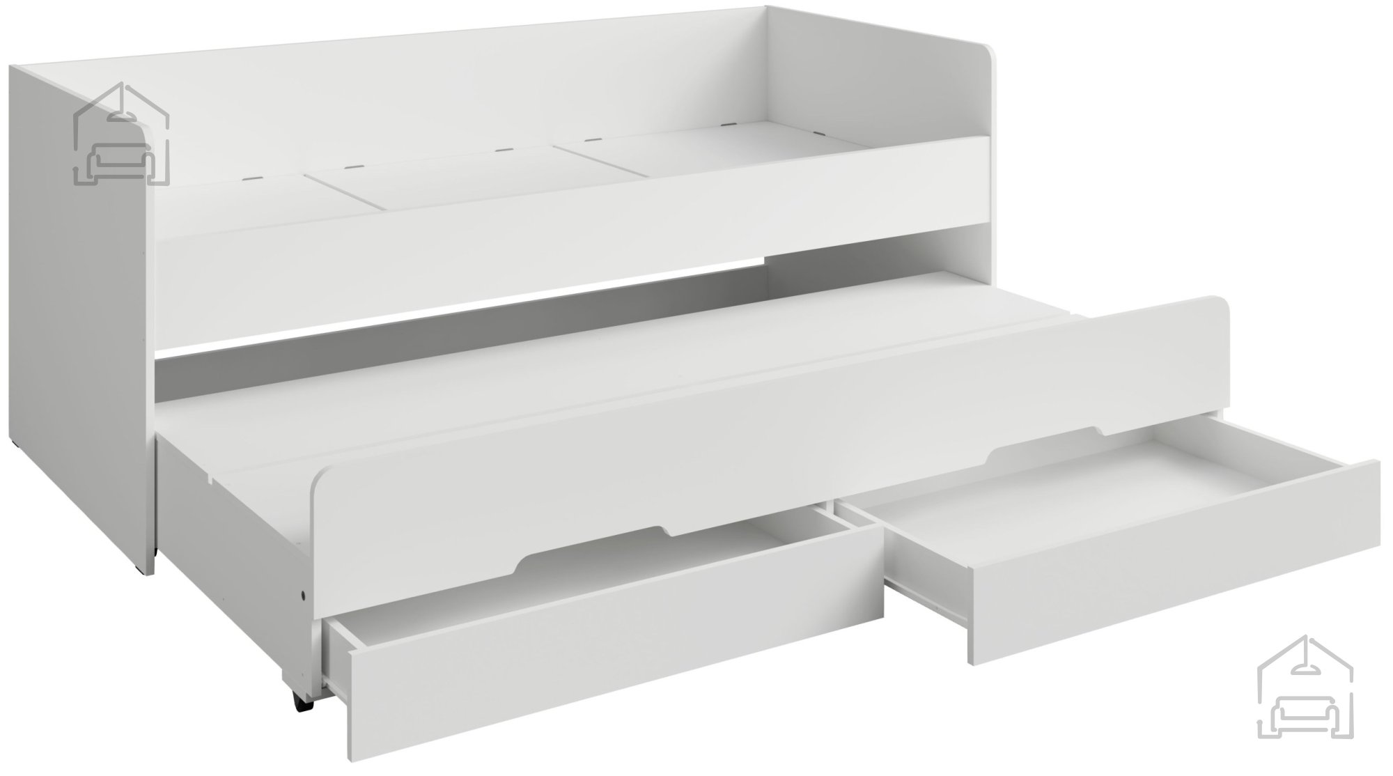 Otroška postelja z dodatnim ležiščem Duo – Meblosiek je praktična izbira za sodobno otroško sobo, kjer se združujeta funkcionalnost in minimalističen videz. Izdelana je iz laminirane plošče debeline 16 mm, kar zagotavlja stabilnost in dolgo življenjsko dobo. Bela barva površine se prilagodi različnim slogom notranje opreme, hkrati pa prostoru doda občutek svežine in svetlobe.