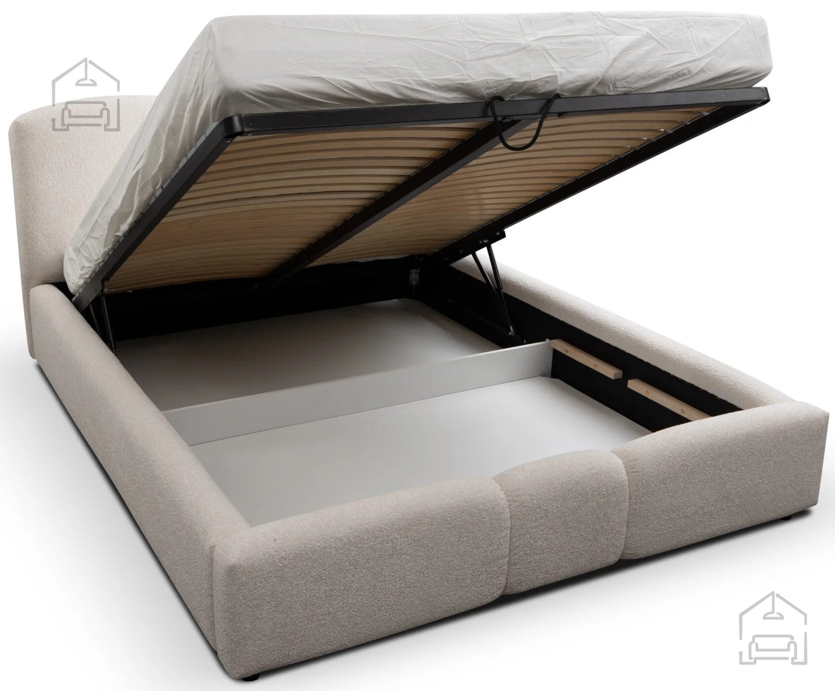 Ena glavnih prednosti postelje Nolio je dvižni mehanizem, ki omogoča enostavno dvigovanje ležalne površine. Pod njo se nahaja prostoren predal za posteljnino, kamor lahko shranite odeje, blazine ali sezonsko posteljnino. Ta rešitev omogoča maksimalen izkoristek prostora, ne da bi pri tem ogrozili estetiko ali udobje. Mehanizem je zasnovan tako, da dvigovanje poteka gladko in brez napora, kar pomeni, da lahko tudi vsakodnevno shranjevanje poteka hitro in enostavno.