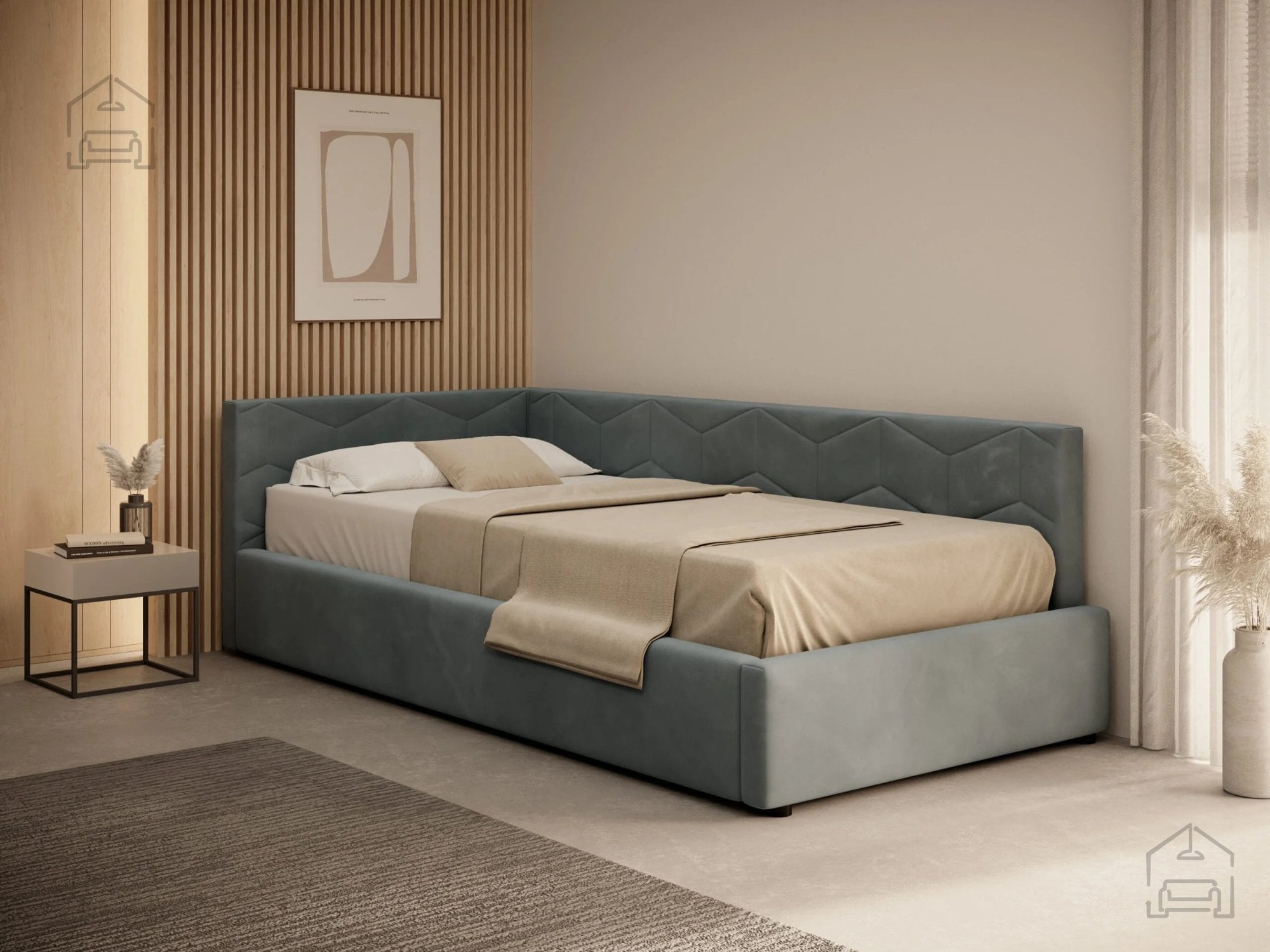 Postelja je izdelana v tovarni Pionier na Poljskem, kjer združujejo sodobne proizvodne procese z dolgoletnimi izkušnjami v izdelavi oblazinjenega pohištva. Konstrukcija vključuje kombinacijo visoko elastične pene, PUR pene, lesa in kakovostne tkanine. Ta kombinacija zagotavlja stabilnost, udobje in dolgo življenjsko dobo izdelka. Leseni elementi tvorijo trden okvir, medtem ko mehkejši materiali poskrbijo za prijeten občutek ob vsakodnevni uporabi.