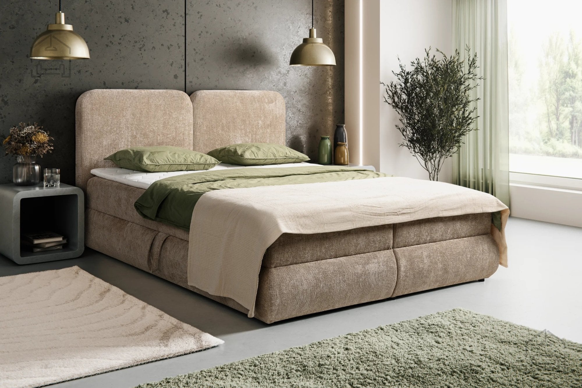 Boxspring postelja Runo – Pionier torej združuje kakovostno konstrukcijo, premišljeno funkcionalnost in sodoben dizajn v enem. Zasnovana je za tiste, ki želijo, da njihova spalnica postane prostor počitka, reda in estetike.