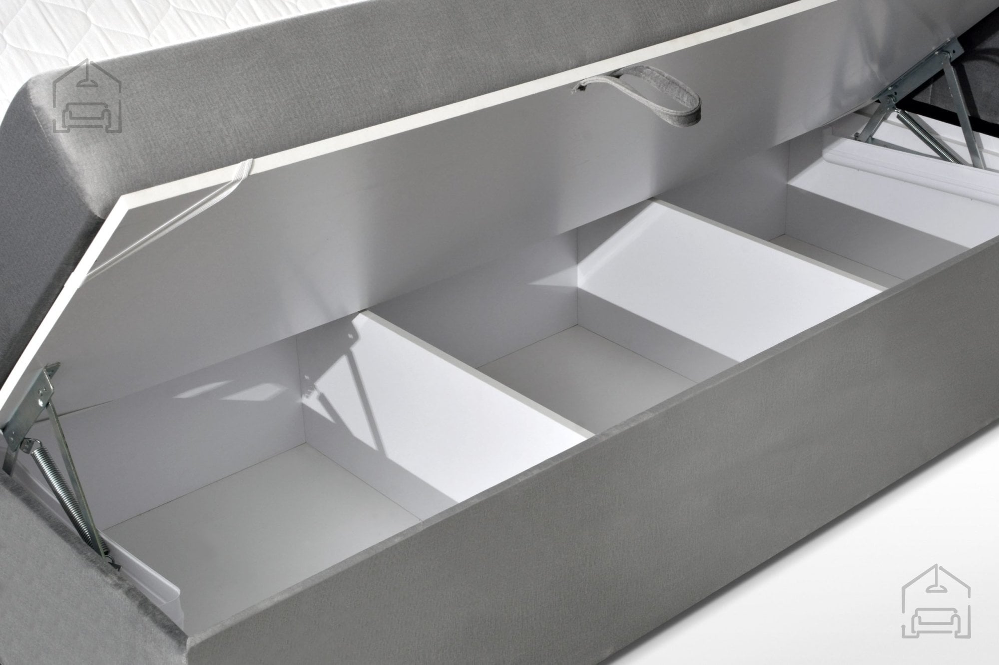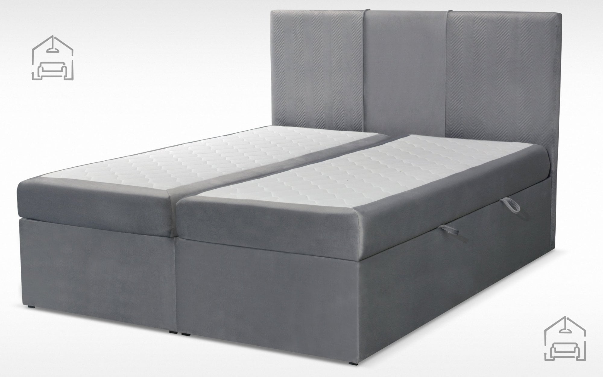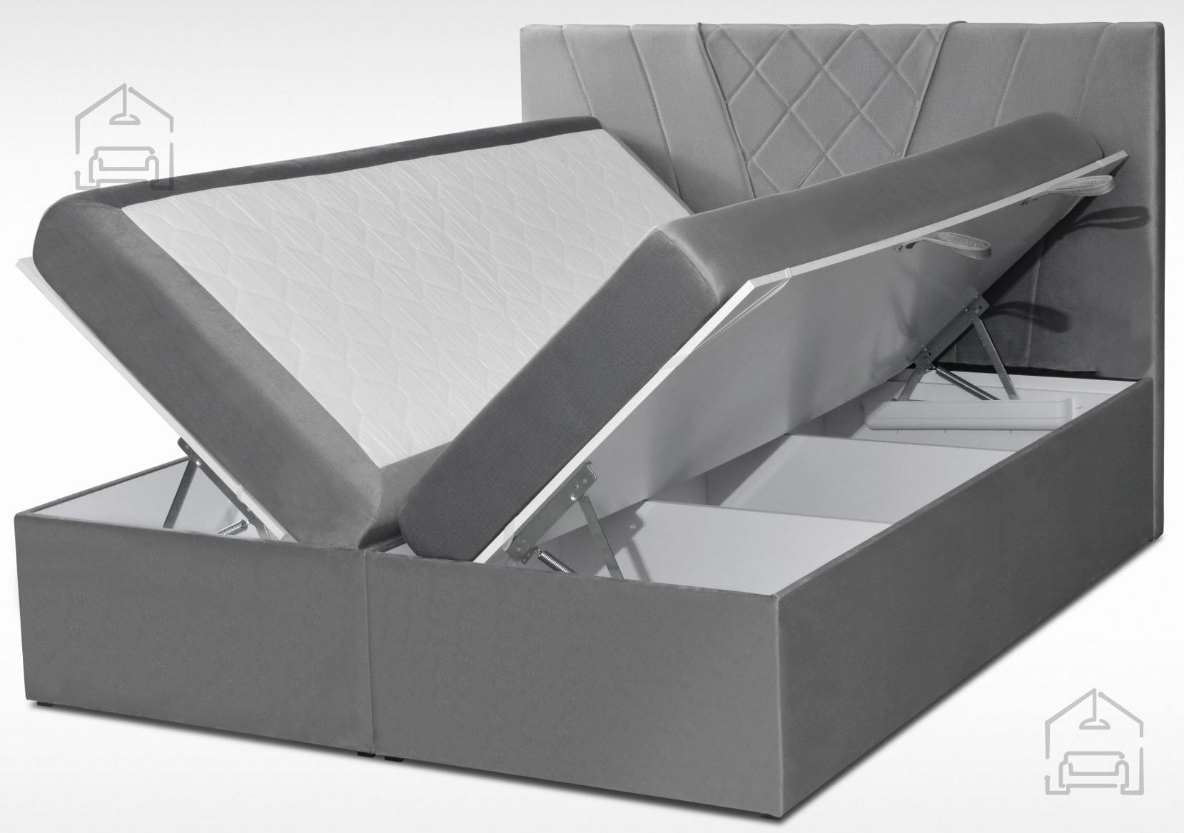Boxspring postelja Velvet je zasnovana z mislijo na vsakodnevno uporabo. Iveralni okvir zagotavlja trdnost in stabilnost, hkrati pa ohranja estetsko dovršen videz. Dvižni mehanizem omogoča, da se prostor pod ležiščem učinkovito izkoristi, kar pomeni več reda in manj potrebe po dodatnih omarah ali skrinjah.
