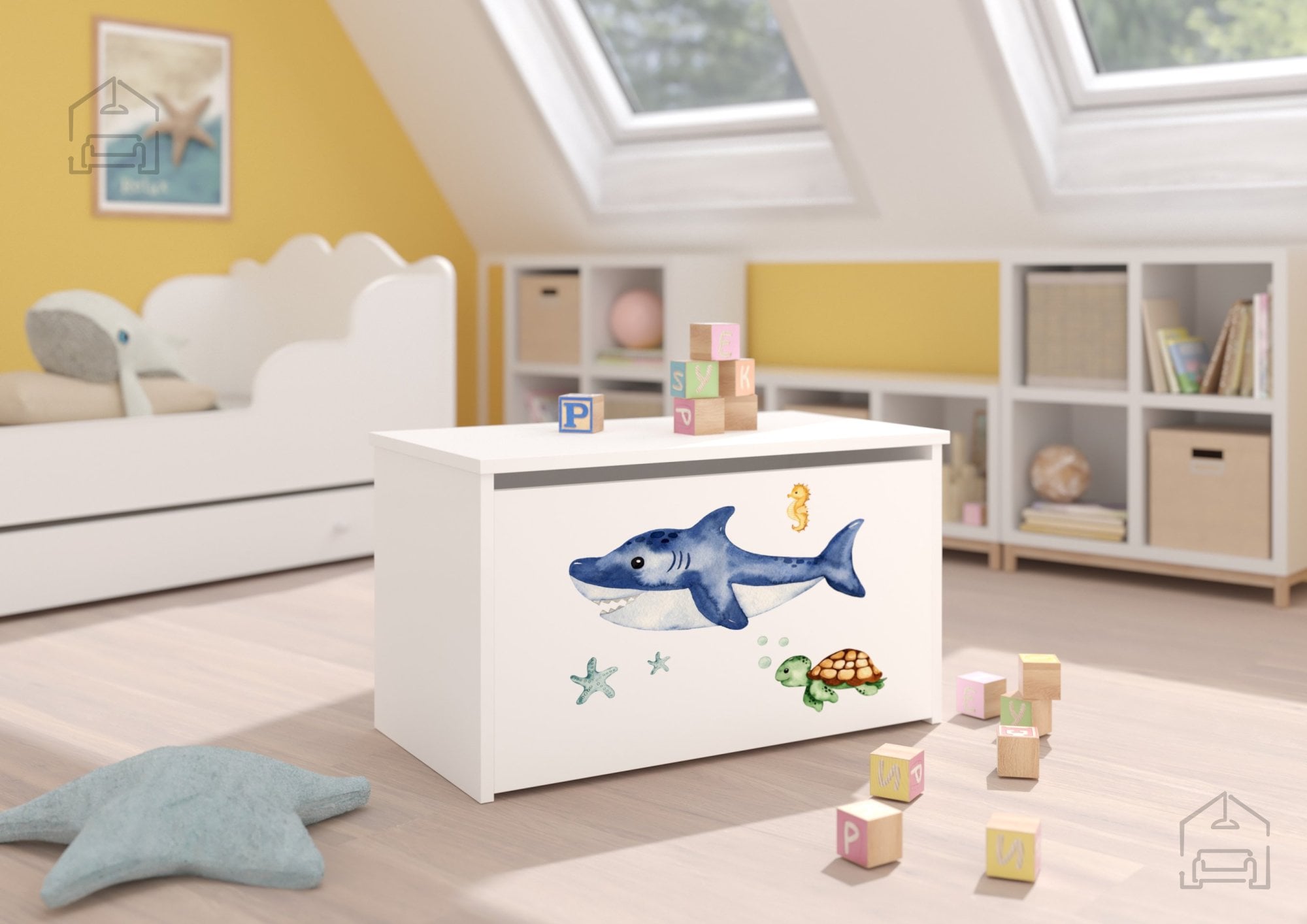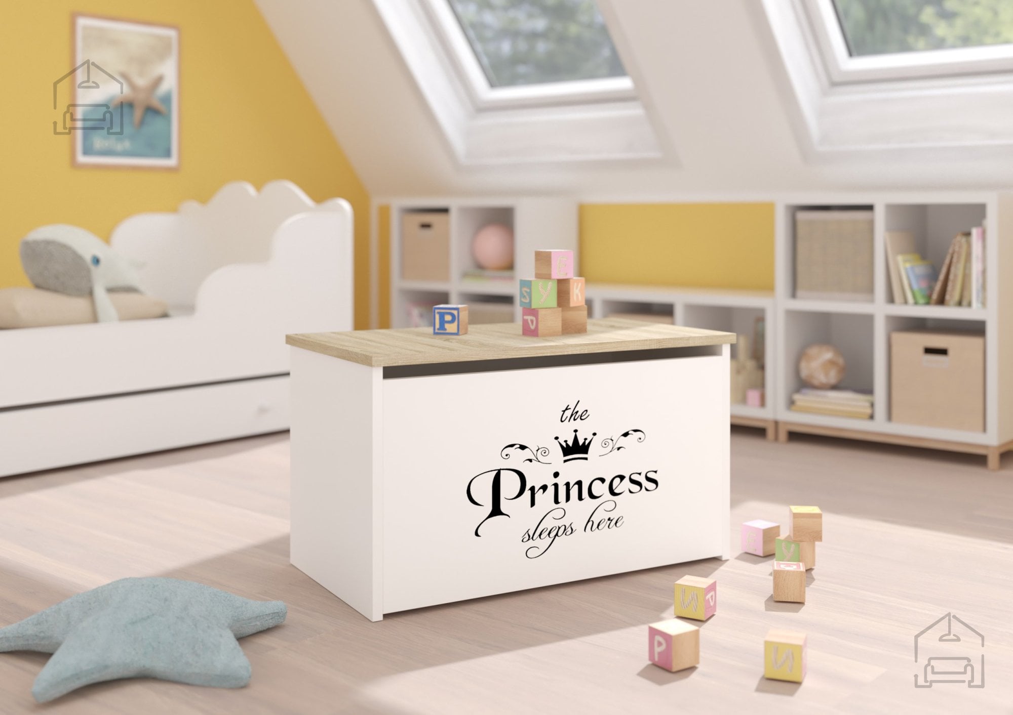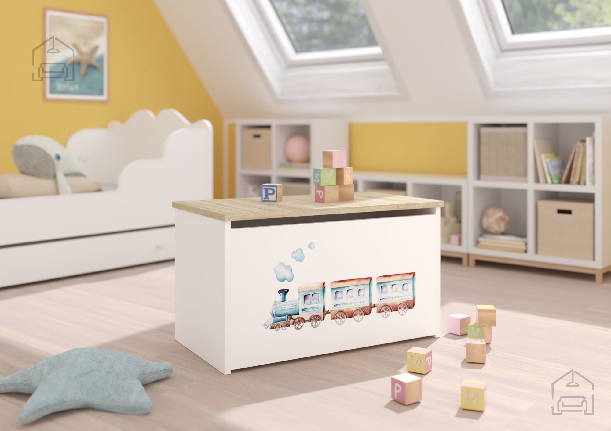 Škatla Daria je zasnovana z mislijo na sodobne družine, ki si želijo kombinacijo funkcionalnosti in estetskega videza. Na voljo je v več barvnih različicah – bela, bela + hrast in bela z različnimi vzorci – zato jo je mogoče preprosto uskladiti z različnimi slogovnimi smernicami notranje opreme. Nevtralna bela barva prinaša občutek čistoče in svežine, kombinacija z odtenki hrasta pa doda pridih naravnega toplinskega ravnovesja, ki se lepo poda tako v minimalistične kot v bolj igrive interierje. Model z vzorci prinaša dodatno igrivost, zato je še posebej primeren za otroške sobe, kjer želimo spodbuditi domišljijo in veselje do igre.