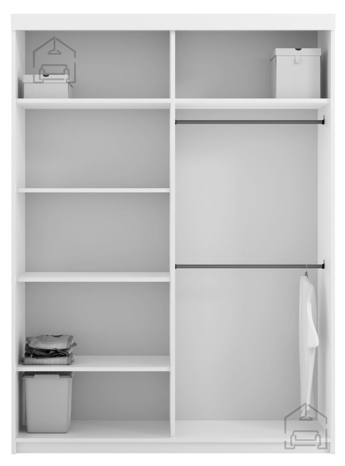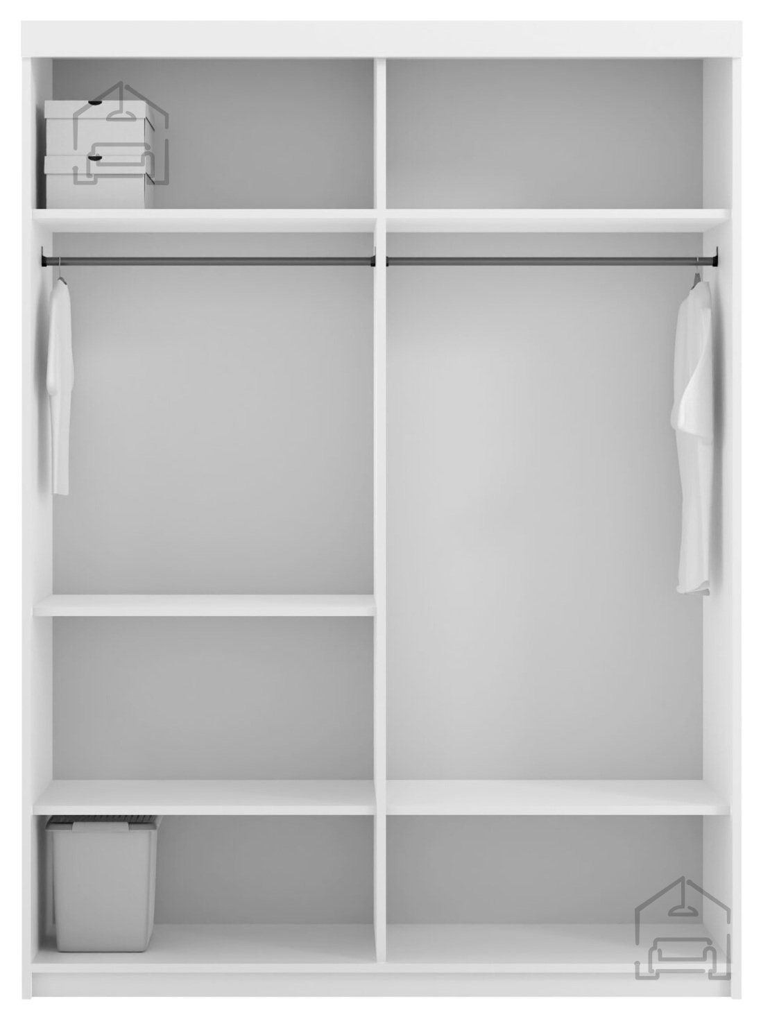 Notranjost omare Marika 180 je premišljeno zasnovana za maksimalno organizacijo. Omara nudi bogat shranjevalni prostor, ki ga je mogoče prilagoditi lastnim potrebam. Police omogočajo zloženo shranjevanje puloverjev, posteljnine ali dodatkov, medtem ko viseči del zagotavlja dovolj prostora za oblačila, ki jih želite ohraniti brez gub. Zaradi pregledne notranjosti boste imeli vedno dober pregled nad vsebino, kar olajša vsakodnevno izbiro oblačil in ohranja red v prostoru.