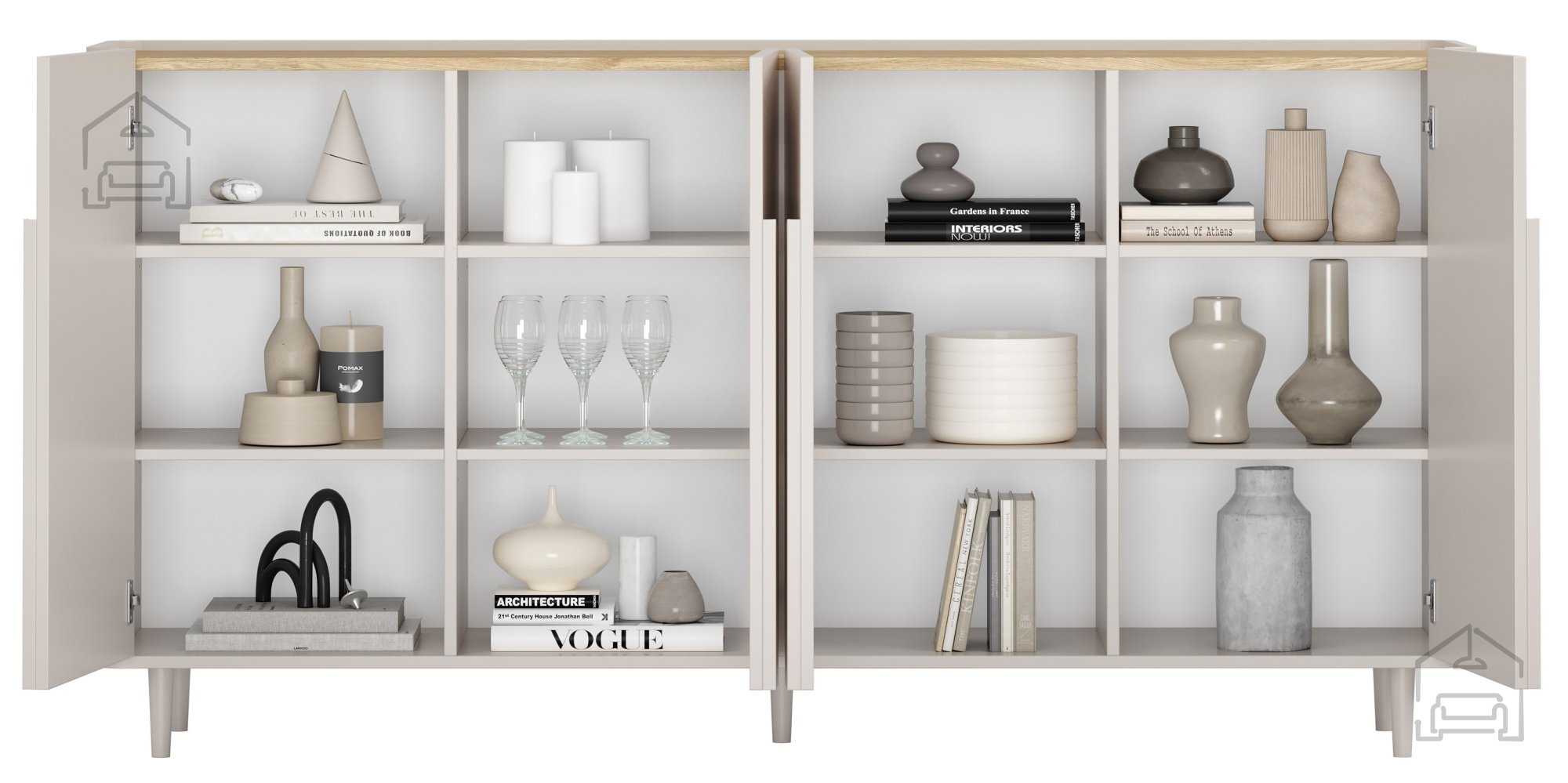Komoda Amilio 200 4D znamke Bogart je prefinjen kos pohištva, ki združuje eleganco kašmirja z naravno toplino oljenega hrasta. Njena uravnotežena barvna kombinacija ustvarja harmoničen kontrast, ki se popolno prilega sodobnim in klasičnim notranjim slogom. Zasnovana je tako, da ponuja veliko prostora za shranjevanje, hkrati pa ohranja lahkotno, minimalistično estetiko. Komoda je primerna za dnevno sobo, spalnico, jedilnico ali domačo pisarno, kjer postane praktičen in dekorativen element prostora.