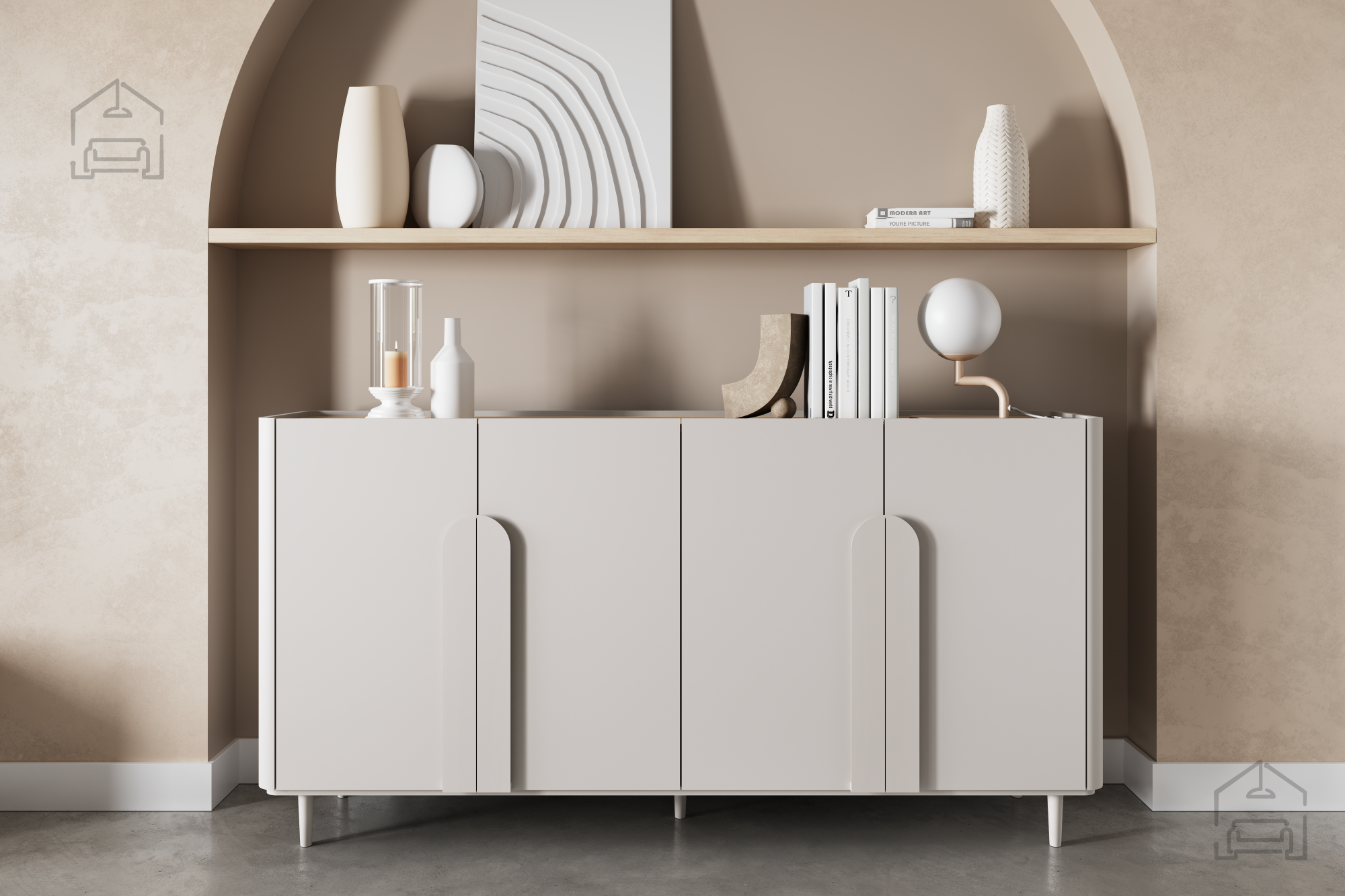 Slog komode je opisan kot moderna klasika s pridihom skandinavske in minimalistične estetike. Zaradi svoje umirjene barvne palete in čistih linij se brez težav vključi v različne notranje koncepte. V modernem prostoru dopolnjuje svetle površine in kovinske dodatke, v skandinavskem pa se ujema z naravnimi materiali, svetlim lesom in tekstilom v sivih ali bež tonih. V minimalistično zasnovanih interierjih deluje kot eleganten poudarek, ki ne prevzame pozornosti, temveč jo subtilno dopolni.