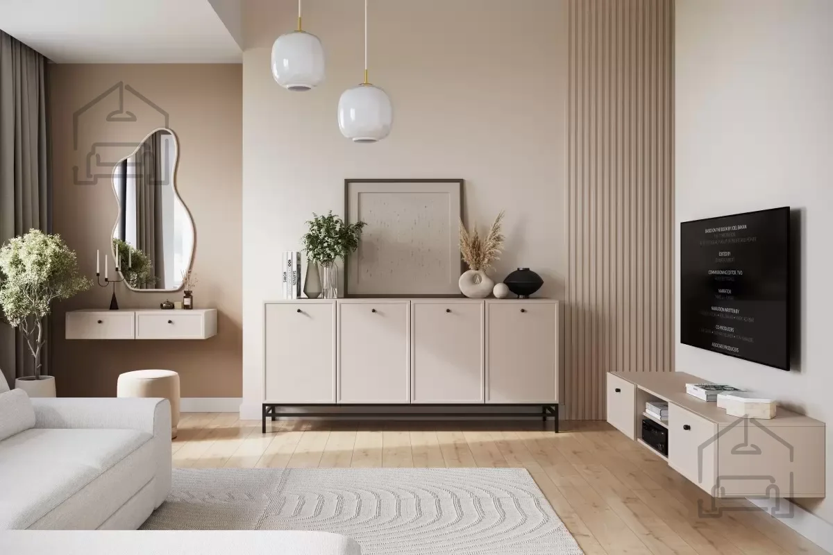 Elegantna in sodobna kombinacija elementov za dnevni prostor in spalnico Lorini predstavlja uravnoteženo povezavo med toplino barve kašmir in funkcionalnostjo sodobnega pohištva. Kolekcija je zasnovana tako, da ponuja minimalističen videz brez nogic – vsi elementi so viseči, kar ustvarja občutek lahkotnosti in prostornosti. Izdelana je v tovarni Bogart na Poljskem, znani po natančni obdelavi lesa in kakovostnih površinskih zaključkih.