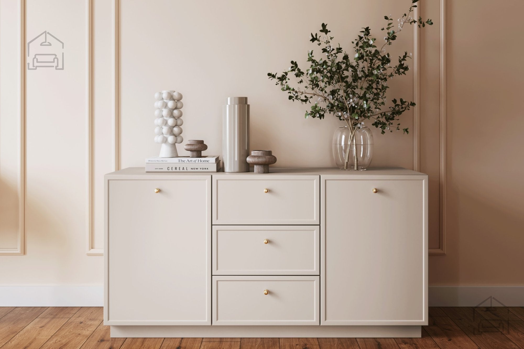 Komoda na čoklu Lorini – Bogart je idealna izbira za vse, ki želijo združiti preprost dizajn, kakovostno izdelavo in brezčasno estetiko. S svojo nevtralno barvo, čistimi linijami in premišljenimi detajli dopolnjuje tako klasično kot sodobno opremo doma. Ne glede na to, ali jo postavite v dnevni prostor, spalnico ali predsobo, bo komoda Lorini poskrbela za urejen videz in harmonično vzdušje v prostoru.