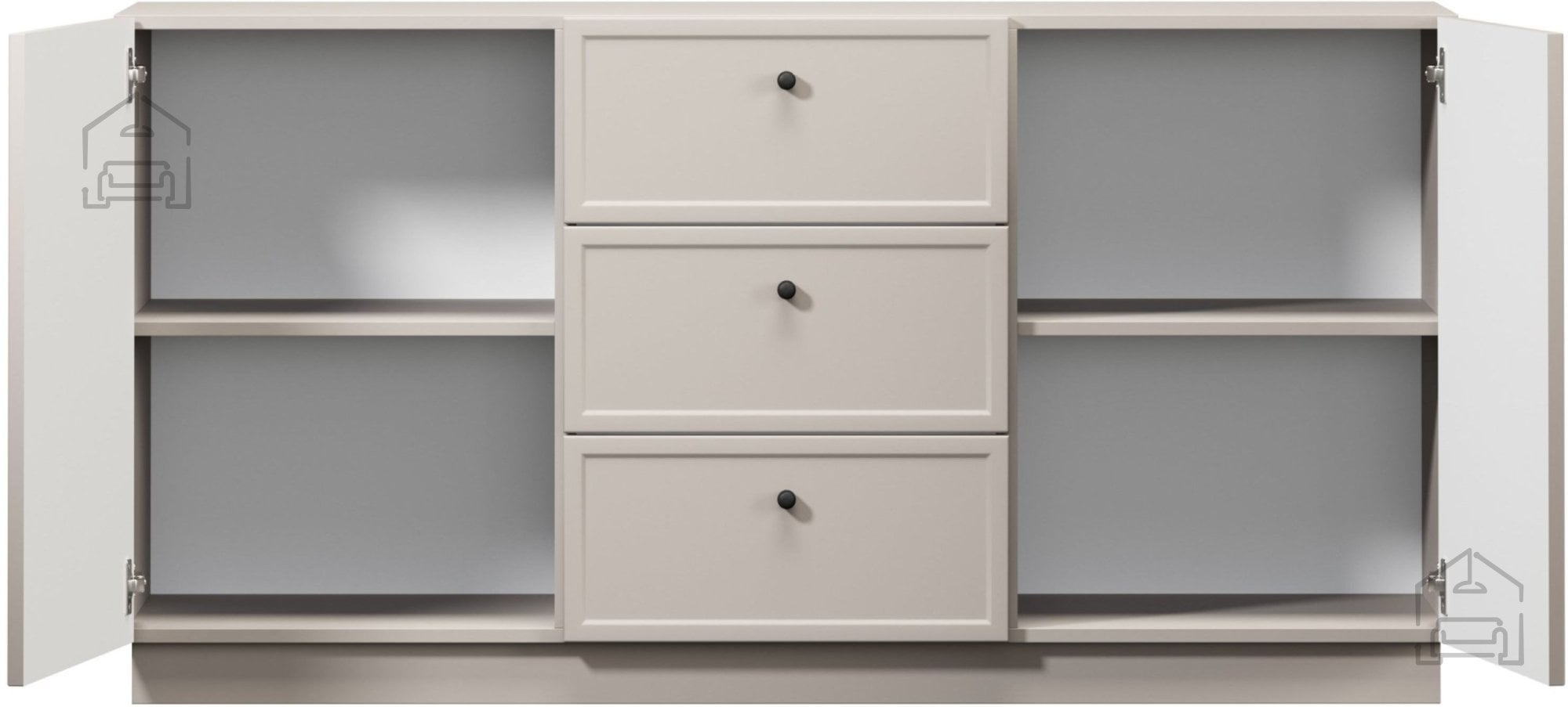 Barva kašmir spada med sodobne in nevtralne tone, ki se lepo ujemajo z različnimi barvnimi shemami v interierju. Površina komode ima enakomeren mat učinek, brez nepotrebnih vzorcev ali tekstur, kar poudarja minimalističen značaj kolekcije Lorini. Komoda daje prostoru občutek svetlobe in prostornosti, zato je posebej primerna za manjše prostore ali prostore, kjer želite ustvariti mirno, uravnoteženo atmosfero.
