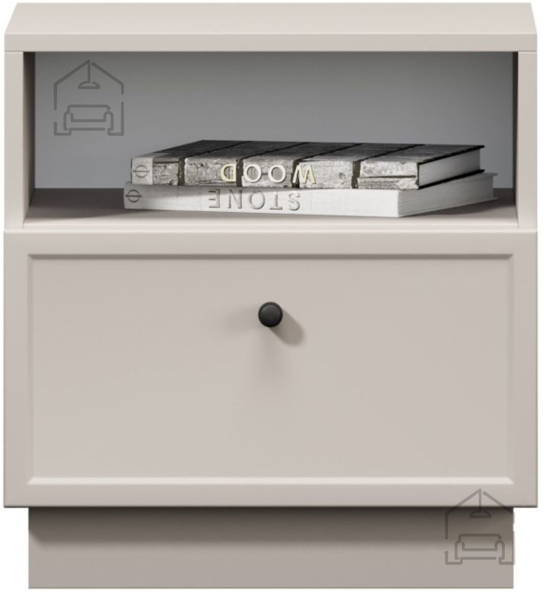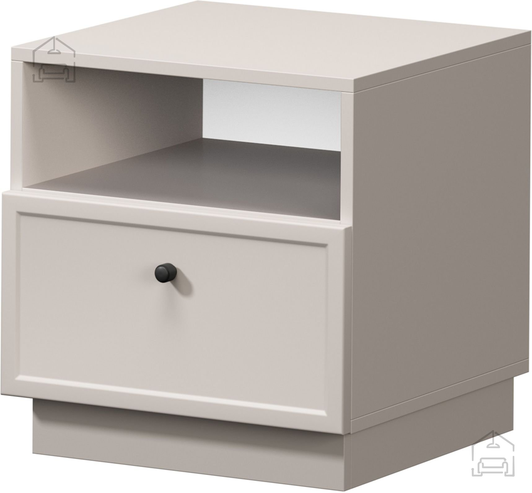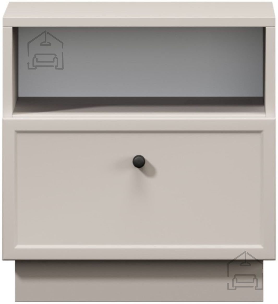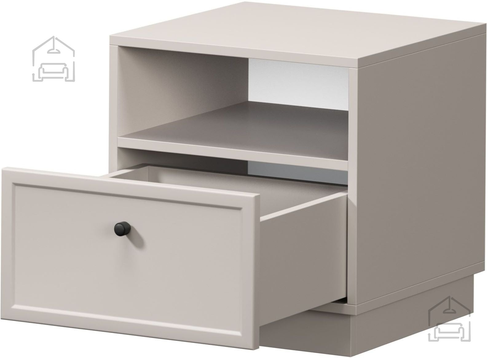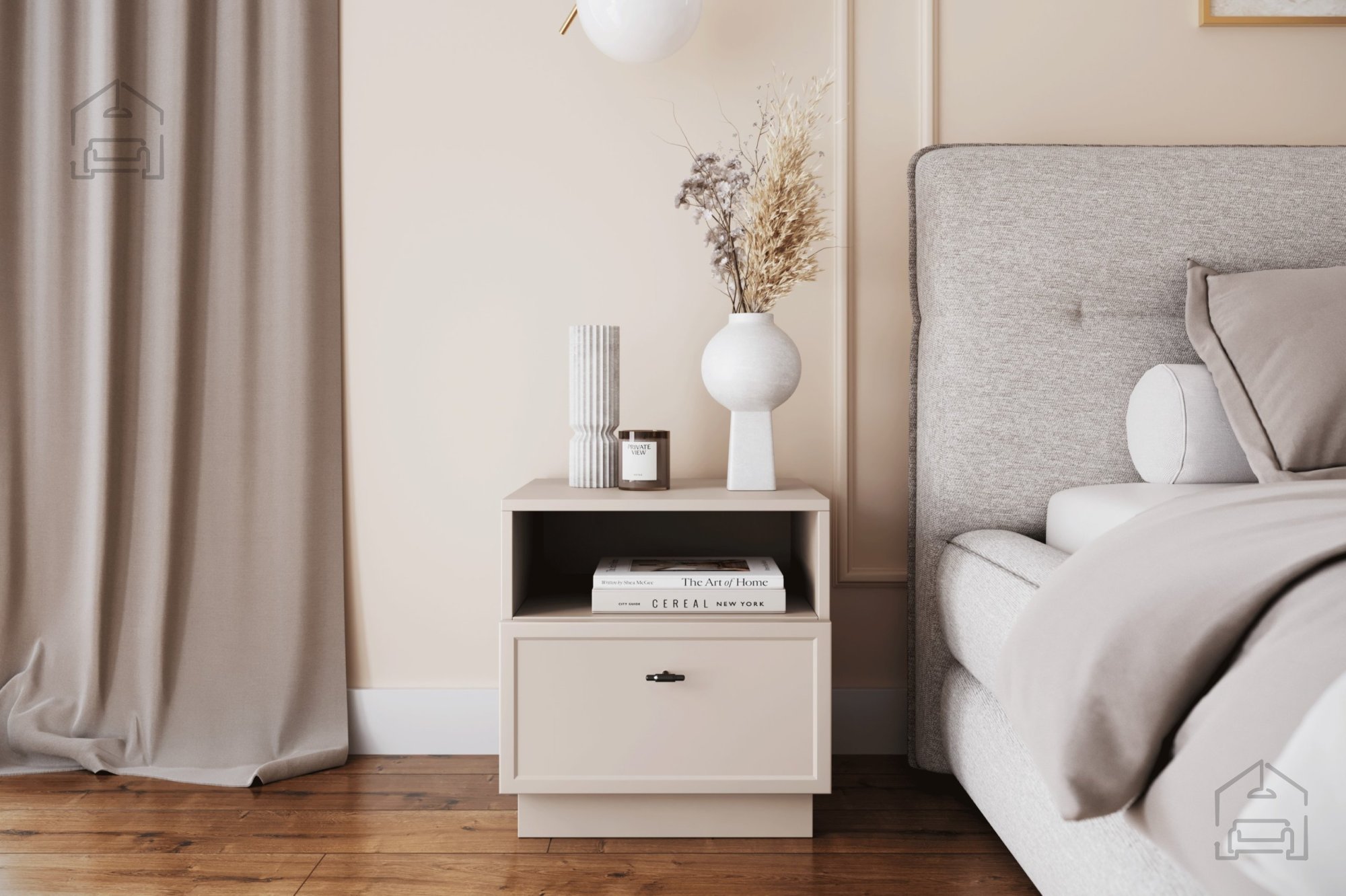 Nočna omarica Lorini je zasnovana kot del celovite linije pohištva, ki se lahko vizualno ujema z drugimi elementi kolekcije. Z izborom barve kašmir in kovinskih ročajev se lepo poveže z lesenimi ali svetlimi toni pohištva. Njena diskretna oblika omogoča, da ne prevlada nad preostalo opremo, temveč jo dopolnjuje s subtilno eleganco. Omarica je primerna tako za sodobne minimalistične interierje kot za tople, klasične spalnice.