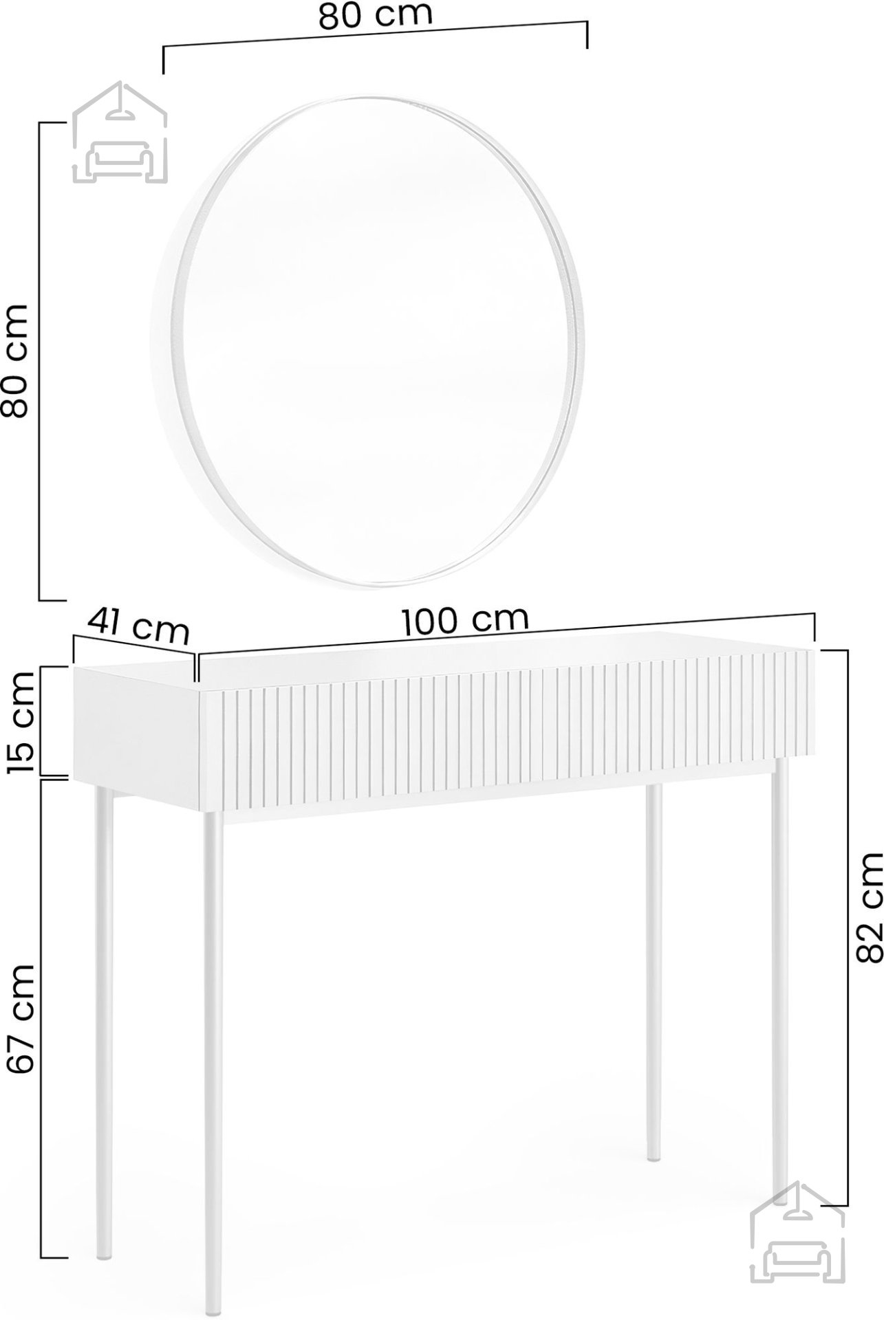 Miza za ličenje z ogledalom Nicole 80 cm – Bogart je več kot le kos pohištva; je kombinacija elegance, uporabnosti in kakovosti, zasnovana za vsakogar, ki želi svoj prostor spremeniti v prijeten in urejen lepotni kotiček. Njena minimalistična oblika, skrbno izbrani materiali in funkcionalne rešitve ustvarjajo popolno ravnovesje med estetiko in praktičnostjo, primerno za vsak sodoben dom.