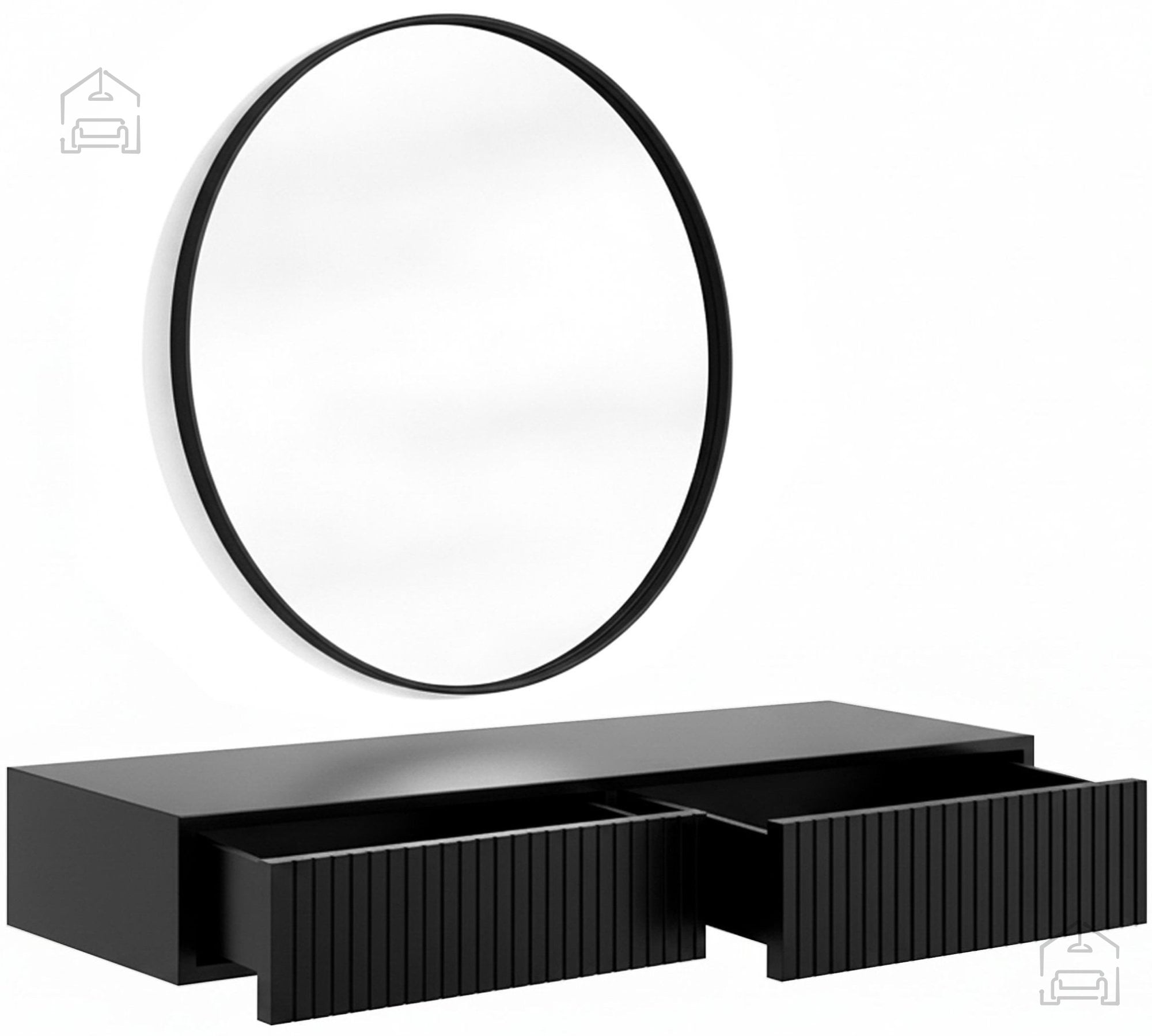 Če iščete stensko mizo za ličenje, ki združuje eleganco, funkcionalnost in kakovostno izdelavo, je Nicole 60 cm – Bogart odlična izbira. Njen mat črni videz, vertikalno rebraste fronte in premišljena zasnova bodo vašemu prostoru dodali sofisticiran značaj, hkrati pa bo vsakodnevno urejanje prijetnejše in bolj organizirano.