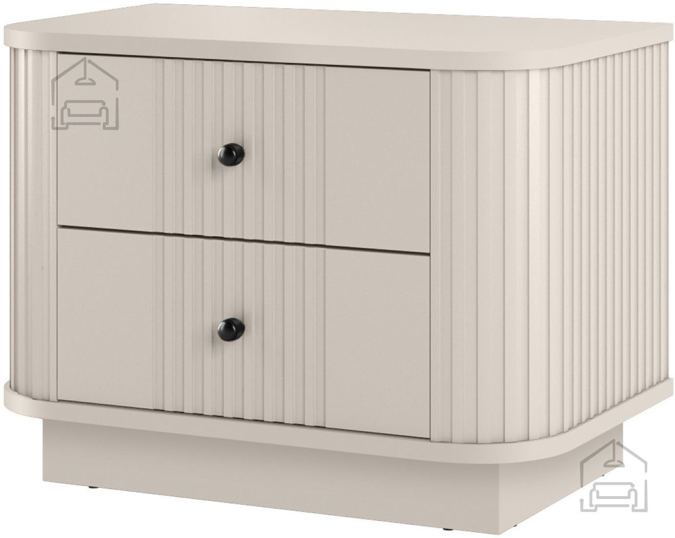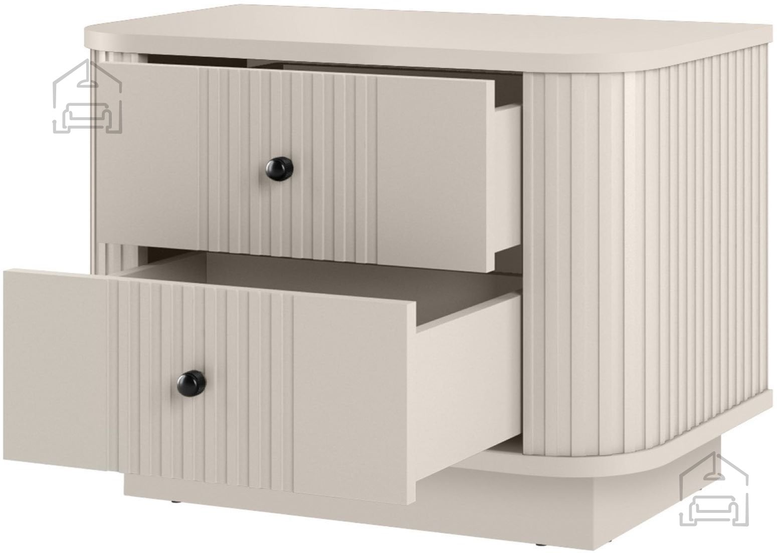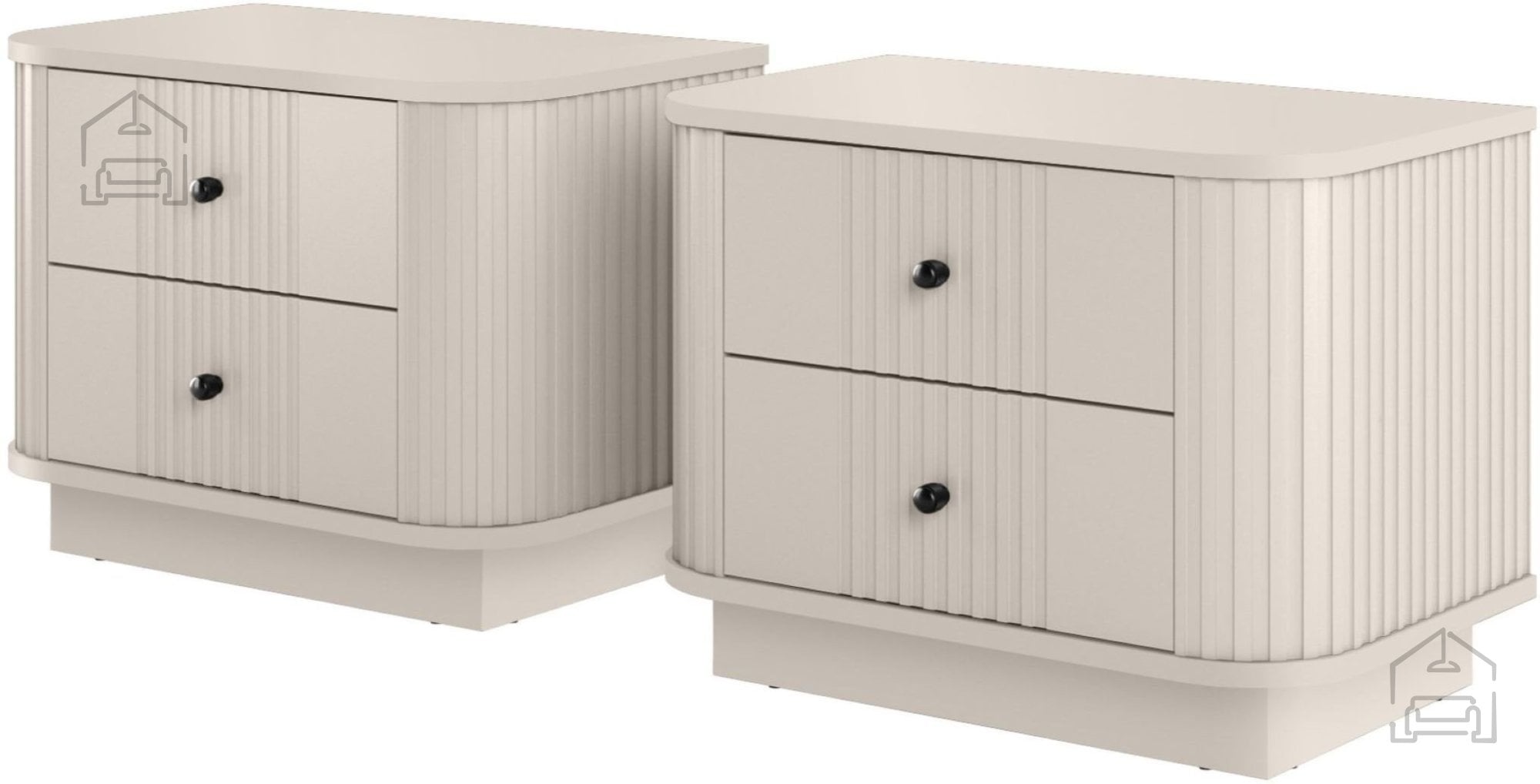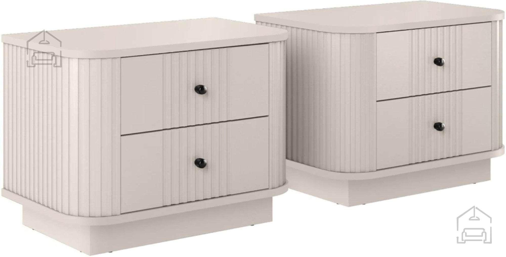Komplet nočnih omaric Vesper v barvi kašmir predstavlja sodoben pristop k opremi spalnice, kjer se toplina barv združi z minimalistično obliko. Izdelan je v tovarni Bogart na Poljskem in odraža kakovostno evropsko izdelavo. Omarici sta oblikovani z mislijo na vsakodnevno udobje, z mehkim zapiranjem predalov in premišljeno višino, ki se ujema z večino posteljnih okvirjev.