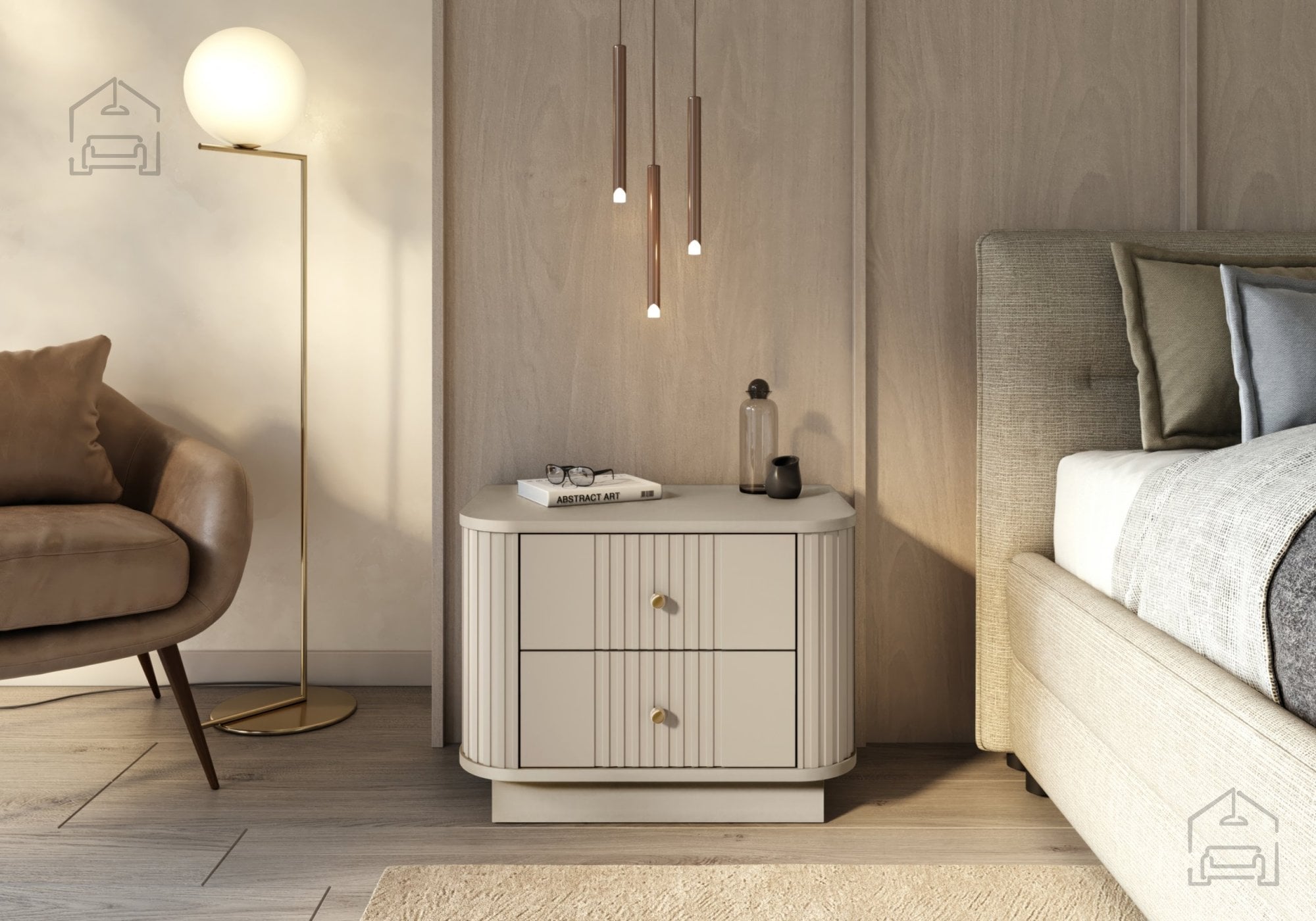 Ta komplet je odlična izbira za vse, ki iščejo ravnotežje med estetiko in praktičnostjo. Zaradi univerzalne barve in brezčasne oblike se lepo dopolnjuje z različnimi posteljami in dekorjem. Primeren je tako za moderne stanovanjske interierje kot tudi za klasične spalnice, kjer prevladujejo mehki toni in naravni materiali.