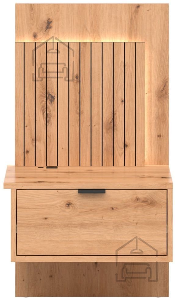 Model je zasnovan z mislijo na funkcionalnost – prostoren predal in odprta polica omogočata priročno shranjevanje knjig, očal, polnilcev ali drugih nujnih predmetov, ki jih radi imate pri roki. Zaradi svoje ergonomske višine (52,5 cm) se idealno ujema z večino posteljnih okvirjev, kar dodatno povečuje udobje in uporabnost.