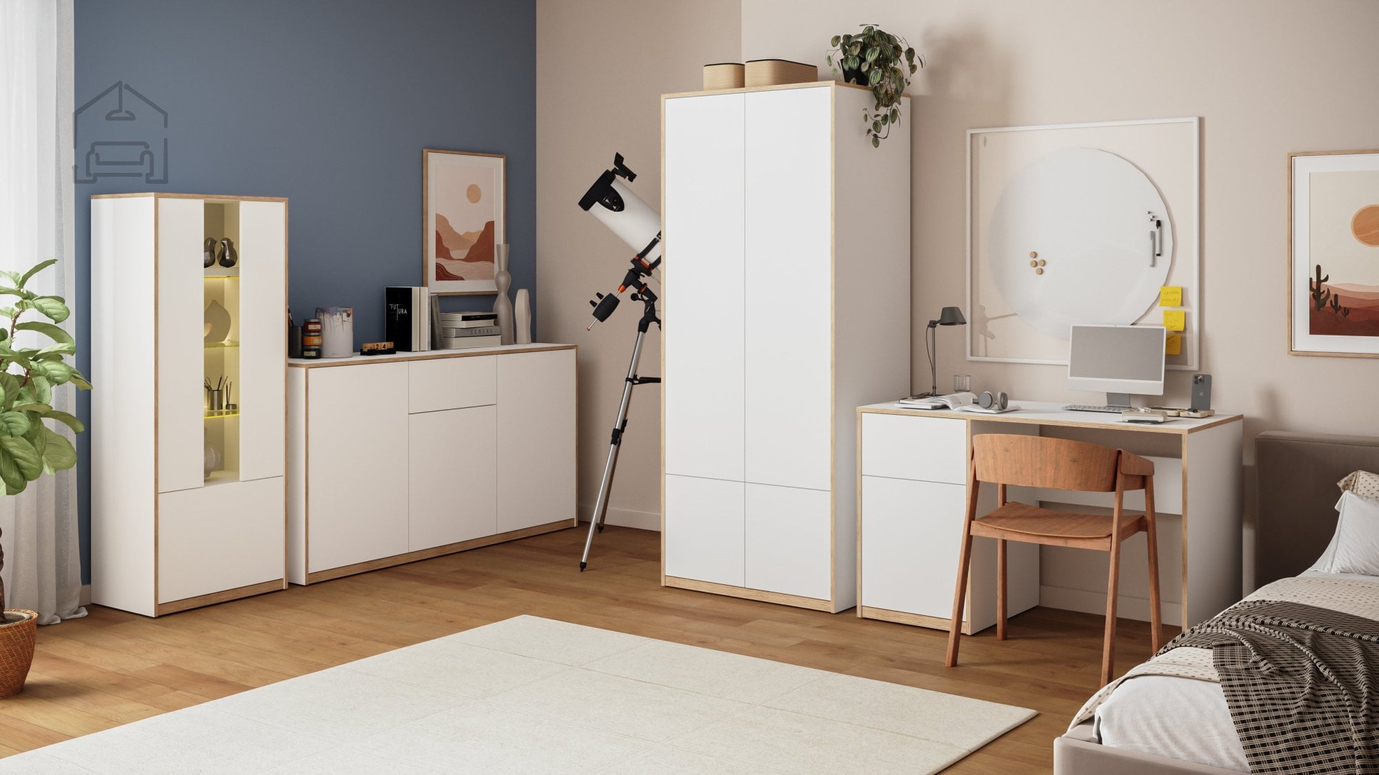 Kolekcija je zasnovana tako, da omogoča modularno postavitev v različnih prostorih. Posamezne enote se lahko kombinirajo po želji, kar omogoča oblikovanje popolne dnevne sobe ali spalnice glede na razpoložljiv prostor. Z enotnim vizualnim slogom in harmoničnimi proporcijami bo vsak prostor izgledal urejeno, svetlo in prijetno.