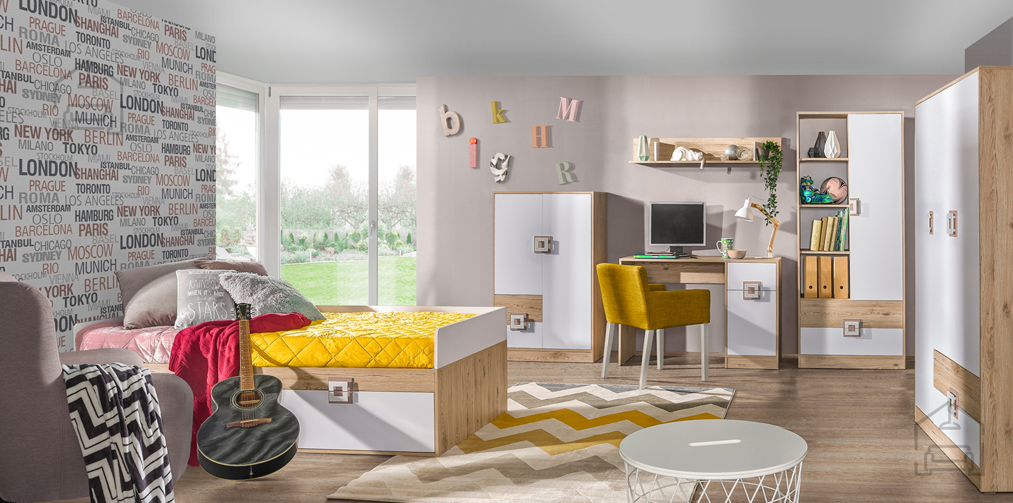 Barva hrast prinaša toplino in občutek naravnosti, bela pa svetlobo in vizualno čistost. Skupaj ustvarjata harmonično celoto, ki deluje sodobno, a hkrati brezčasno. Ta kombinacija omogoča, da se komoda enostavno prilagodi različnim slogom notranje opreme – od rustikalnega do modernega minimalizma. Površine v barvi hrasta poudarjajo naravno zrnatost, medtem ko beli elementi dodajajo svežino in zračnost.