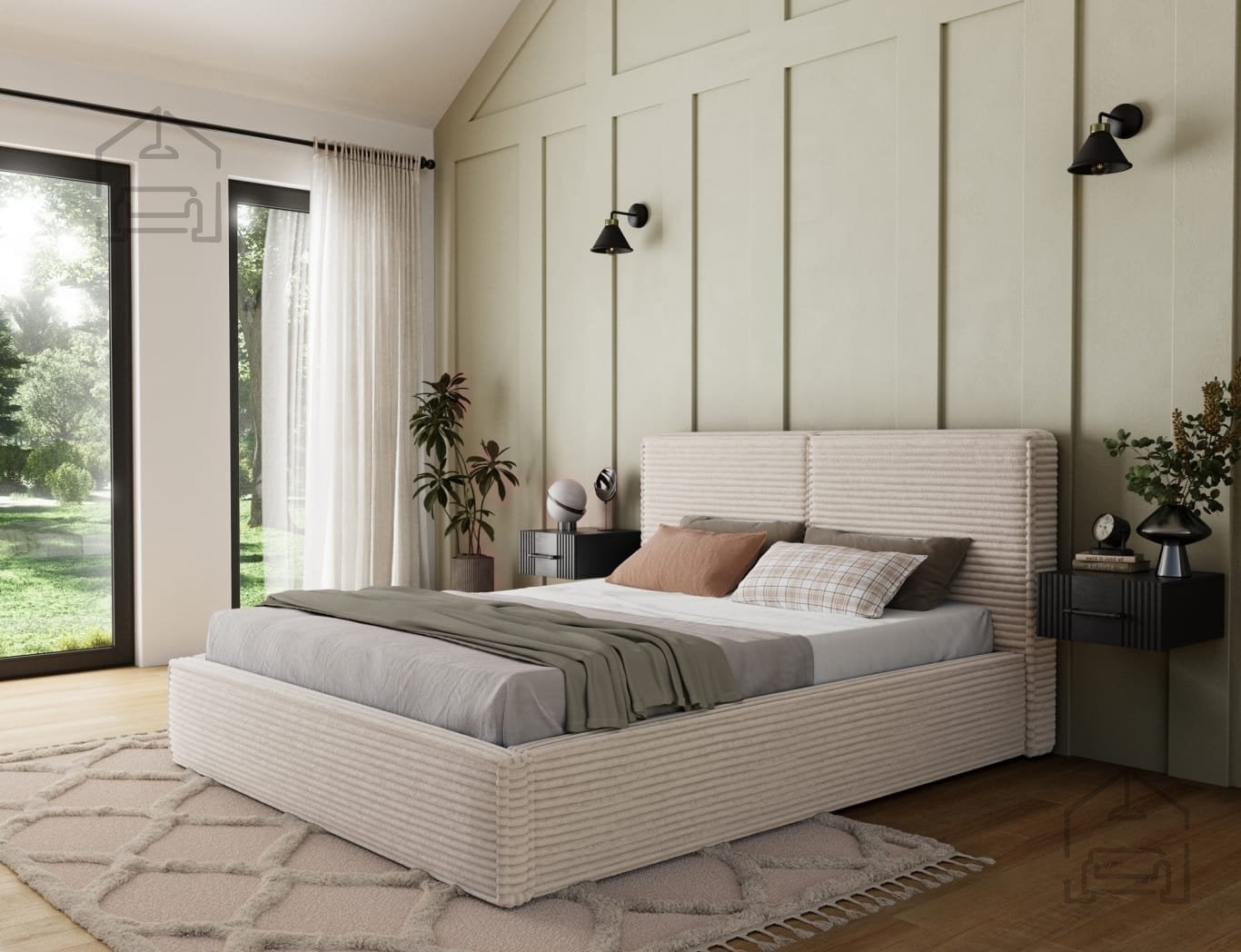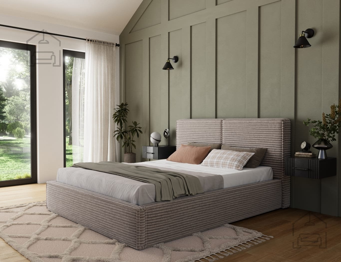 Postelja Pesillo s kovinskim okvirjem je zasnovana v sodobnem slogu, ki se brez težav vključi v različne tipe notranje opreme. Mehke linije, oblazinjeno vzglavje in možnost izbire tkanine omogočajo ustvarjanje prijetne in mirne spalnice. Ne glede na izbrano barvno kombinacijo postelja ohranja eleganten videz in občutek topline, ki spodbuja sproščujoč spanec.