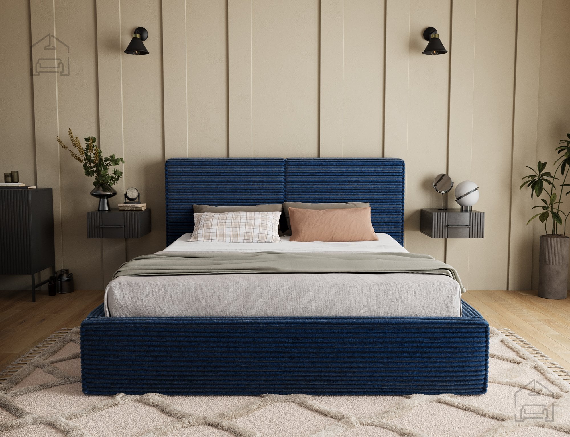 Celotna dolžina postelje znaša 220 cm, višina vzglavja pa 103 cm. Glede na izbrano različico je ležalna površina na voljo v treh dimenzijah: 140x200 cm, 160x200 cm in 180x200 cm. Širina postelje se tako spreminja glede na model in omogoča optimalno prilagoditev prostoru. Kljub sodobni obliki postelja ohranja kompaktnost, zato se lepo prilega tako večjim kot tudi manjšim spalnicam.