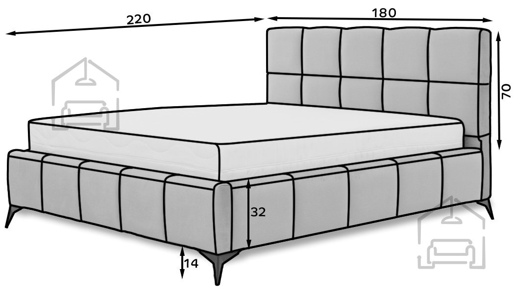 Postelja Mist v dimenziji 160×200 cm zagotavlja udoben prostor za dve osebi, hkrati pa ohranja kompaktne zunanje mere – širina 180 cm, globina 220 cm in višina 113,5 cm – kar omogoča enostavno umestitev v različne prostorske postavitve. Črne jeklene noge višine do 13,5 cm ustvarjajo občutek, da postelja lebdi nad tlemi, kar dodatno vizualno poveča prostor in olajša čiščenje pod njo. Zaradi možnosti izbire med različnimi širinami ležalne površine (140, 160 ali 180 cm) lahko vsak uporabnik izbere različico, ki se najbolje prilega njegovim prostorskim zmožnostim in željam.