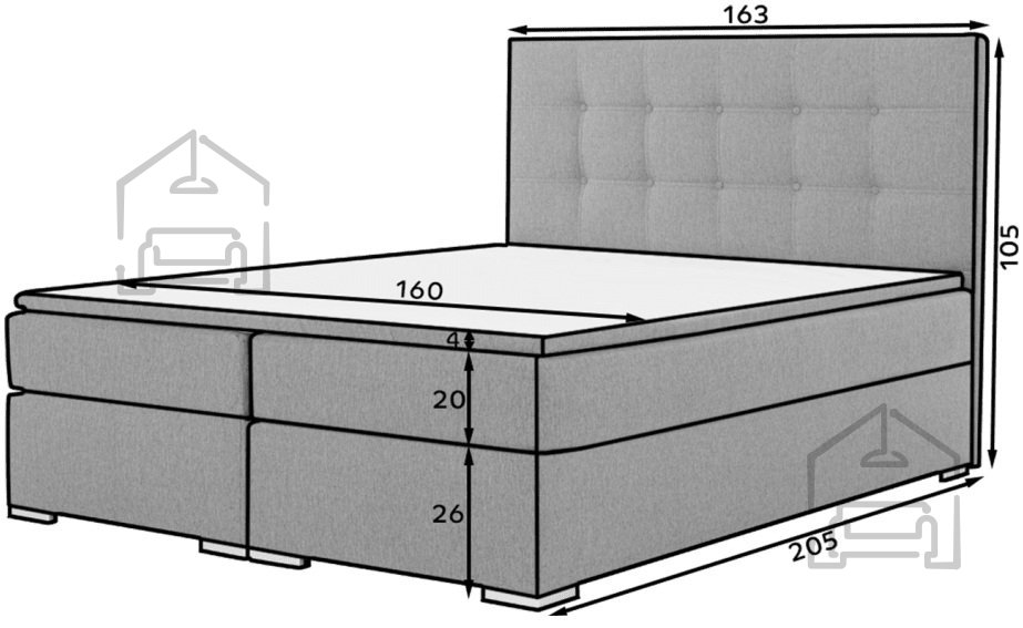 • Eleganten dizajn: visoko vzglavje s prešitimi šivi in sodobne noge dodajo pridih elegance, ki bo obogatil videz vaše spalnice.