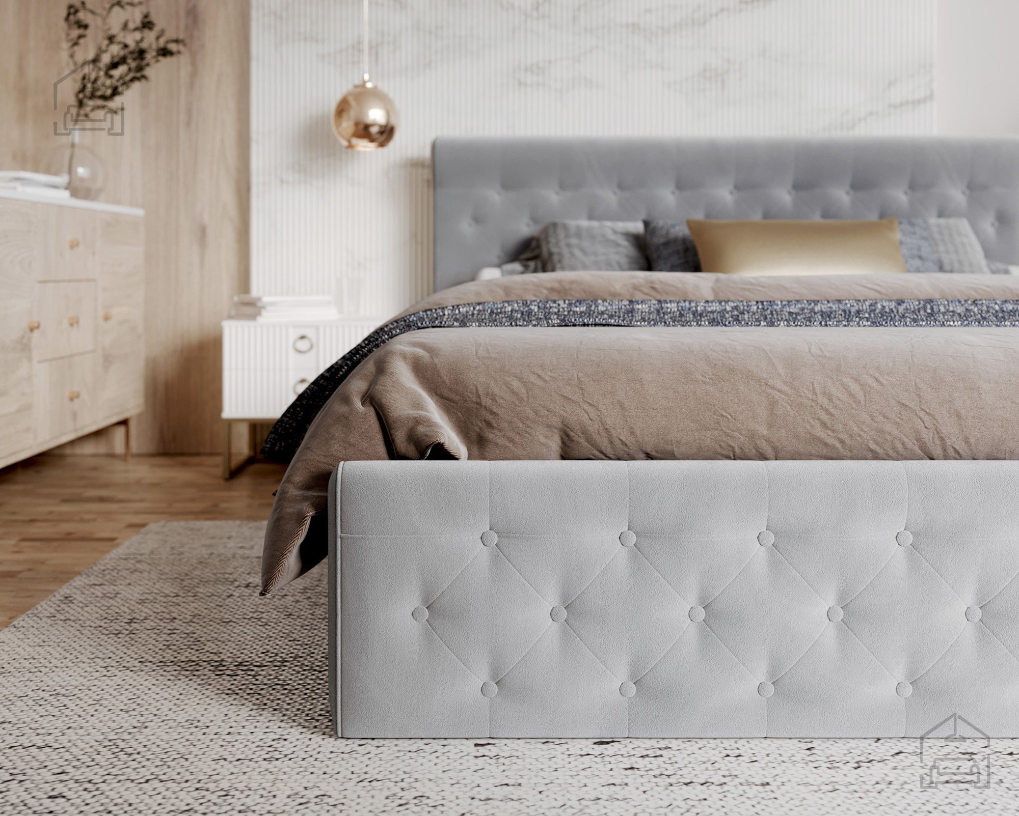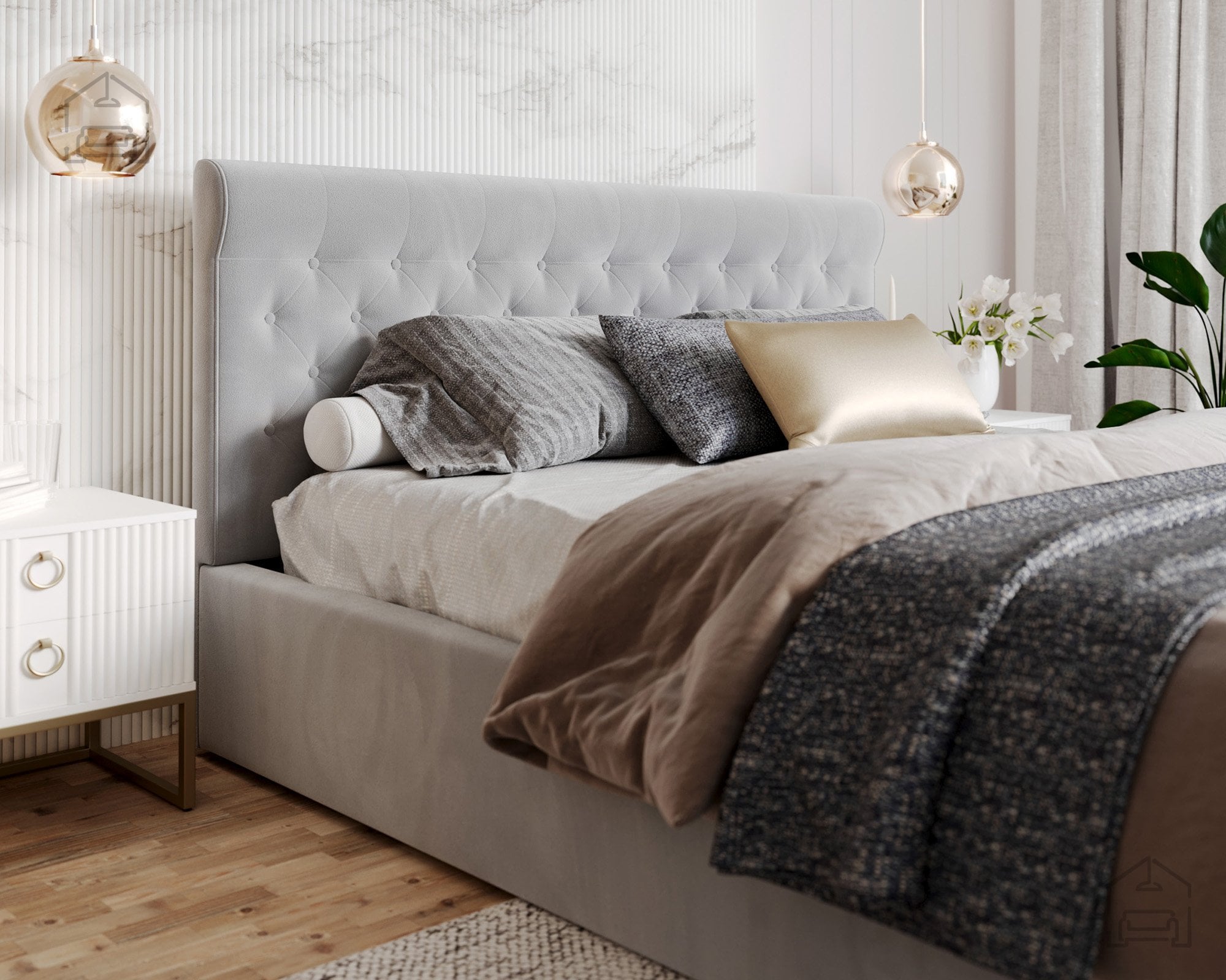 Model Chicago odlikujejo čiste linije in sodobna oblika, ki se odlično podata tako v minimalistične kot klasično urejene prostore. Zaradi široke palete barv in tkanin lahko ustvarite popolno kombinacijo po svojem okusu – od svetlih pastelnih tonov do globokih, elegantnih odtenkov. Vodoravno prešito vzglavje doda občutek razkošja in prostorskega ravnovesja, medtem ko tapeciran okvir poskrbi za mehkejši vizualni vtis.