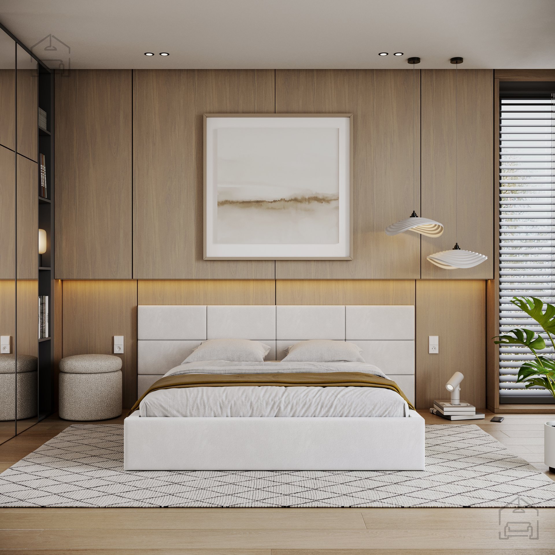Vzglavje postelje je izdelano iz kock, ki morate namestiti na steno spalnice