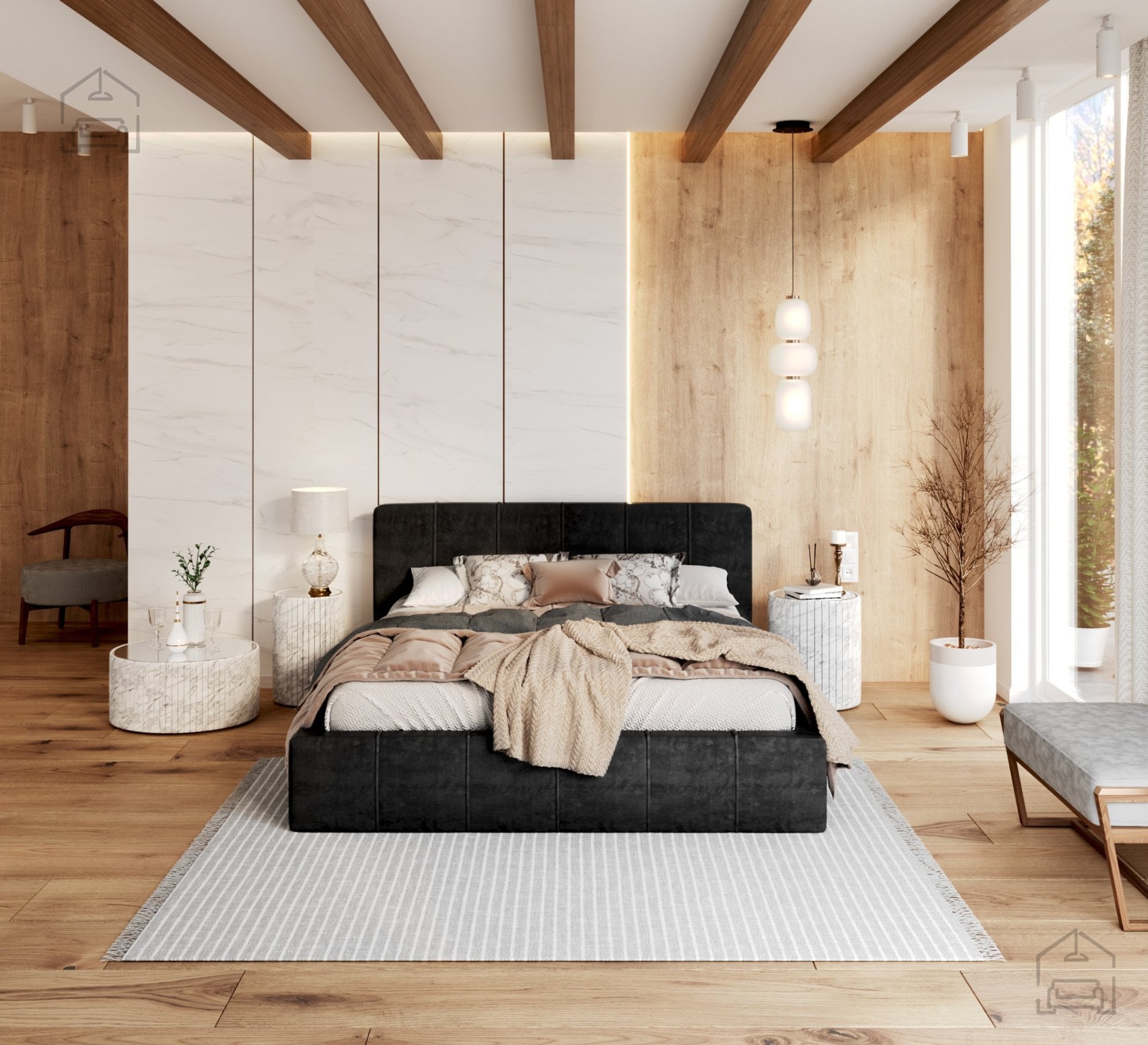 Okvir postelje je tapeciran in zasnovan tako, da se lepo ujema z različnimi slogi notranje opreme – od modernih minimalističnih spalnic do bolj klasičnih ambientov. Zahvaljujoč široki izbiri barvnih odtenkov in tkanin lahko posteljo popolnoma prilagodite svojemu okusu in značaju prostora.